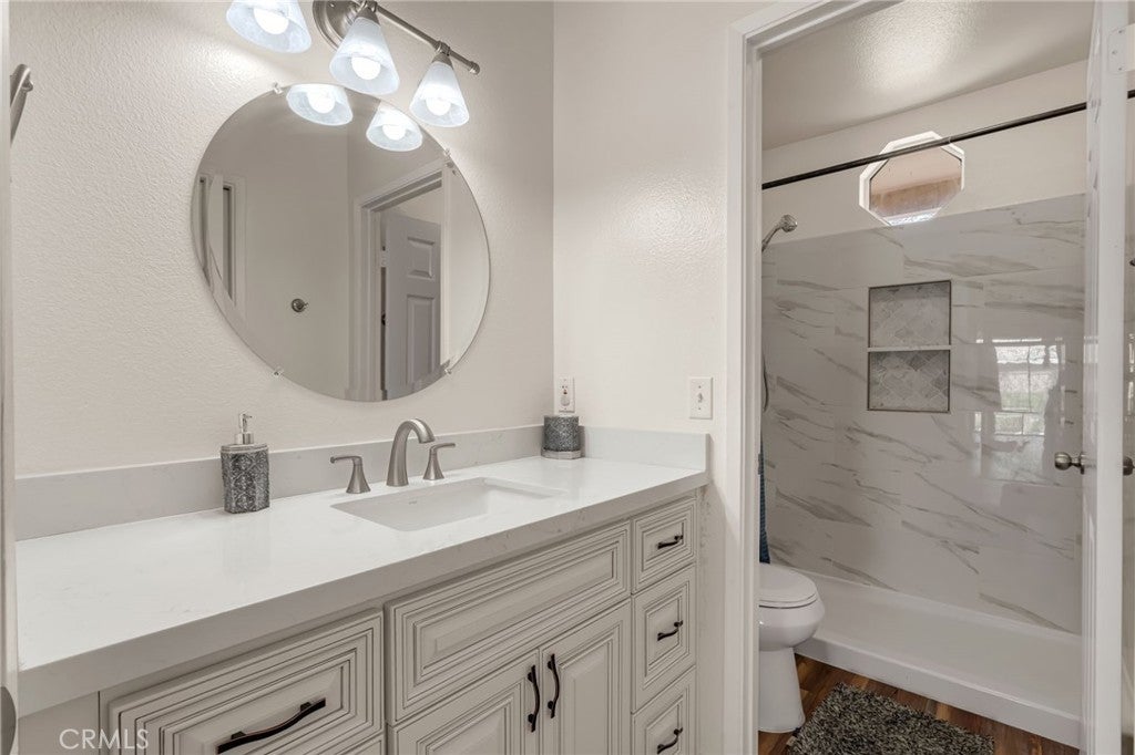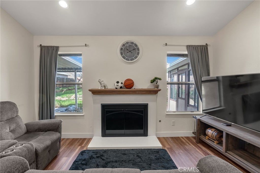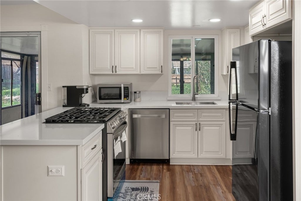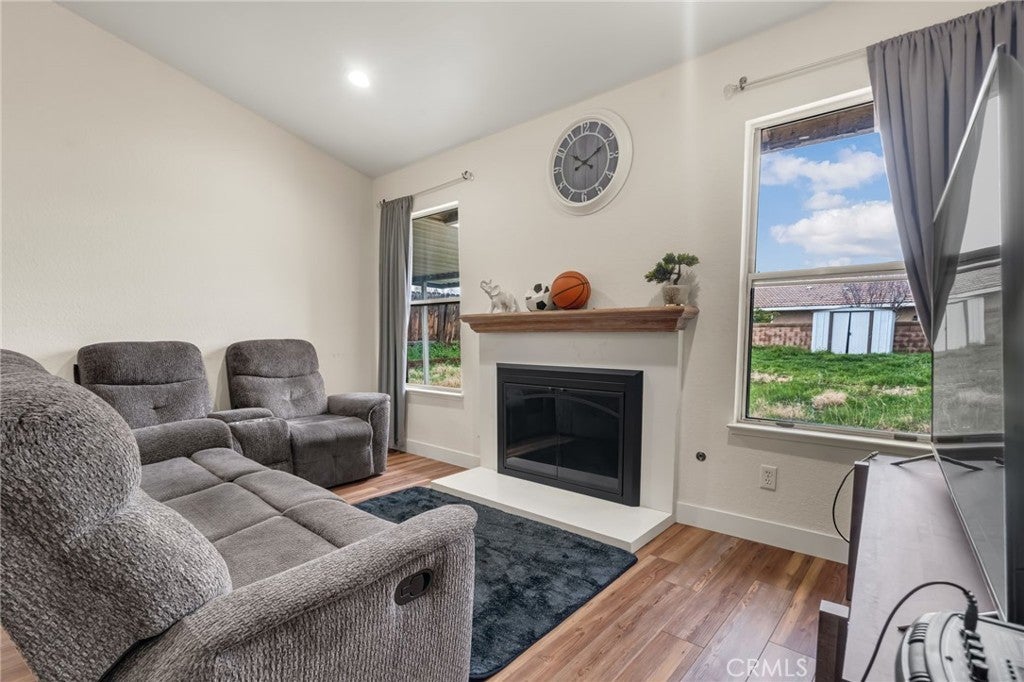 Welcome to this beautifully upgraded single-story home! This beauty offers 4 bedrooms and 2 full bathrooms, thoughtfully updated from floor to ceiling. Step through the new front door into a bright and spacious open floor plan featuring vaulted ceilings and a gorgeous fireplace that anchors the inviting family room. Flooring flows through the primary bedroom and main living areas. The stunning kitchen is sure to impress with quartz countertops, new antique white cabinetry, a single-bowl stainless steel under-mount sink, and a unique faucet that lights up when the water is turned on. High-quality sinks and faucets, along with newer toilets. Enjoy extra living space in the 250 sq. ft. enclosed sunroom, perfect for relaxing or entertaining. Situated on a quiet street, this property offers a commuter-friendly location close to shopping, parks, hiking trails and schools Turn-key and move-in ready — don’t miss this incredible opportunity!