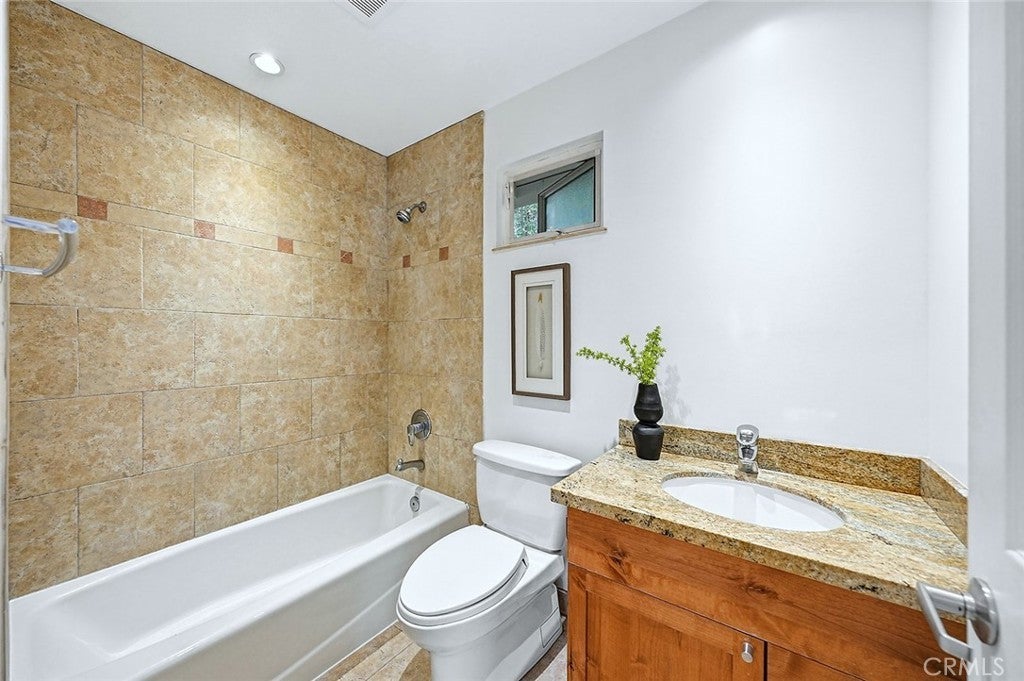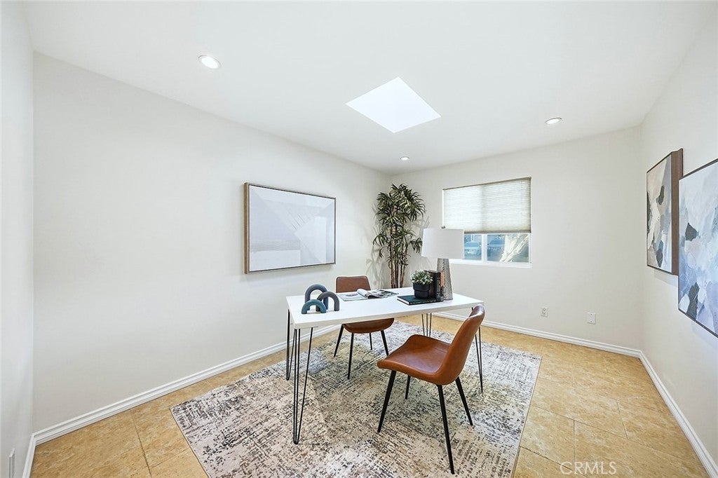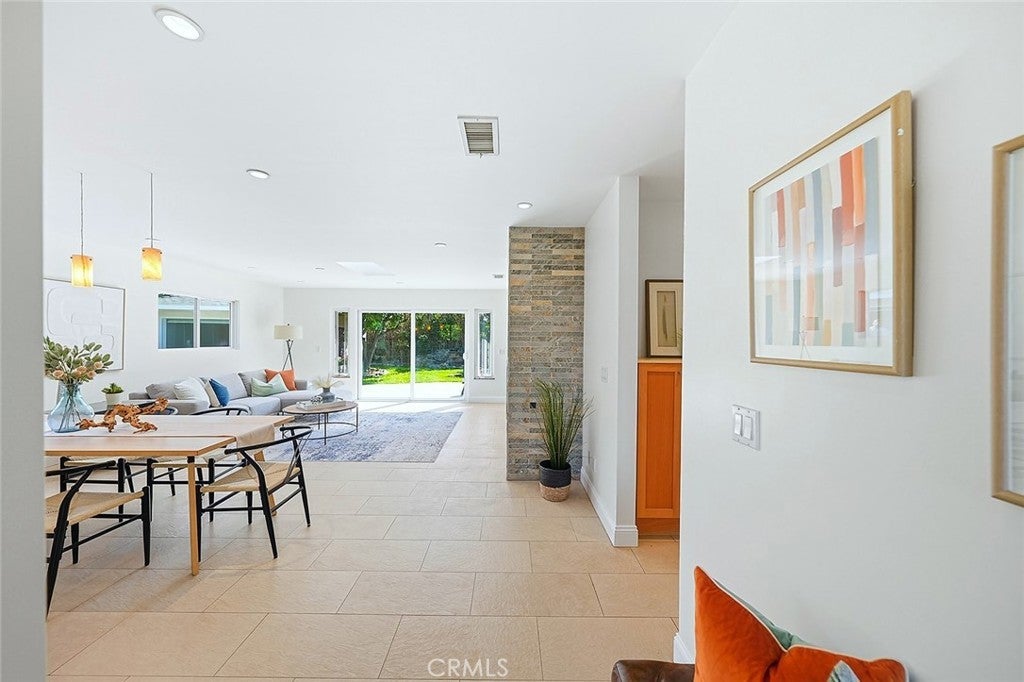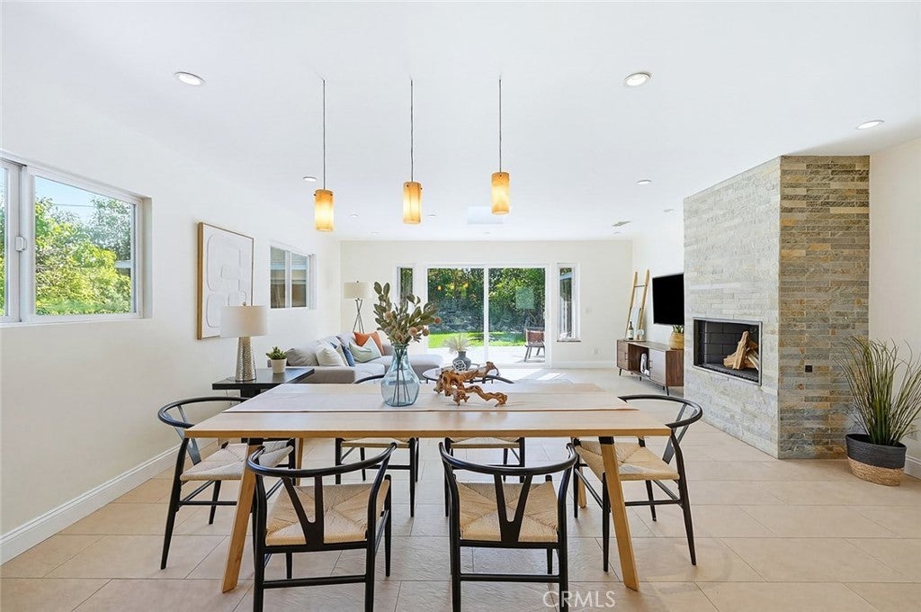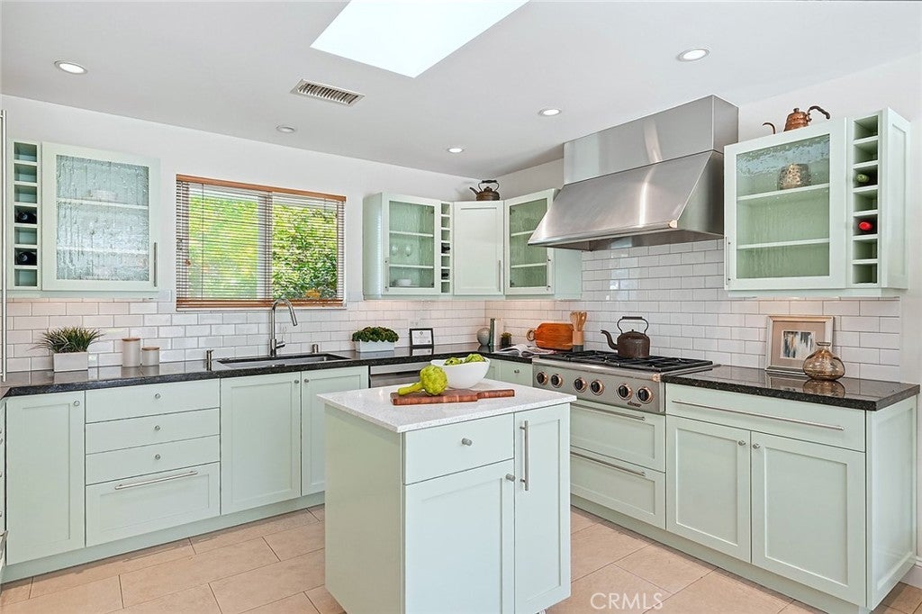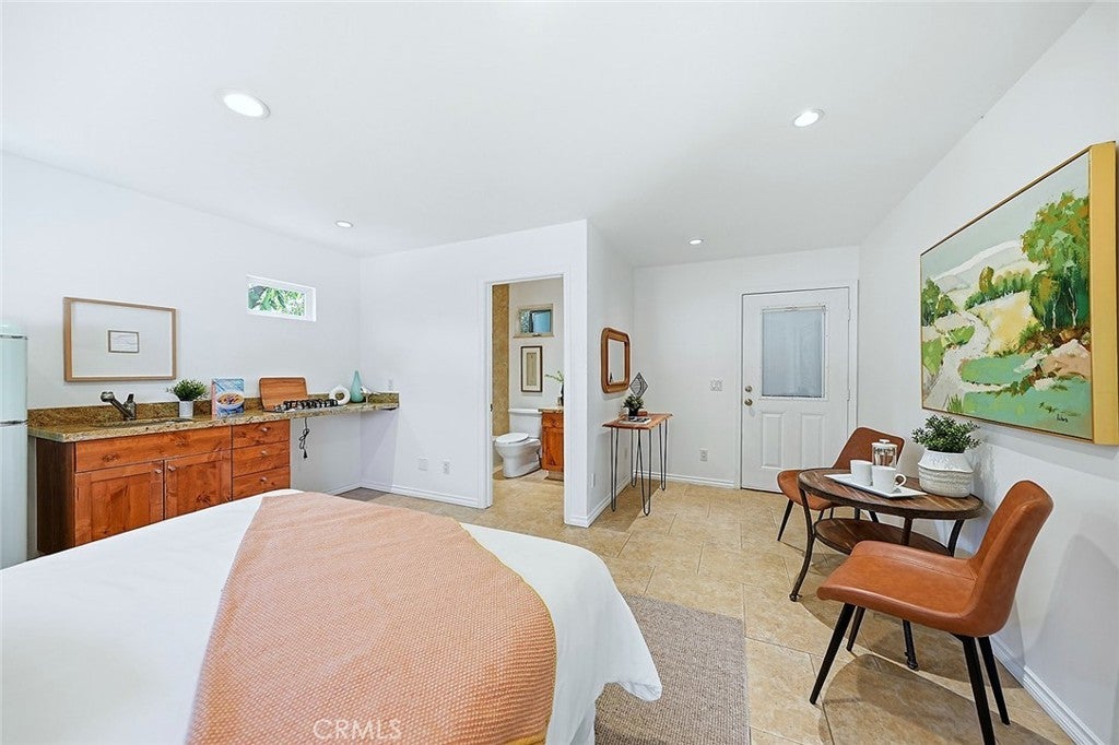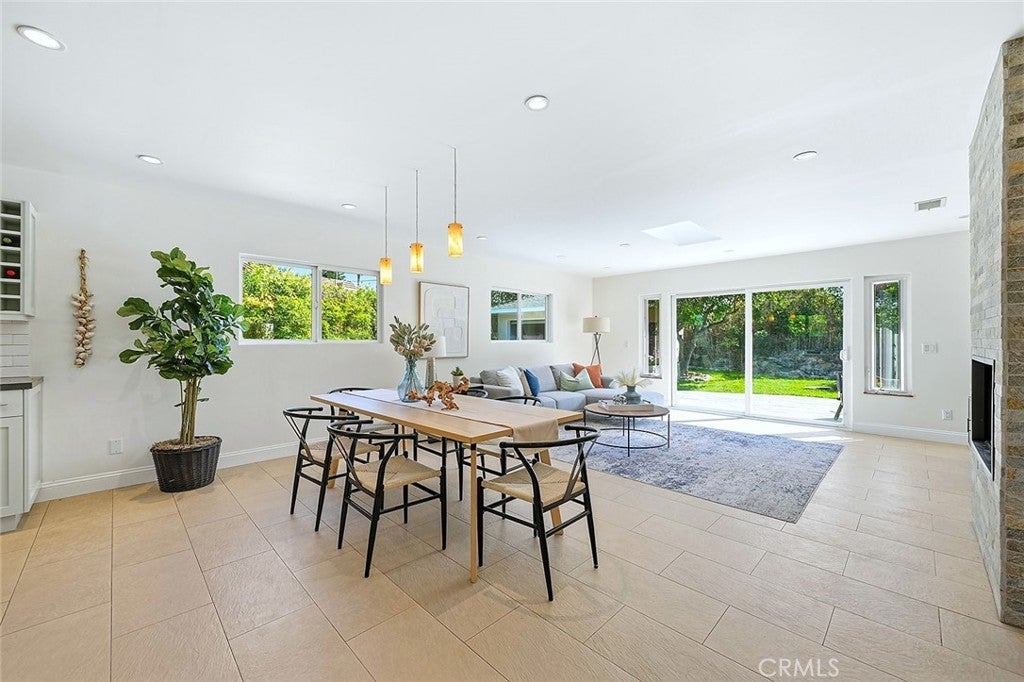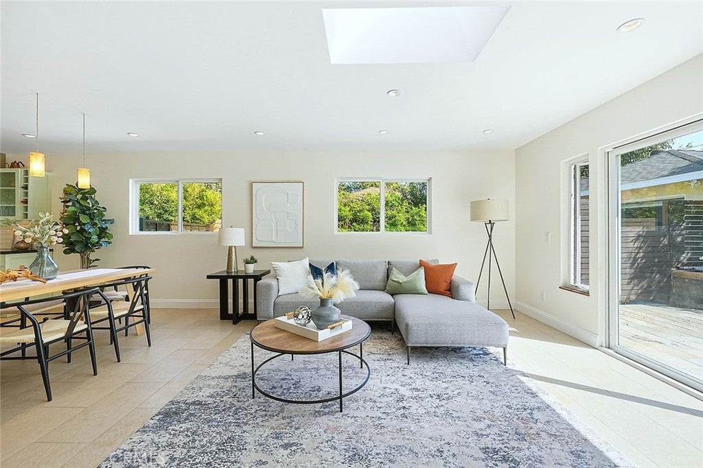 Beautifully renovated and thoughtfully upgraded, this exceptional four bedroom, four full bath home offers quality craftsmanship, timeless finishes, and a versatile layout designed for modern living. From the moment you arrive, the solid Honduras mahogany entry door with custom glass sets the tone for the attention to detail found throughout the home. The inviting living area features a striking stone fireplace, recessed lighting, and elegant porcelain tile flooring imported from Spain. Skylights throughout the home fill the space with natural light, creating a bright and welcoming atmosphere. The custom kitchen is designed for both everyday living and entertaining, showcasing top-of-the-line Dacor appliances, a Sub-Zero refrigerator, beautiful stone countertops, and a moveable center island for added flexibility. Each of the four bathrooms is a full bath and thoughtfully appointed with quality materials and fixtures. The front hall bath and primary bath feature stunning Jerusalem stone, Toto toilets, and premium fixtures imported from Germany. The spacious primary suite offers direct access to the backyard, a large walk-in closet with custom built-ins, and a private bath with dual vanity and relaxing jetted tub. A standout feature of the home is the attached ADU, serving as the fourth bedroom and offering its own private entrance from the side yard. Complete with a kitchenette and private en-suite bath, this flexible space is ideal for guests, extended family, a home office, or potential rental income. Additional highlights include copper plumbing, central heating and air conditioning, a 200-amp electrical panel, Milgard dual-pane windows, and a whole-house water filtration system. The detached garage is finished with drywall and built-in storage, while the extra-long gated driveway provides parking for 4–5 additional vehicles. The beautifully landscaped private backyard offers a peaceful retreat with mature fruit trees and a tranquil setting perfect for relaxing or entertaining. This truly special property combines thoughtful upgrades, flexible living space and quality finishes throughout.
