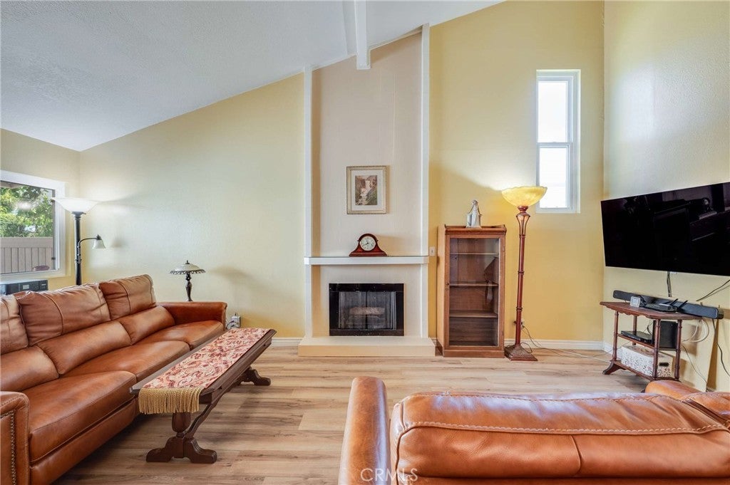 Situated within the highly sought-after Greentree gated community, this tri-level end-unit condo offers 2 bedrooms, 1¾ bathrooms, and the convenience of indoor laundry. Surrounded by mature trees, tranquil walkways, and beautifully maintained greenbelts, the setting provides a peaceful and inviting atmosphere in a prime location. The main level features a bright and open living space, including the living room, dining area, kitchen, and a convenient coat closet. The spacious living room showcases vaulted ceilings, laminate flooring, and a cozy gas fireplace — perfect for relaxing or entertaining. The kitchen is both stylish and low-maintenance, complete with granite countertops, wood cabinetry, a flush-mounted stainless-steel sink, recessed lighting, and matching laminate flooring. Upstairs, you’ll find two generously sized bedrooms along with both bathrooms. The primary suite offers an expansive layout, dual closets, and a private en-suite bath, creating a comfortable and private retreat. Enjoy outdoor living on your private gated patio, designed with pavers and easy-care artificial turf — ideal for relaxing or hosting. The lower level provides direct access to a two-car garage with laundry hookups and ample storage, adding everyday convenience. Additional highlights include dual-pane windows, ceiling fans, a newly installed central HVAC system and even a new roof being installed now!! Ideally located just minutes from Cal State Fullerton and Marshall B. Ketchum University, as well as top-rated schools, shopping, dining, and entertainment, this home is an excellent opportunity for both homeowners and investors. Schedule your private showing soon — this one won’t last!