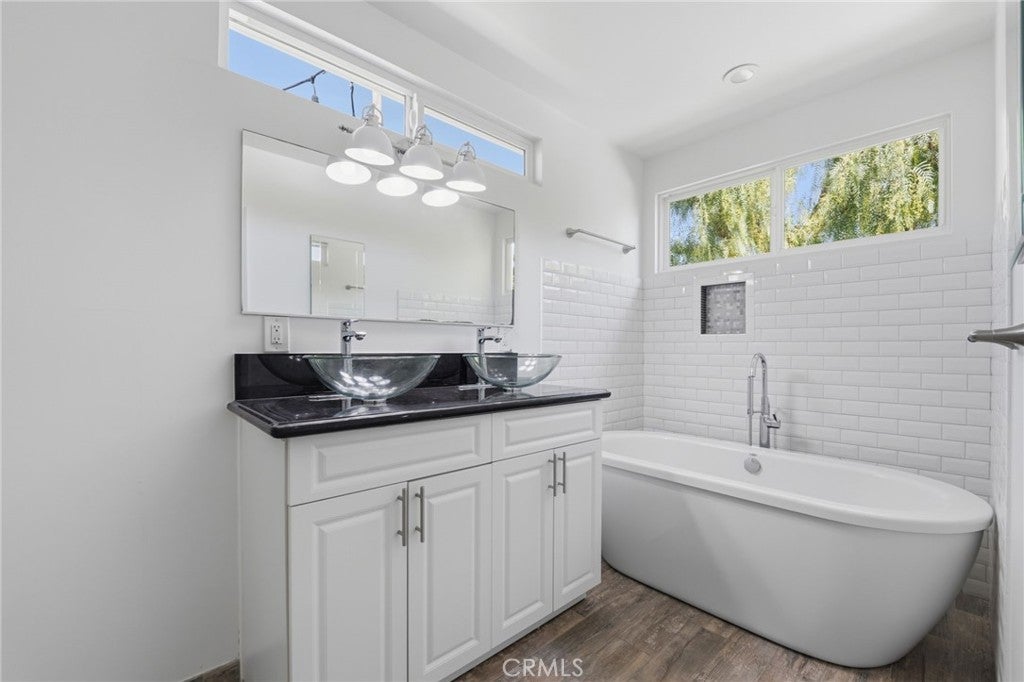 Welcome to this beautifully updated 3-bedroom, 2 full bath home in the highly sought-after "South of Conant" neighborhood of Long Beach. Situated mid-block on a picturesque tree-lined street, this charming home is designed for comfortable living and easy entertaining. The inviting living and dining areas flow seamlessly into the updated kitchen, featuring modern cabinetry, countertops, a stylish tile backsplash, stainless steel appliances, and a peninsula with bar seating. The cozy living room is complete with a brick fireplace. Both full bathrooms have been tastefully remodeled with dual-sink vanities, custom tile work, and contemporary finishes. Additional upgrades include recently refinished wood floors, dual-pane windows, fresh interior and exterior paint, updated plumbing, electrical, lighting and HVAC system. Step outside to a private, enclosed backyard with a manicured yard and citrus trees. The long gated driveway offers ample off-street parking, along with a detached two-car garage. This prime located lovely home is conveniently located near parks, shopping, dining, airport and within close proximity to top-rated schools and major freeways.