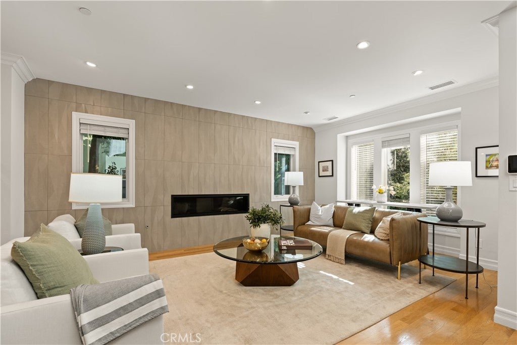 A private oasis in the heart of Melrose Arts District just moments from West Hollywood. Designed for seamless indoor-outdoor living, a full wall of foldable glass doors opens completely, creating a stunning flow for effortless entertaining. The private pool, spa, and dry sauna are surrounded by lush privacy hedging, offering rare tranquility and total seclusion. Modern and beautifully appointed, the home features smart technology and sunlit balcony spaces that elevate everyday living. Moments from Melrose, yet worlds away in feel. This is the one you have to experience. Buyer to verify all information.