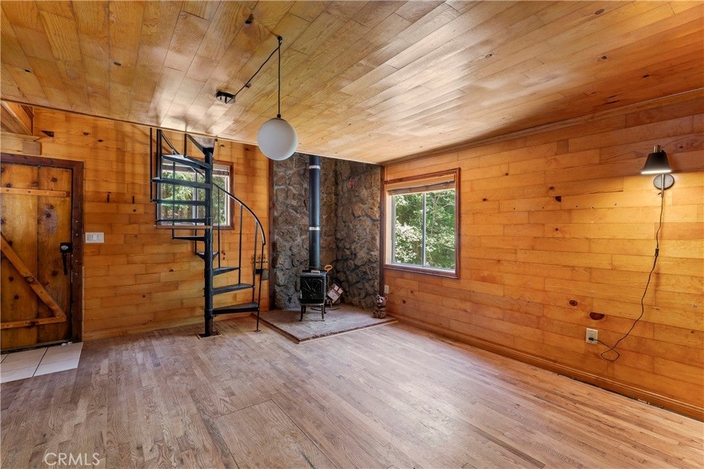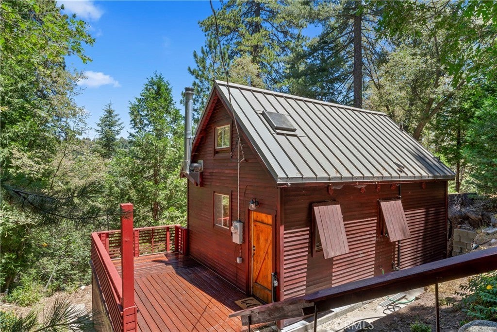 Price Improvement! Vintage Mountain Charmer on a large 15,000 sq foot lot with amble parking. Cabin Built in 1952 with Metal Roof and Skylight. Circular staircase to main bedroom, open concept. Wood Burning stove, wood flooring. Located in Twin Peaks community of Strawberry Lodge. Centrally located between Crestline and Lake Arrowhead. Mature Trees offer a sense of seclusion and privacy. Nice size deck for entertaining and or just a quiet moment sipping coffee and taking in the beauty of nature. Entrance off the front deck onto main living, kitchen open concept. There is an additional room of the main living area that has been used as a sleeping quarters, up the spiral staircase is additional loft/bedroom with built in nook and storage. Cabin and decks have been recently stained. Perfect cabin for those weekend getaways.