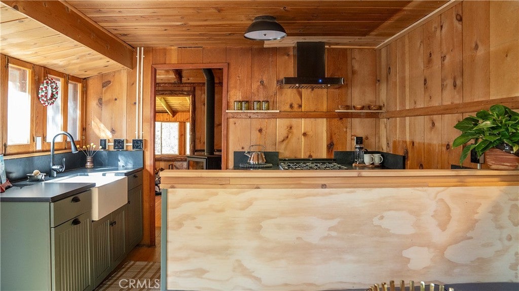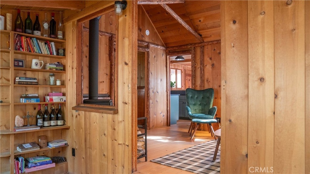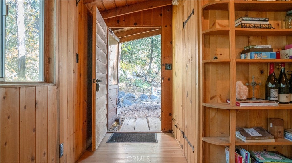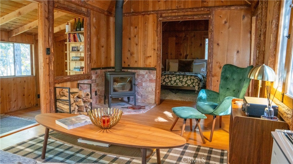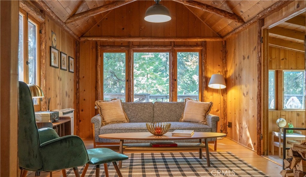 GREAT OPPORTUNITY TO OWN STRAWBERRY CREEK PROPERTY! (This fixer - Lots of updates already done, but room for a continued project for new owners - This is an almost 100 year old cabin ) 1930's Idyllwild original single pane wood cabin with modern rustic, farmhouse and designer finishes throughout and fully furnished with modern luxury brands. Including new reconfigured and remodeled kitchen, remodeled bathroom, new living room with custom masonry and wood burning stove, all new appliances throughout, updated electrical, new lighting fixtures throughout, ceiling fan, refinished original hardwood floors throughout, vintage pine paneling and a dramatic open-truss ceiling design, wrap around deck with creek views and secluded location at the back of the property. New septic tank.