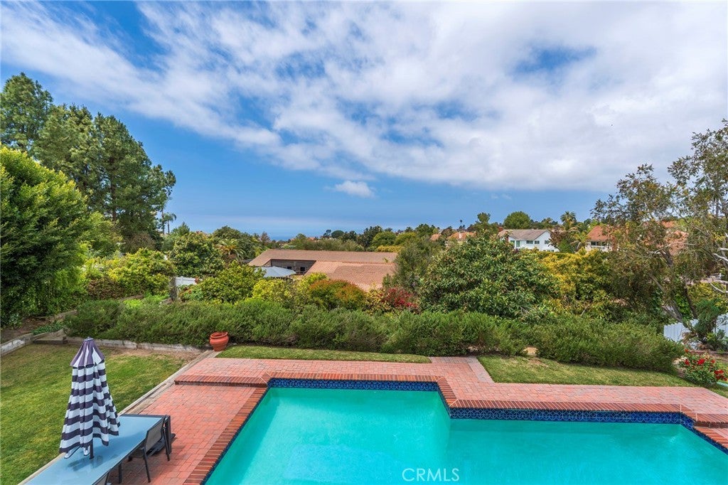 Located within the prestigious guard-gated community of The Ranch, this expansive property offers space, privacy, and spectacular ocean views. Step through the grand double doors into a soaring two-story foyer, highlighted by a dramatic staircase that sets the tone for this elegant five-bedroom, three-bathroom residence. Situated on an impressive 18,789-square-foot lot, the home combines traditional charm with comfortable living. The formal living room features a fireplace and flows seamlessly into the adjacent dining room—ideal for entertaining. The spacious kitchen is equipped with a Sub-Zero refrigerator and opens to a warm and inviting family room with a second fireplace, creating the perfect gathering space. An enclosed covered patio extends the living area and leads to a large backyard oasis complete with two grassy play areas, a sparkling pool and spa, and plenty of space to unwind or entertain. On the main level, you’ll also find a guest bedroom and home office, a full bath, and a laundry room with direct access to the three-car garage. Upstairs, the generous master suite offers a true retreat—featuring a cozy fireplace, dual walk-in closets, a private sunroom, and an outdoor deck with ocean views. Three additional bedrooms complete the upper level. As a bonus, steps down from the backyard reveal your own private orchard, filled with a variety of fruit trees—bringing a touch of nature and tranquility to this already extraordinary home.
