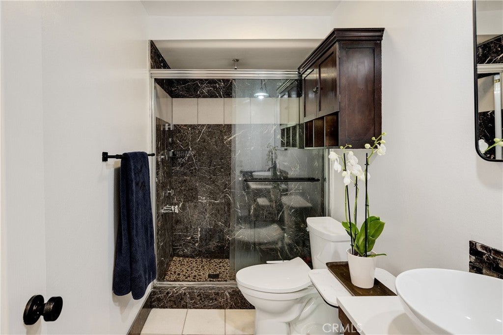Welcome to the exceptional opportunity to own a penthouse condo in the heart of prestigious Rolling Hills Estates, one of the most serene and sought-after communities on the Palos Verdes Peninsula. This top-floor residence is set within the beautifully landscaped, resort-style community of "The Estates," just moments from award-winning schools, scenic coastal trails, equestrian centers, and the breathtaking South Coast Botanic Garden, an 87-acre sanctuary where nature and tranquility flourish. Inside, you are welcomed by warm laminate flooring, recessed lighting with dimmers, and an open layout that exudes both comfort and timeless elegance. The living areas extend effortlessly to a spacious private balcony, perfect for al fresco living. Enjoy serene treetop views and, on clear days, catch glimpses of the shimmering downtown Los Angeles skyline and San Gabriel Mountains. The kitchen features functionality and design, including a glass-top stove, a sleek stainless steel Bosch dishwasher, and generous cabinetry for easy, stylish living. Whether you are hosting guests or enjoying a quiet morning, the space is equally inviting and refined. The bedroom is a relaxing retreat with direct access to the balcony, perfect for enjoying fresh morning air or golden hour light. It also features a large walk-in closet with built-in shelving, offering plenty of room to stay organized with ease. The bathroom maintains a polished feel with marble floors and a marble walk-in shower, offering a clean and sophisticated atmosphere. Mirrored hallway closet doors enhance both light and storage, while built-in Fios wiring ensures fast internet and smooth streaming for work or leisure. As a penthouse condo, the home offers enhanced privacy and tranquility, with no one living above you and soft breezes flowing through this elevated sanctuary. Residents enjoy access to vacation-style amenities including three sparkling pools, tennis courts, a fitness center, spa, and clubhouse, all tucked within mature trees and winding pathways. Located within the nationally acclaimed Palos Verdes Peninsula Unified School District and close to Peninsula Center shopping, golf courses, and local hiking and horse trails, this home offers an unmatched lifestyle and value. This is not just a place to live, it is a place to thrive. Where nature, prestige, and comfort come together, your next chapter begins here. Welcome home.