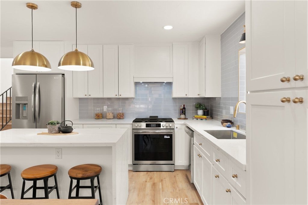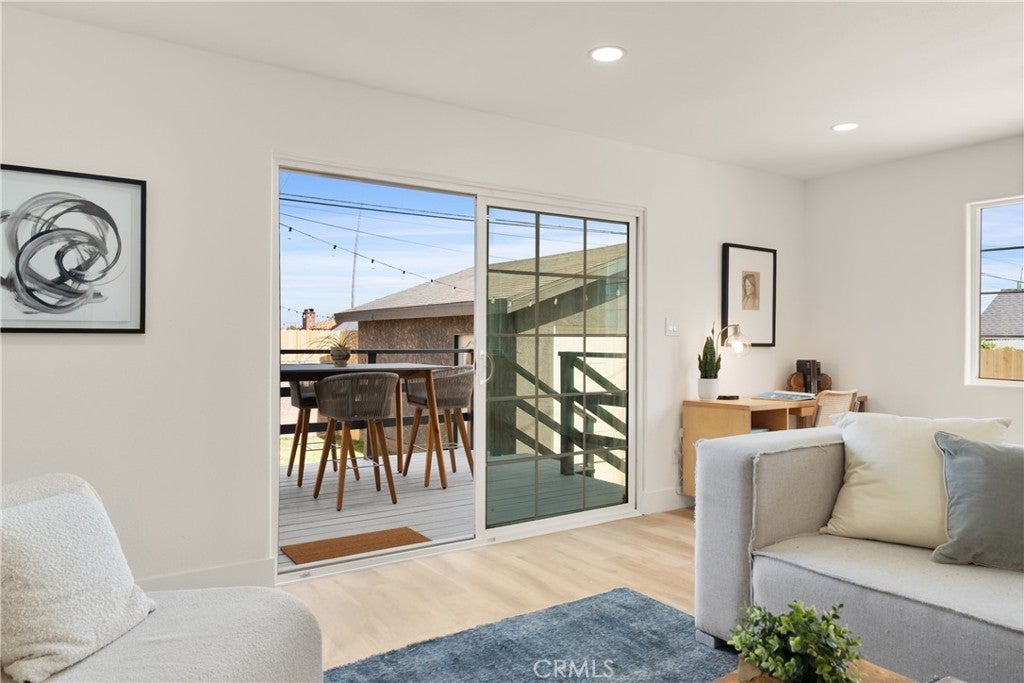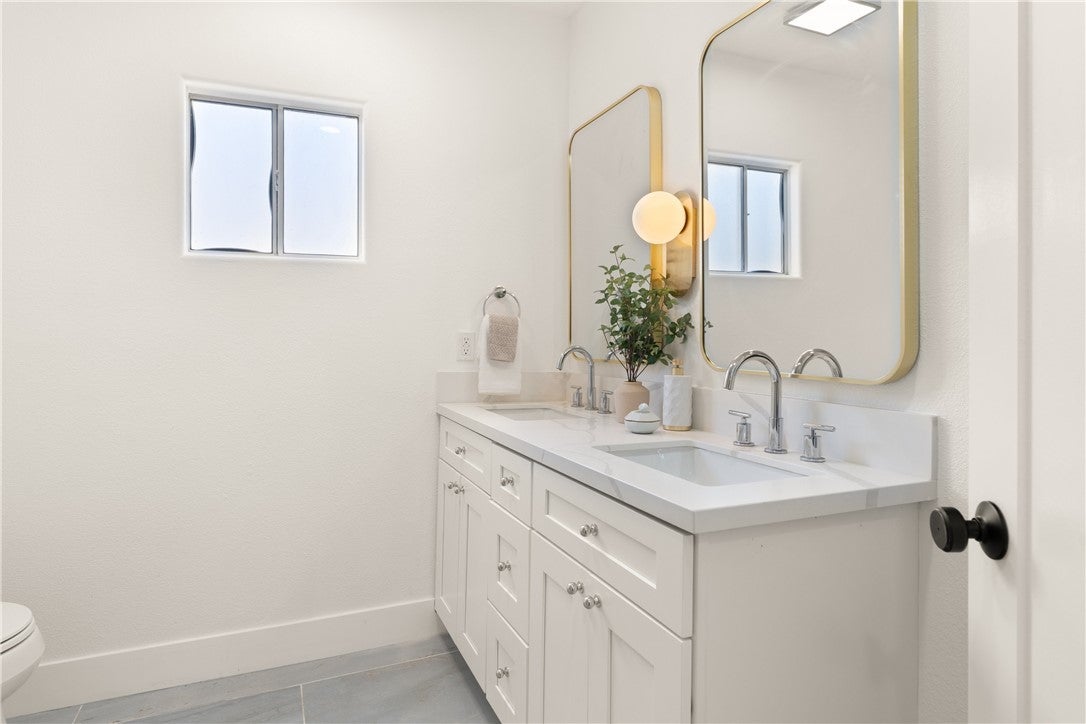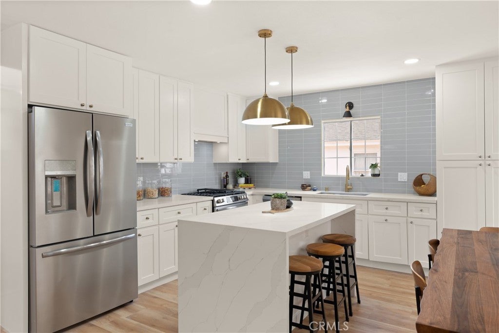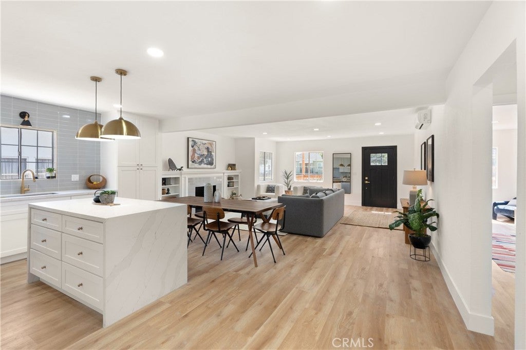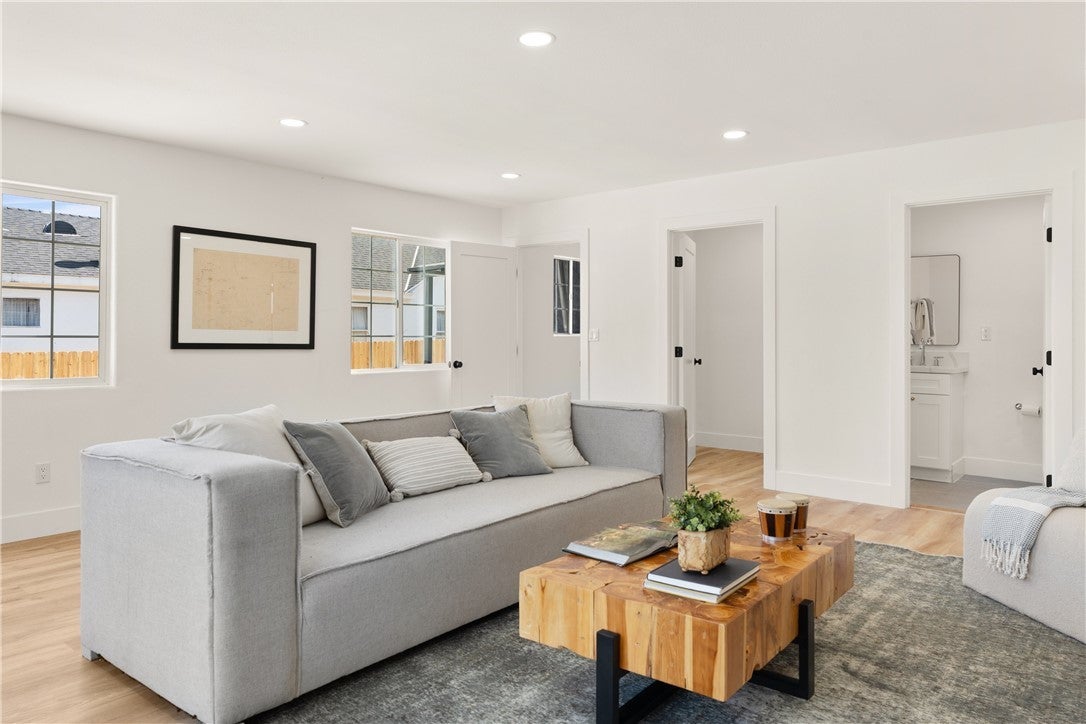 Welcome to your tastefully renovated Los Angeles sanctuary—an expansive 4-bedroom, 3-bathroom home featuring modern upgrades, a spacious layout, and a serene backyard with a custom deck perfect for entertaining. Step into a light-filled living room with new flooring, large windows, and a beautifully tiled fireplace that flows seamlessly into the open-concept kitchen. The kitchen stuns with quartz countertops, new stainless steel appliances, custom backsplash, and abundant cabinetry. This home offers two levels of flexible living space. Downstairs, you'll find three bedrooms, including a large primary suite with a walk-in closet, en-suite bathroom, and direct access to the back deck and yard. The secondary bedrooms share a beautifully upgraded bathroom featuring dual sinks, modern tiling, and a custom-built vanity. Upstairs, a second oversized primary suite provides a peaceful retreat, complete with a luxurious bathroom and generously sized walk-in closet. Outside, a detached garage and long driveway offer ample parking and potential for future ADU conversion. Curb appeal shines with a new front deck, fresh exterior paint, and lush landscaping. Additional upgrades include mini-split HVAC systems for year-round comfort, updated lighting throughout—featuring a custom pendant chandelier above the staircase, and indoor laundry hookups. Enjoy close proximity to Culver City, Baldwin Hills, Leimert Park, LAX and major freeways—ensuring convenience for both commuting and leisure. Nearby hotspots include Jon & Vinny’s, Hilltop Coffee, Kenneth Hahn Park, and more. This is the perfect time to invest, with globally renowned events just around the corner, including the 2026 NBA All-Star Game at the Intuit Dome, the 2027 Super Bowl at SoFi Stadium, and the opening and closing ceremonies of the 2028 Olympics in Los Angeles! Also this home qualifies for a $20,000 grant and special financing through City National Bank.