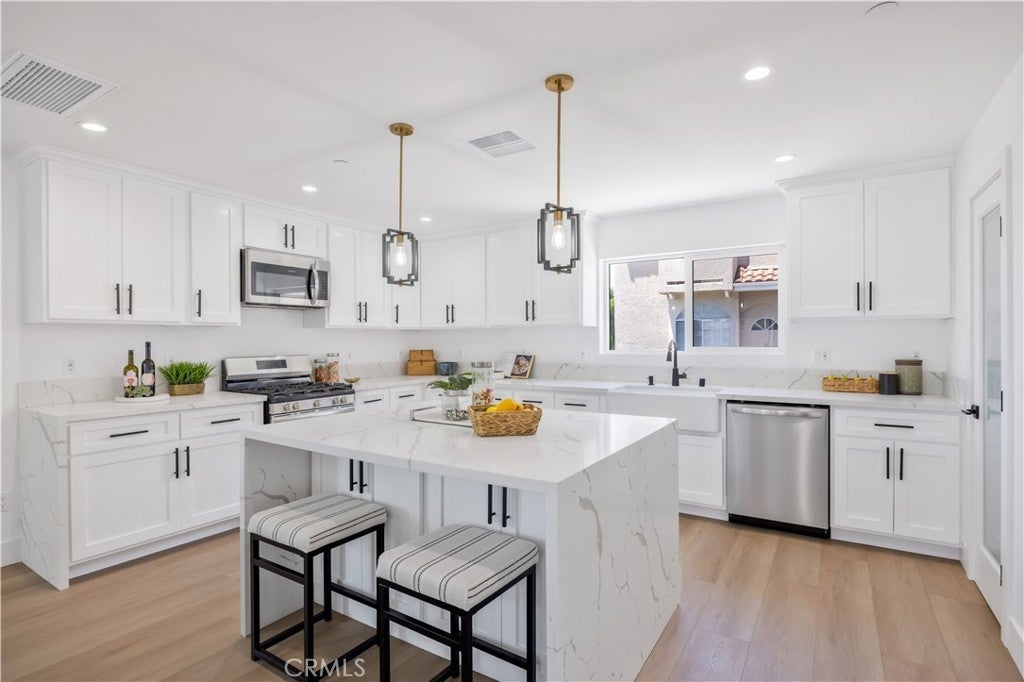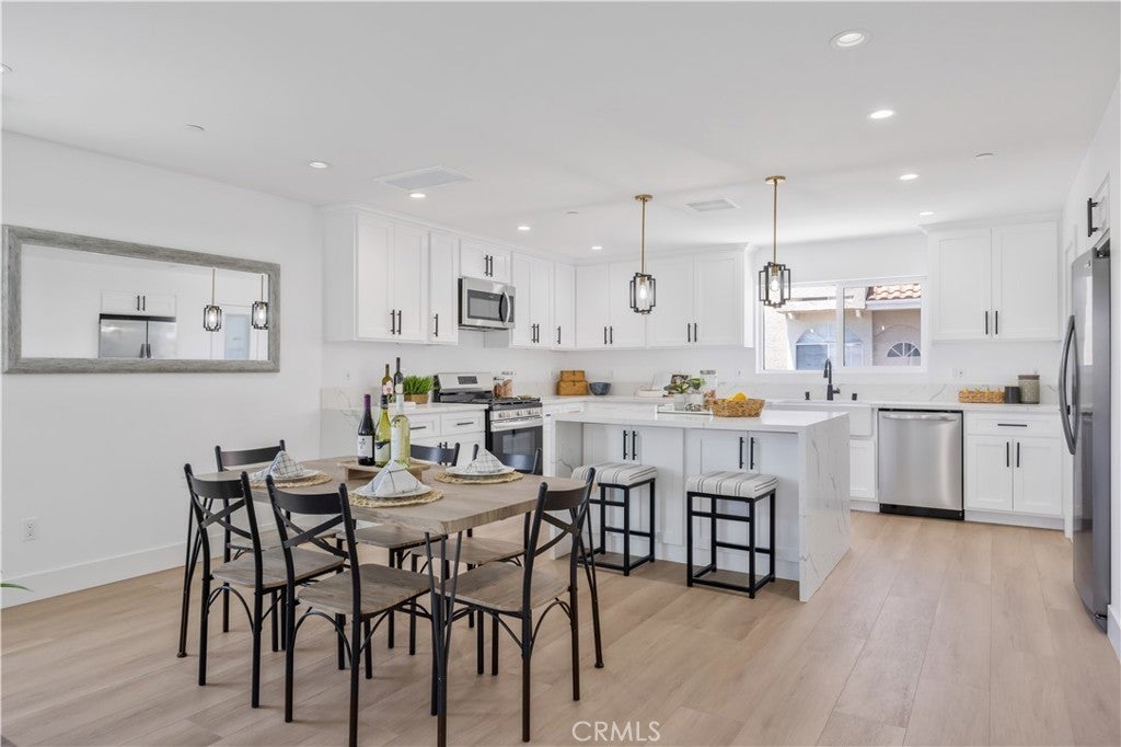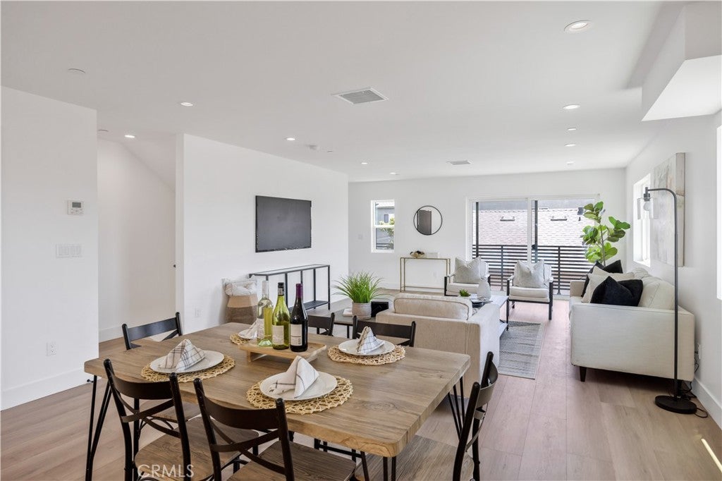 Welcome to this stunning new construction tri-level townhome, offering the perfect blend of modern design, functionality, and comfort. Spanning 2,044 square feet, this spacious 4-bedroom, 3.5-bathroom home features an open floor plan ideal for entertaining, with upgraded lighting fixtures throughout and a seamless indoor-outdoor flow. The chef-inspired kitchen boasts a large quartz island, stainless steel appliance package, farmhouse sink, and walk-in pantry—perfect for hosting gatherings. The living room opens to a private balcony, while the ground-level patio offers additional outdoor space. The luxurious primary suite includes a spa-like bathroom with a walk-in shower, soaking tub, dual vanities with quartz counters, and a generous walk-in closet. Additional highlights include a convenient third-floor laundry room, a 2-car attached garage, central AC and heating, and thoughtful finishes throughout. Located near shopping, dining, and major freeways, this home is built for both lifestyle and convenience.