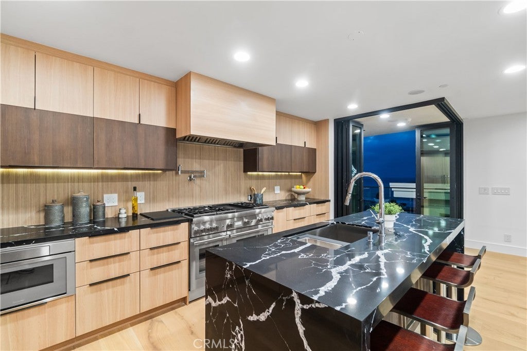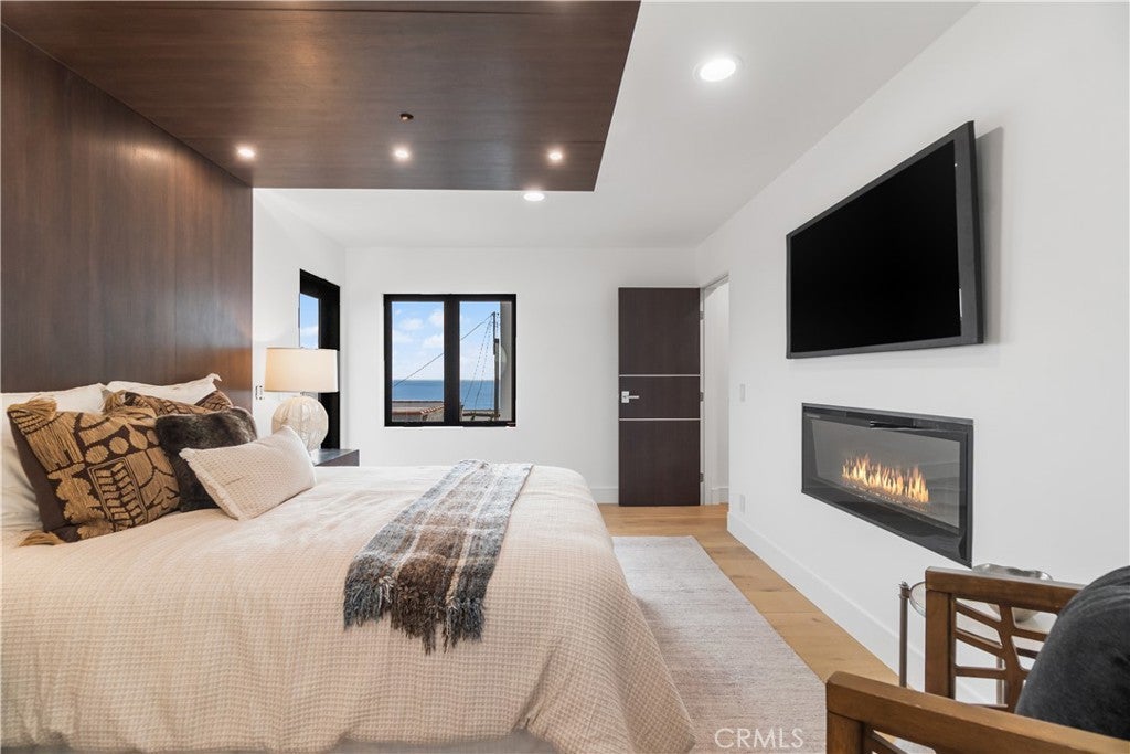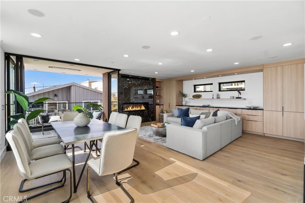 Designed to evoke the sophistication of high-end hospitality, this stunning new construction residence in the coveted Manhattan Beach El Porto offers a peaceful yet invigorating living experience. Every corner of the home has been thoughtfully curated to welcome, soothe, and inspire—combining intricate contemporary design with warm, livable comfort. From sweeping ocean views to breezy walks along the Strand, and from world-class surfing to the charm of local restaurants, this location defines coastal living at its finest. Spanning multiple levels, the home features 4 spacious bedrooms, 4.5 luxurious bathrooms, and over 210 square feet of outdoor balcony space—perfect for soaking in California’s golden sunsets and refreshing sea air. Clean architectural lines and modern finishes are balanced by rich textures and calming tones that instantly make you feel at home. On the first level, a flexible space awaits—ideal as a guest suite, home office, or gym—alongside a cozy family room with a built-in bar and direct access to a private backyard, creating an inviting indoor-outdoor retreat. The top-level main living area is an entertainer’s dream, offering an open-concept design where the gourmet kitchen, dining area, and living room flow seamlessly. Enjoy premium appliances, designer cabinetry, and a sunlit, south-facing balcony with built-in BBQ. Just steps away, the north-facing balcony off the living room invites you to relax by the fireplace with panoramic ocean views and a cooling sea breeze. Comfort and convenience are elevated with features like zoned air conditioning, built-in audio systems, and balcony ceiling heaters for year-round enjoyment. Situated just moments from El Porto’s vibrant dining scene, surf-friendly beaches, and top-rated Manhattan Beach schools, this home offers not just a luxurious living space, but a lifestyle—one of ease, beauty, and inspiration. This isn’t just a home—it’s your personal coastal retreat.