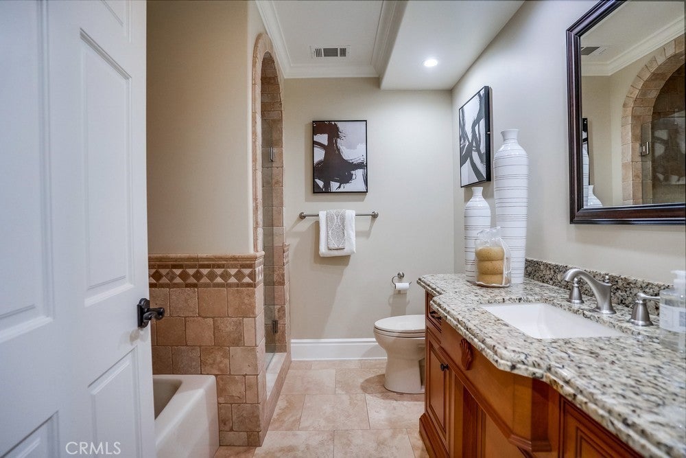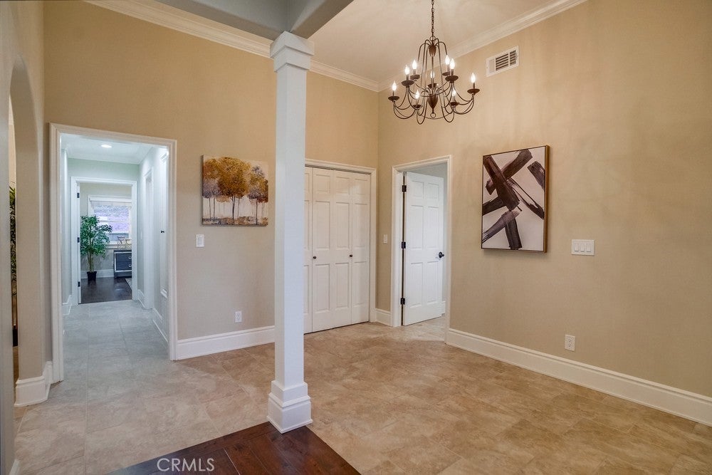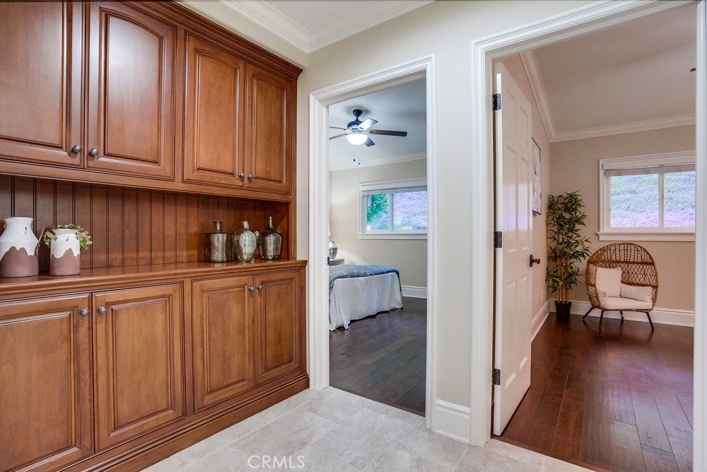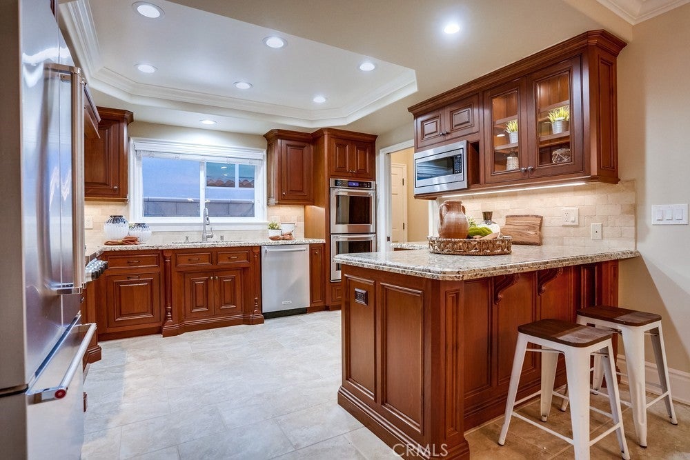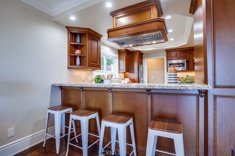 • Interior FeaturesBreakfast Bar, Built-in Features, High Ceilings, Recessed Lighting, Entrance Foyer, Primary Suite, Crown Molding, Dry Bar, Granite Counters, Living Room Deck Attached, Pantry, Tray Ceiling(s), Walk-In Pantry