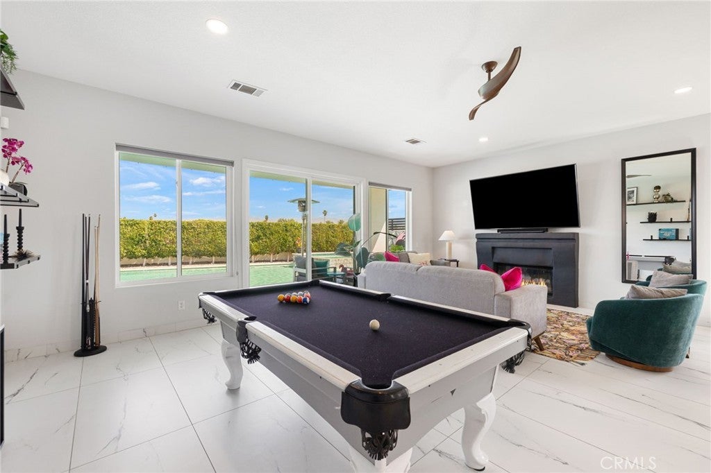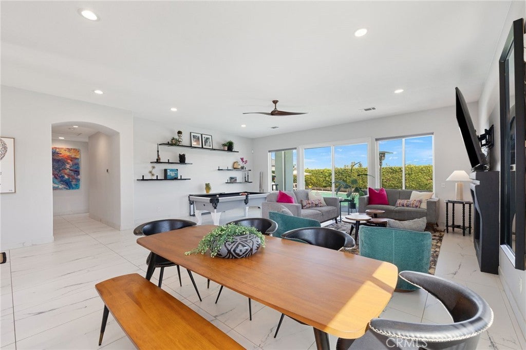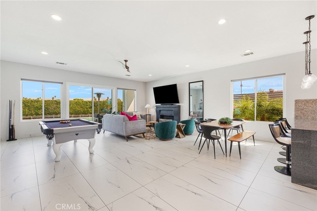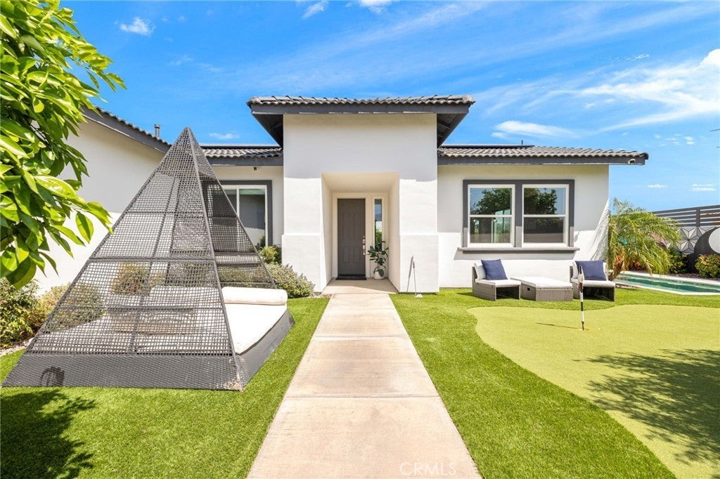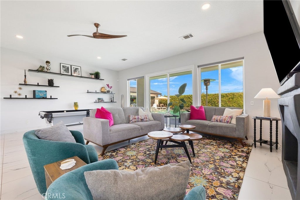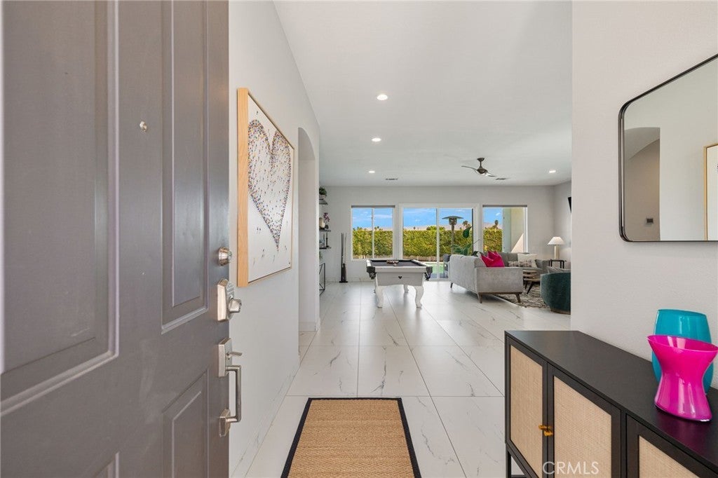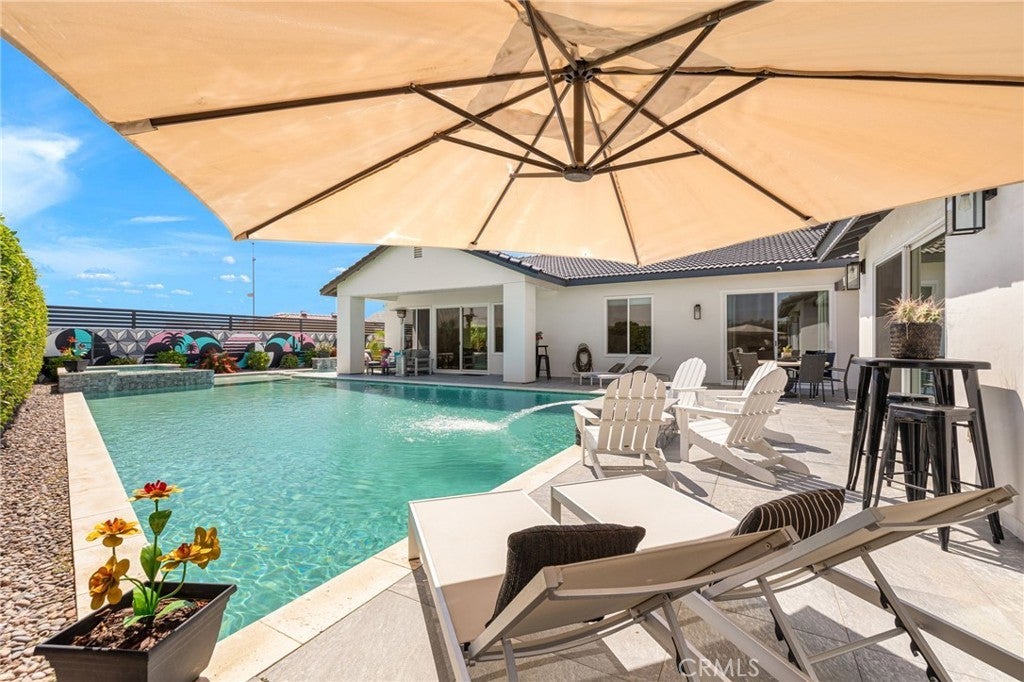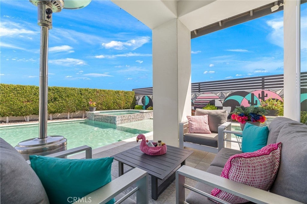 Welcome to one of Palm Desert’s most refined and private retreats, nestled on an expansive 10,454 sq. ft. lot in a coveted neighborhood setting. This newly reimagined home has been thoughtfully upgraded with luxury finishes and modern amenities, offering a seamless blend of indoor-outdoor living and resort-style sophistication. At the heart of the home is a designer kitchen outfitted with premium Viking appliances—elegant yet functional, ideal for both relaxed mornings and elevated entertaining. Natural light pours through brand-new windows and sliding glass doors, while newly remodeled showers and a brand-new A/C unit enhance everyday comfort. Outside, a private oasis awaits: a 52-foot lap pool, a stunning 40’x25’ smart-controlled designer pool, and a 10-person spa anchor the showstopping outdoor experience. A putting green, citrus trees, and lush hedging frame the grounds, while multiple dining and lounge areas—complete with a pizza oven, bar seating, and two LED TVs—set the tone for unforgettable gatherings. A striking 70-foot mural by celebrated artist Steven Van Art adds a one-of-a-kind Coachella-inspired backdrop. Previously a successful high-end vacation rental favored by celebrities, athletes, and musicians, this estate offers an extraordinary opportunity—whether as a full-time residence, seasonal escape, or investment.