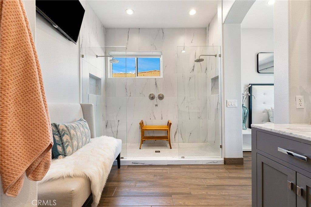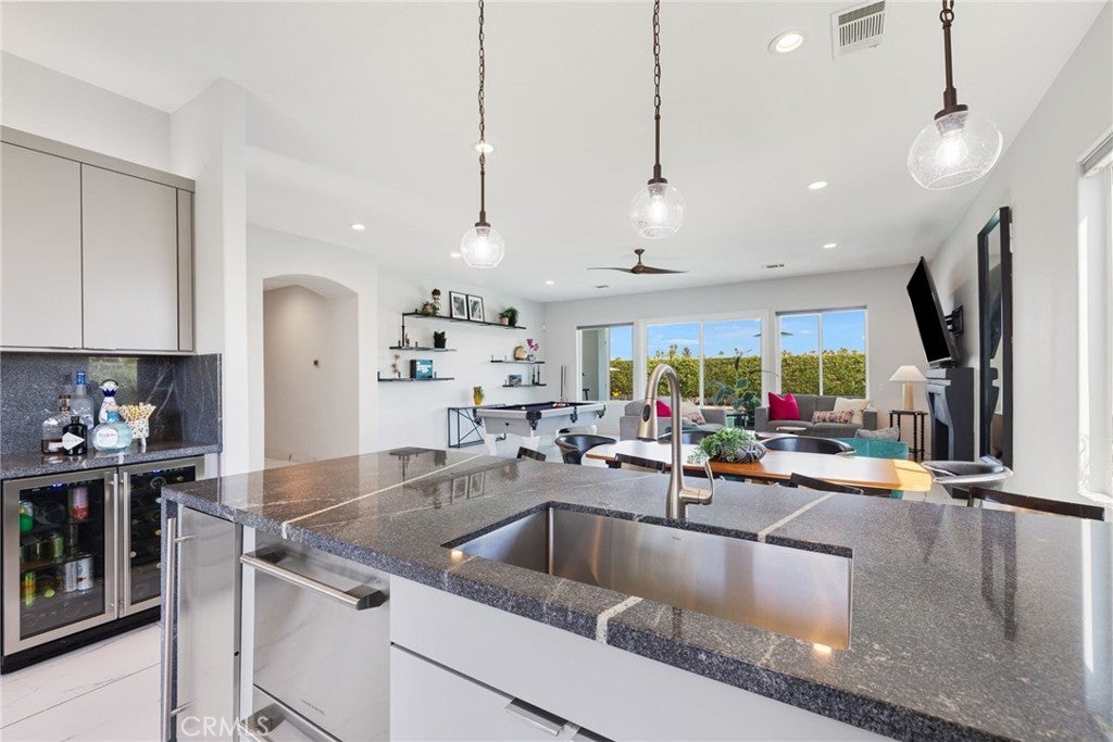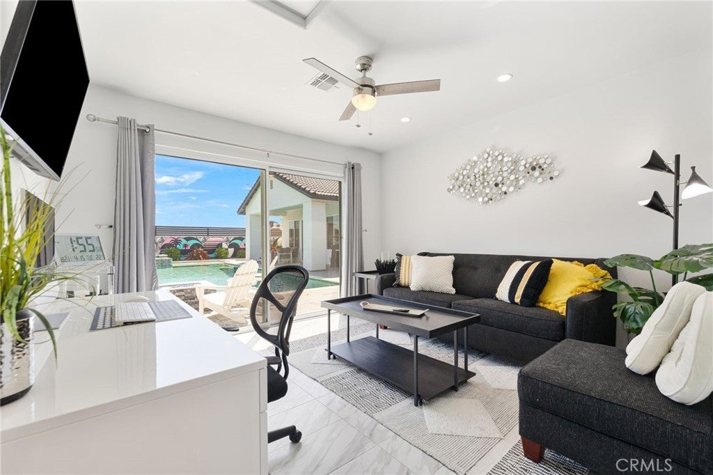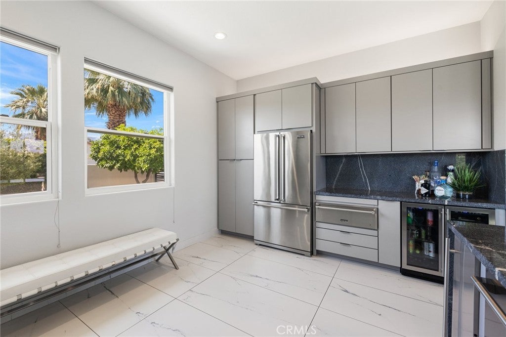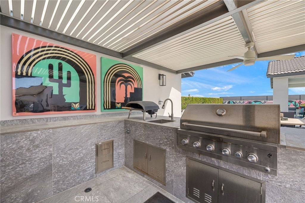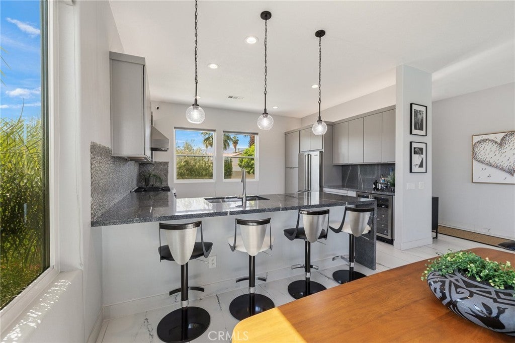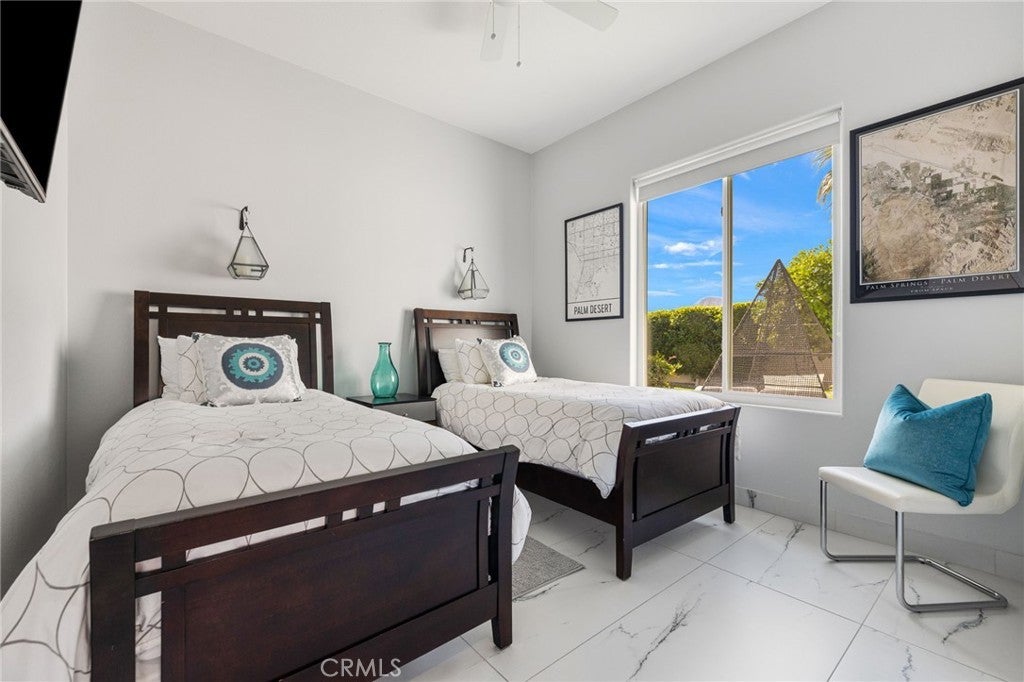 Welcome to one of Palm Desert’s most refined and private retreats, nestled on an expansive 10,454 sq. ft. lot in a coveted neighborhood setting. This newly reimagined home has been thoughtfully upgraded with luxury finishes and modern amenities, offering a seamless blend of indoor-outdoor living and resort-style sophistication. At the heart of the home is a designer kitchen outfitted with premium Viking appliances—elegant yet functional, ideal for both relaxed mornings and elevated entertaining. Natural light pours through brand-new windows and sliding glass doors, while newly remodeled showers and a brand-new A/C unit enhance everyday comfort. Outside, a private oasis awaits: a 52-foot lap pool, a stunning 40’x25’ smart-controlled designer pool, and a 10-person spa anchor the showstopping outdoor experience. A putting green, citrus trees, and lush hedging frame the grounds, while multiple dining and lounge areas—complete with a pizza oven, bar seating, and two LED TVs—set the tone for unforgettable gatherings. A striking 70-foot mural by celebrated artist Steven Van Art adds a one-of-a-kind Coachella-inspired backdrop. Previously a successful high-end vacation rental favored by celebrities, athletes, and musicians, this estate offers an extraordinary opportunity—whether as a full-time residence, seasonal escape, or investment.