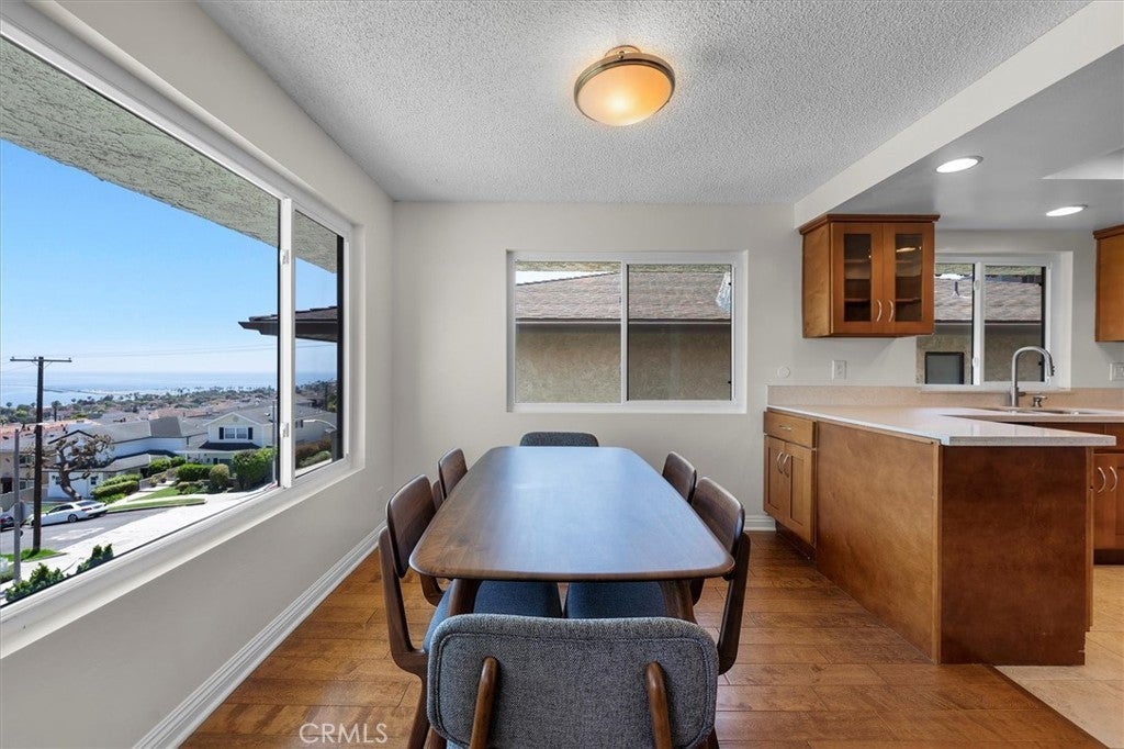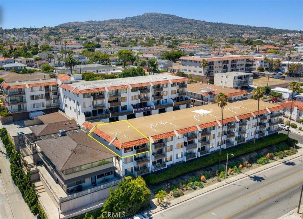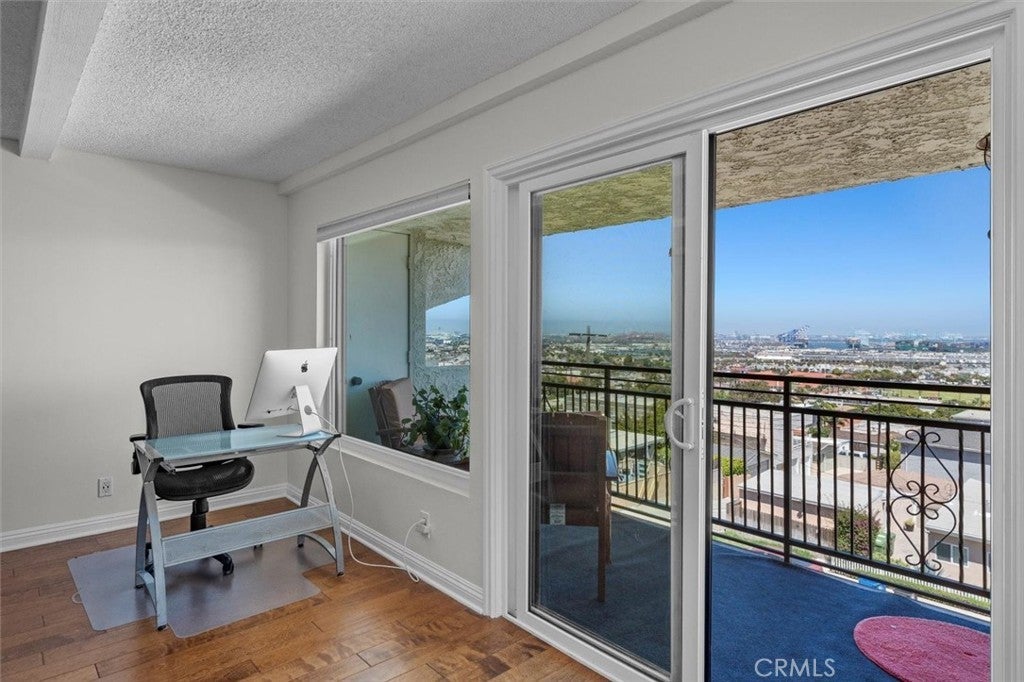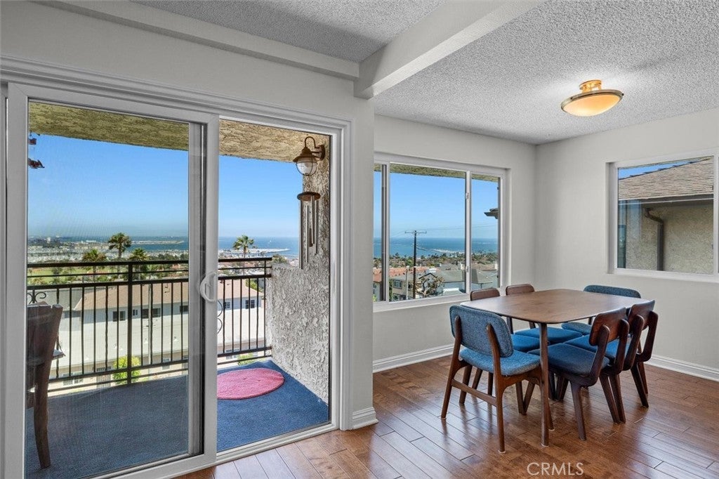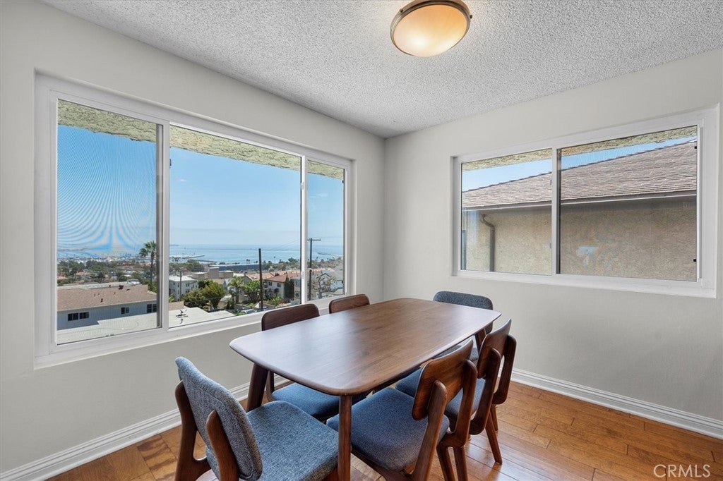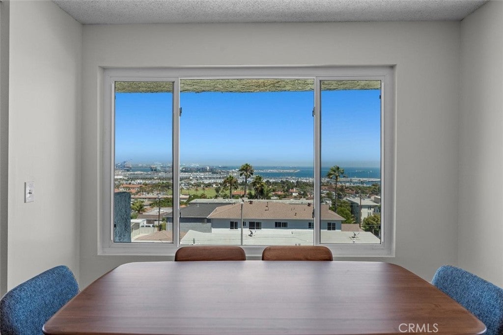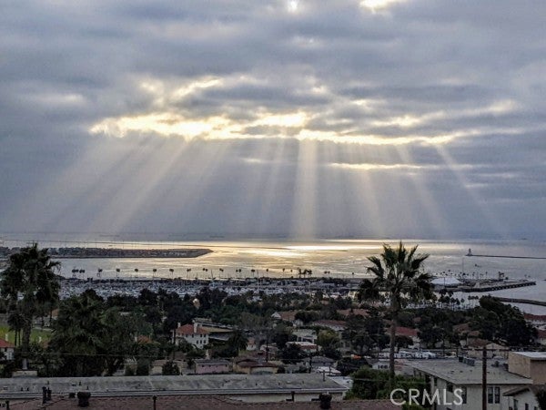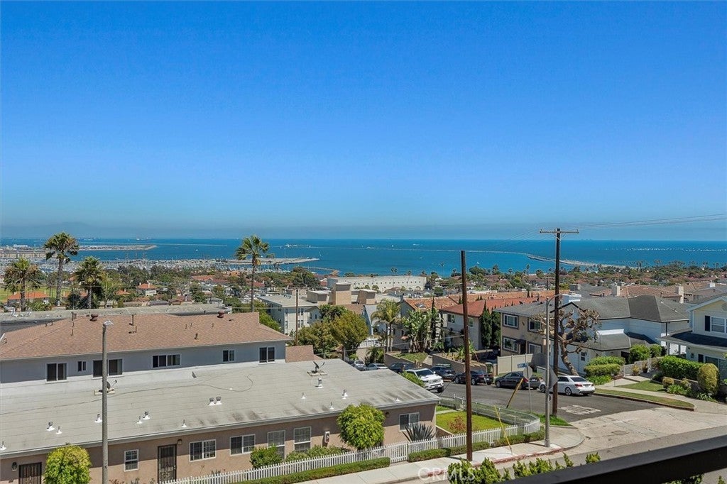 Unobstructed, panoramic views of the ocean, harbor and mountains from this front buildings corner penthouse end unit. Rarely available top floor 2bed, 2 bath in Bay View Terraces in the Palisades of San Pedro. One shared wall. Remodeled kitchen with custom cabinets, quartz countertops, stainless steel appliances, recessed lighting, tile flooring. Upgraded energy efficient double pane windows that will keep you cool in the summer, warm in the winter and whisper quiet when closed. Spacious primary bedroom with en suite bath, frameless glass shower and modern finishes. Second bedroom is generous in size. Beautiful engineered hardwoods, tile, vinyl (guest bath). Freshly painted. In unit laundry with Speed Queen washer and dryer. The unit comes with 2 side by side parking spaces and overhead storage. Complex amenities include: pool, spa, gym, free high speed internet (1gig!), beautiful grounds. Conveniently located near Cabrillo Beach Point Fermin, Korean Friendship Bell and the new multi million dollar development West Harbor. Don’t miss this rare opportunity for a view that will bring you decades of peace and relaxation as you gaze over the ocean.