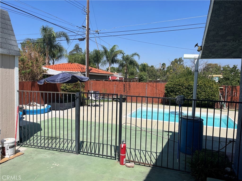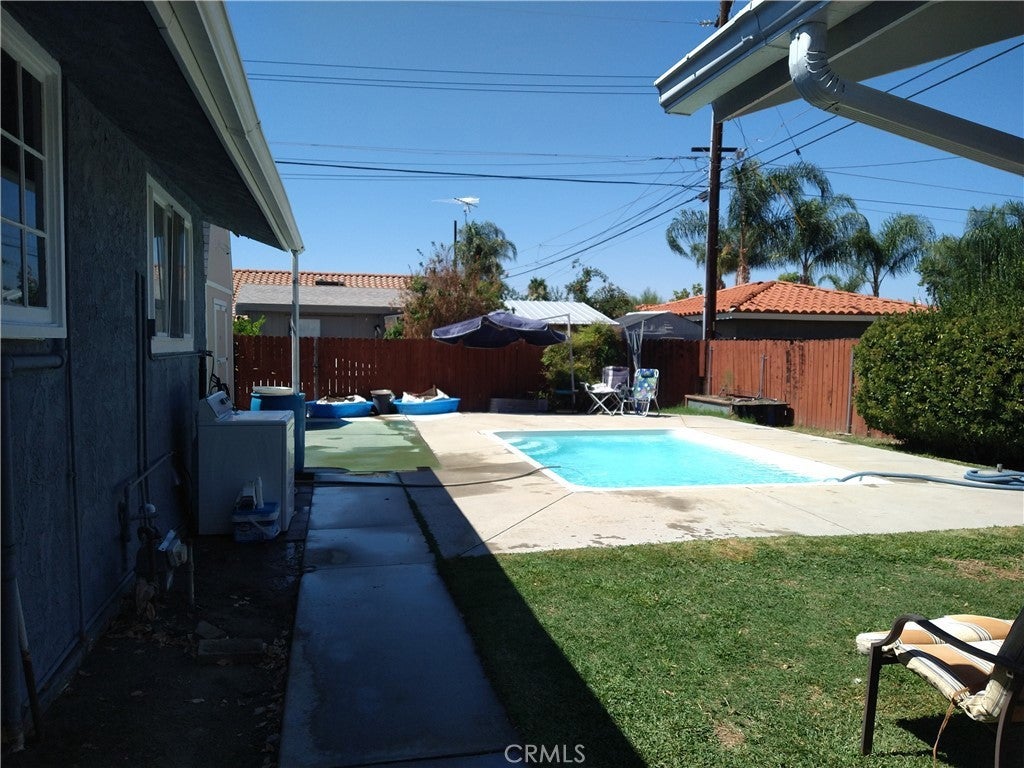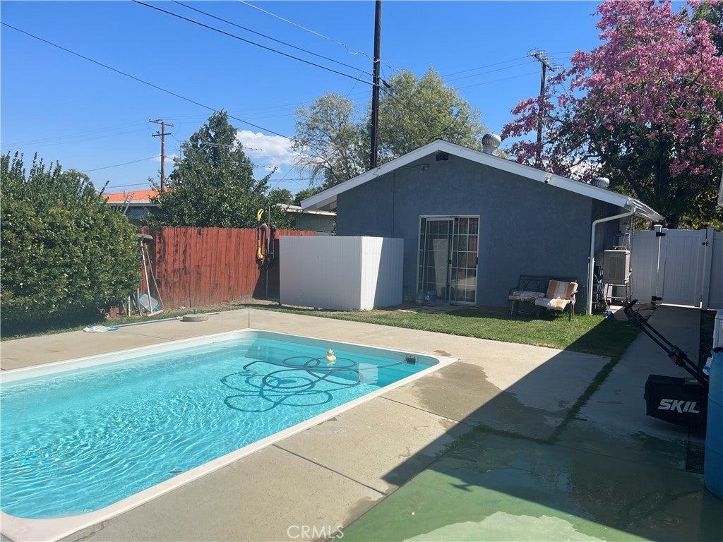 BUYER CAN CLOSE ESCROW WITH A $20,000.00 CHECK IN HAND OR A CREDIT FROM ESCROW!!. THIS PROPERTY IS BACK ON THE MARKET.BUYER DID NOT QUALIFY FOR A REAL ESTATE LOAN AFTER A 45 DAY ESCROW. HIS LOSS YOUR GAIN! CLOSE ESCROW WITH A CHECK IN THE BUYERS POCKET . SELLER HAS AUTHORIZED A $20,000.00 BUYER CREDIT FROM ESCROW FOR DOWN PAYMENT ASSISTANCE ,UPGRADES OR PERSONAL USE. WHY SETTLE FOR SMALLER HOMES AND SMALLER LOTS AND LARGE DOWN PAYMENTS. COOL OFF DURING THOSE HOT HEMET DAYS WITH A POOL. FENCED PARKING FOR 8 VEHICLES OR RV,BOAT, OR A TOY HAULER .A HUGE 9,148 SQUARE FOOT LOT. LARGE TUFF SHED ON CONCRETE FOUNDATION INCLUDED. Mainline to street with a clean out installed early 2000's . Enclosed porch with security bars and door. This house is a 2 bedroom 1 Bath living room ,dining room and a utility room in the main house that could serve as A THIRD bedroom or living space. .This property also has a bonus room with bathroom and shower. Spacious front and PRIVATE BACK YARD with plenty of room for entertaining Central Air /Heat/Evaporative Cooler. Roof overlay less than 5 years old.New 30 gallon Water heater with Warranty .New Interior & exterior paint main house and garage . Plenty of fruit trees to include Babcock white peach ,Fuji Apple,Thompson seedless grape vine,nectarine tree,grafted apple tree with 5 different types of apples,lemon tree and A Naval orange tree.Front yard has a silk floss tree. Walking distance to shopping,Churches and schools.