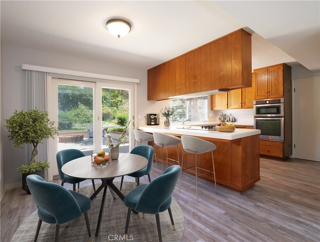 Welcome to your dream home nestled in the picturesque community of Rancho Palos Verdes. This charming single-family residence offers expansive living spaces with a floor plan designed for comfort, flexibility and style. With five spacious bedrooms and 2.5 bathrooms, including a primary ensuite, this home is ideal for those seeking a classic home with a light, airy and functional floor plan! Step inside to discover a welcoming atmosphere, highlighted by a cozy fireplace that promises warmth and relaxation. The living area seamlessly transitions into the dining space, perfect for entertaining family and friends. The kitchen has ample cabinet space, large counters and overlooks the lushly landscaped and very private backyard and it opens to the great room with informal dining area. Upstairs, all five generously proportioned bedrooms provide a peaceful retreat bathed in natural light. In addition to plenty of closet space in each bedroom, the large upstairs hallway features storage cabinets galore. The primary bedroom is a true sanctuary, complete with vaulted ceilings, walk in closet and an ensuite bathroom. Outside, the property boasts a beautifully landscaped yard, offering a a delightful blend of tranquility and outdoor enjoyment. The large patio and conversation area with firepit are perfect for al fresco dining or simply unwinding after a long day. The side yard has plenty of room to grow your own vegetables too! This turnkey home with ocean views situated at the top of a quiet cul-de-sac and conveniently located close to award winning Palos Verdes Peninsula Schools, plus parks, shopping, dining and entertainment is an exceptional find for the discerning buyer!