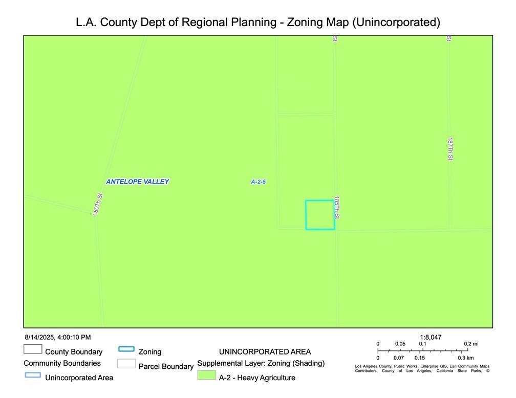Positioned in the tranquil high desert, this 2.6-acre corner parcel offers the rare opportunity to shape a vision from the ground up. Zoned A-2-5 (Heavy Agricultural), the land welcomes a range of possibilities—cultivating crops, establishing greenhouses, grazing livestock, creating equestrian facilities, or designing a private rural retreat. The level, rectangular terrain unfolds under expansive skies, framed by sweeping mountain and desert vistas. Here, space and privacy are abundant, yet Lancaster’s amenities remain within easy reach. Whether for agricultural enterprise, a custom residence, or as a strategic long-term investment, this property offers a canvas as open as the landscape itself.