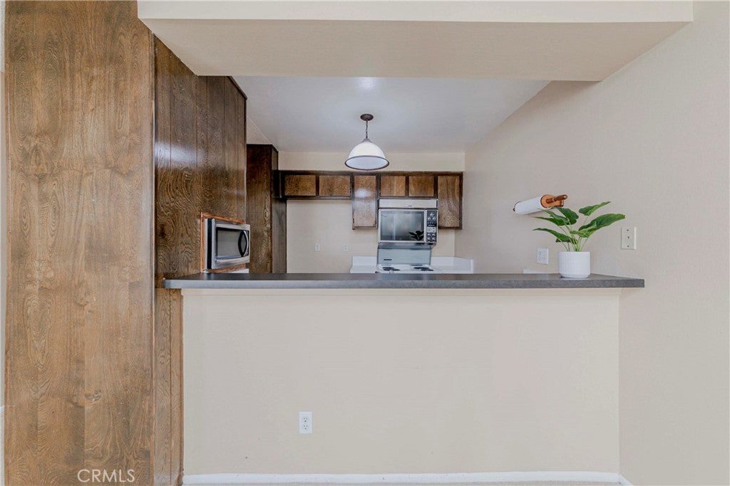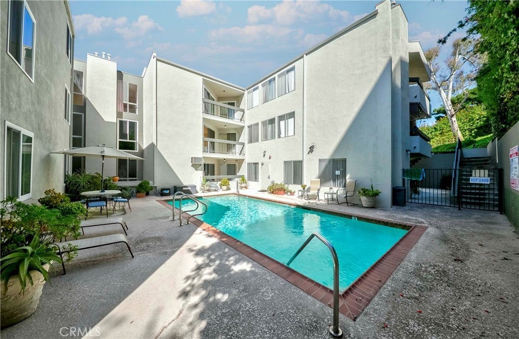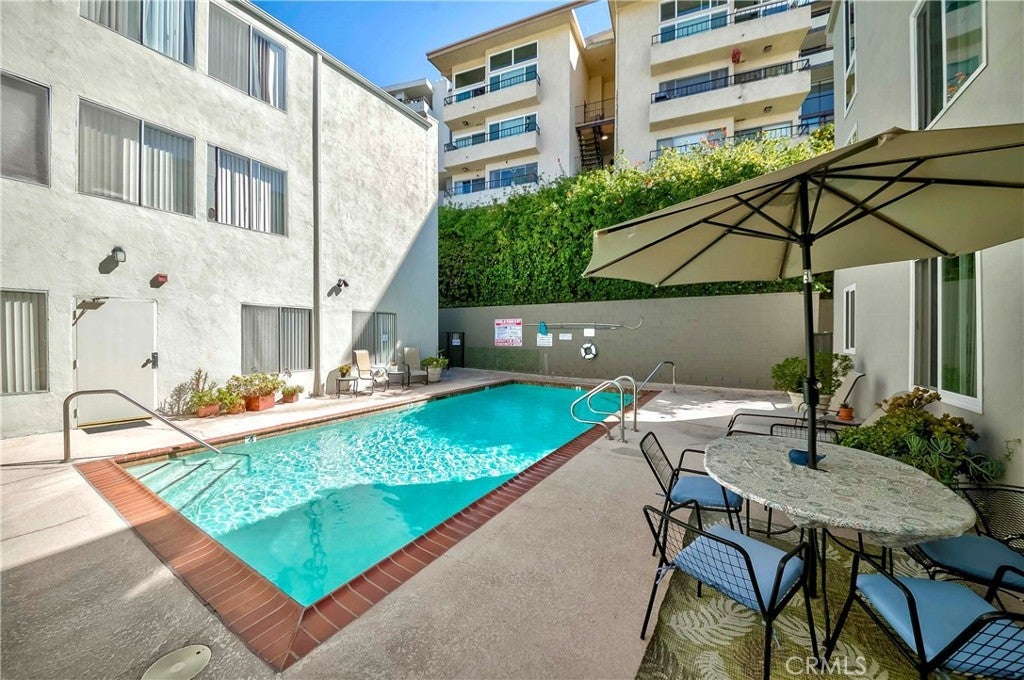 Excellent Opportunity to own a property in Palos Verdes! Well-maintained top floor 1-bedroom, 1-bathroom condo in Palos Verdes Penthouse HOA offering 758 sq. ft. in the heart of the Peninsula. Occupied by family members for years, this home boasts a quiet interior location with views of the community pool. The open living room features floor-to-ceiling windows, a cozy fireplace, and an adjacent dining area with ceiling fan. Step through the glass sliding door onto the balcony overlooking the pool. The kitchen offers ample space with wood cabinetry. Spacious bathroom features a wide vanity suitable for seating and a bathtub. The good-sized bedroom includes a private balcony, walk-in closet, and storage cabinets. Additional amenities include subterranean garage parking with private storage, laundry on every floor, community pool, and recreation room. Conveniently located near Peninsula Center for shopping, dining, and entertainment, all within the award-winning Peninsula Unified School District.