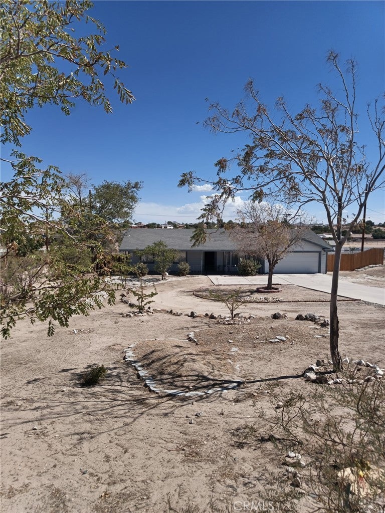 Welcome to this Charming Desert Home. The home features new flooring throughout the home. Freshly painted interiors create a bright and inviting atmosphere. Three generously sized bedrooms, each equipped with a ceiling fan. Spacious master bedroom featuring an attached master bath. Living room with a cozy fireplace. Kitchen includes a sliding glass door that opens directly to the covered patio. Large, covered patio, ideal for gatherings and relaxation. Expansive backyard, enclosed by two separate fences. The first fenced area offers a cozy, private outdoor space. The second, large area is suitable for a garden, pool or quite retreat If your seeking a home with ample space to bring your vision to live, this property provides the perfect opportunity.