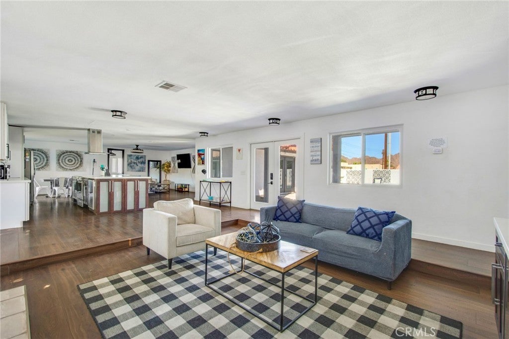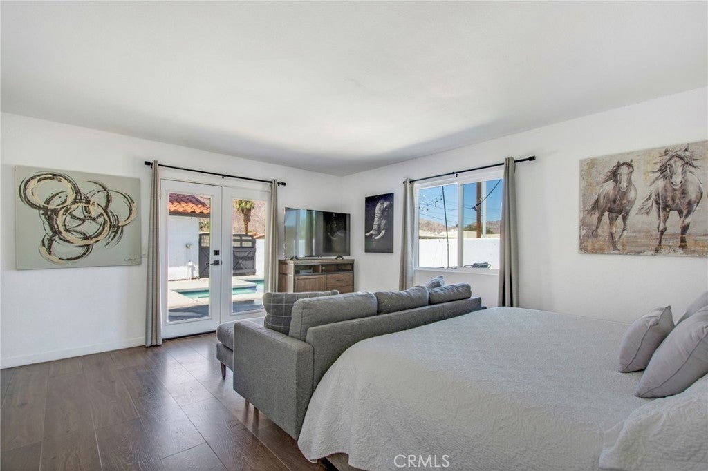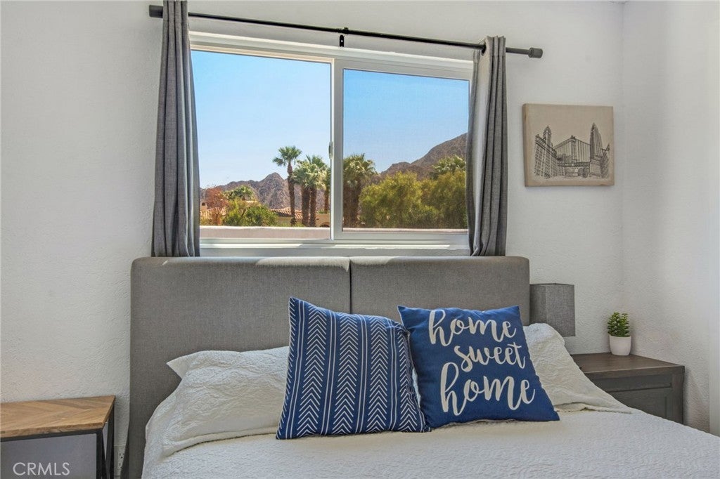 CHARMING CORNER LOT IN THE COVE – FULLY FURNISHED WITH POOL & MOUNTAIN VIEWS! MOTIVATED SELLERS! 3BD/2BA home on a desirable corner lot in La Quinta Cove. Fully furnished with stainless steel appliances, washer/dryer, and stylish finishes throughout. Open-concept layout features a sunken living room with wood-burning fireplace and wine cooler. Kitchen boasts quartz countertops, center island, and modern cabinetry. All bedrooms have walk-in closets and laminate tile flooring. Primary suite includes en suite bath and French doors opening to a private courtyard with new sparkling pool, spa, and water fountain—perfect for enjoying panoramic mountain views. Includes attached 2-car garage. Close to Old Town La Quinta, golf, hiking, and more. Ideal as a full-time residence, vacation home, or investment property!