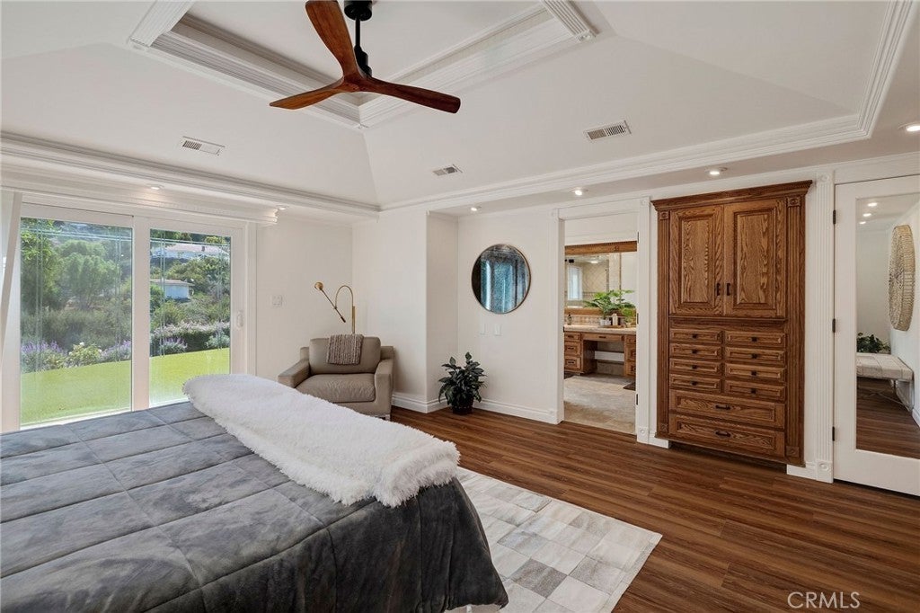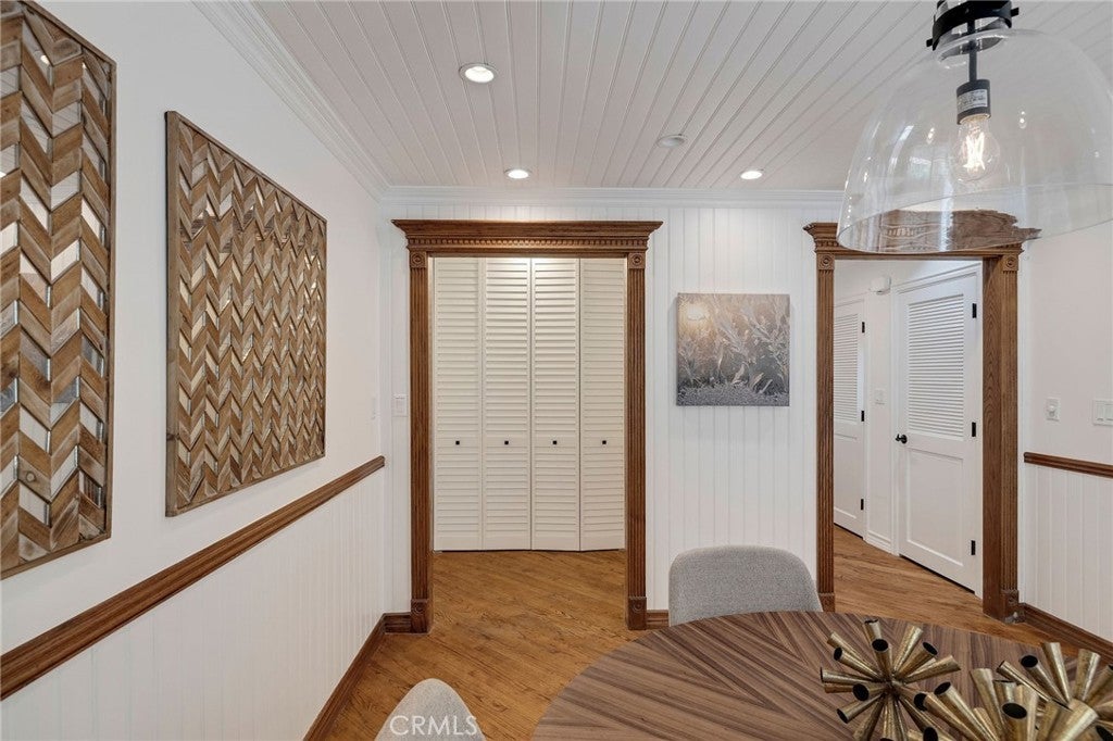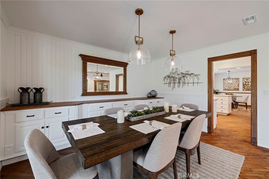 • Interior FeaturesBuilt-in Features, Ceiling Fan(s), Crown Molding, Cathedral Ceiling(s), Separate/Formal Dining Room, Eat-in Kitchen, Open Floorplan, Recessed Lighting, All Bedrooms Down, Primary Suite, Walk-In Closet(s), Furnished, Main Level Primary, Paneling/Wainscoting, Wired for Data, Wood Product Walls
