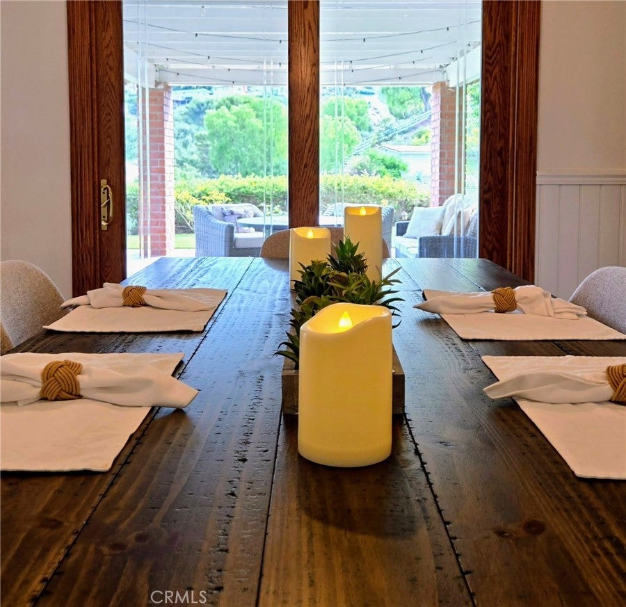 Luxury Canyon Retreat in great location: turn-key ready with high end furniture and decor. This stunning, newly-renovated home exudes luxury. Perched on a canyon in the coveted Black Horse neighborhood on the edge of Palos Verdes, this beautiful single-level home is nestled in a quiet cul-de-sac, offering serene surroundings and breathtaking canyon views. Located just minutes away from top-rated South Bay schools and the Peninsula Center, South Redondo's culinary and lively social scene, and stunning beaches, this property offers the perfect blend of tranquility and convenience. Open-concept layout connects the kitchen, dining, and living areas complete with vaulted ceilings, recessed lighting, wood floors, and a cozy fireplace. Step outside and enjoy the entertainer's backyard: a covered patio with exposed beams adorned with bistro lights, a fire pit, a grill, and seating overlooking the canyon. The low maintenance landscaping features artificial turf with a drip irrigation system, and a bountiful orange tree. Hawks can be seen gliding by at eye level. The perfect backdrop for relaxation day or night. * Four spacious bedrooms and three bathrooms * Fully stocked kitchen with brand new appliances * Spacious primary suite with sliding doors to the back yard, walk-in closet, and beautifully updated bathroom * Plenty of storage throughout home * Central serene atrium with skylight and waterfall fixture * Furnishings and decor are exactly as depicted in the pictures, ensuring a seamless move-in experience * 6 month rental or longer With it's stunning views, beautiful furniture and decor, and convenient location, this property offers the ultimate in luxury living. Don't miss this rare opportunity to live in a piece of paradise. This home combines comfort, convenience, and quiet luxury—ideal for anyone seeking a furnished (or partially furnished), turn-key rental for 6-months or longer.