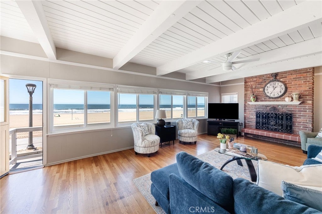 Welcome to the beachfront home of your dreams. This South Manhattan Beach Strand home is available fully furnished for lease, offering the ultimate South Bay beach lifestyle. With unobstructed ocean views and direct beach access, you’ll enjoy front-row sunsets every evening. This beautifully maintained home features 3 spacious bedrooms and 3 bathrooms within an open, light-filled floor plan designed to highlight the coastal setting. The main living area boasts expansive windows overlooking the sand and surf, a cozy fireplace, and seamless indoor-outdoor flow to the oceanfront patio—perfect for relaxing or entertaining. An elevated dining room enhances every meal with sweeping ocean vistas. The modern kitchen includes stainless steel appliances, ample storage, and a charming built-in breakfast nook. Upstairs, the primary suite offers panoramic views, a fireplace, and a spa-inspired bathroom. Two additional bedrooms on the main level provide comfort and flexibility for family, guests, or a home office. A private courtyard creates an additional outdoor retreat for dining or lounging. Additional highlights include hardwood floors, in-unit laundry, a two-car garage, and a prime location just five blocks from the dining, shopping, and nightlife of downtown Manhattan Beach.