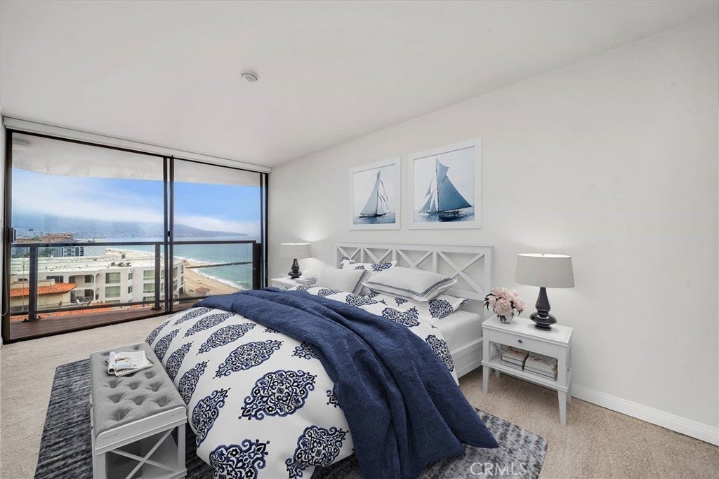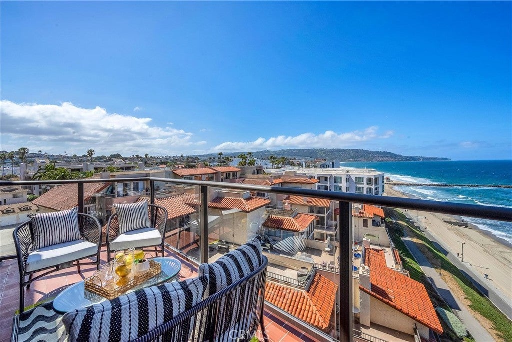 Oceanfront living at Ocean Plaza! Southwest-facing 2BD/2.5BA with panoramic ocean views, stunning sunsets, and epic views of PV and Catalina. Open layout with cherry wood floors and a kitchen featuring granite countertops, stainless steel appliances, and a wine fridge. Both bedrooms offer ocean views and updated baths, including a primary suite with walk-in closet. Multiple balconies + large front patio for seamless indoor-outdoor living. Tandem garage. Resort-style amenities include pool, spa, gym, clubhouse + direct beach and bike path access. Prime location near the Pier, Veterans Park, and Riviera Village.