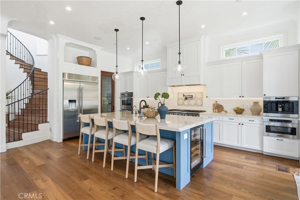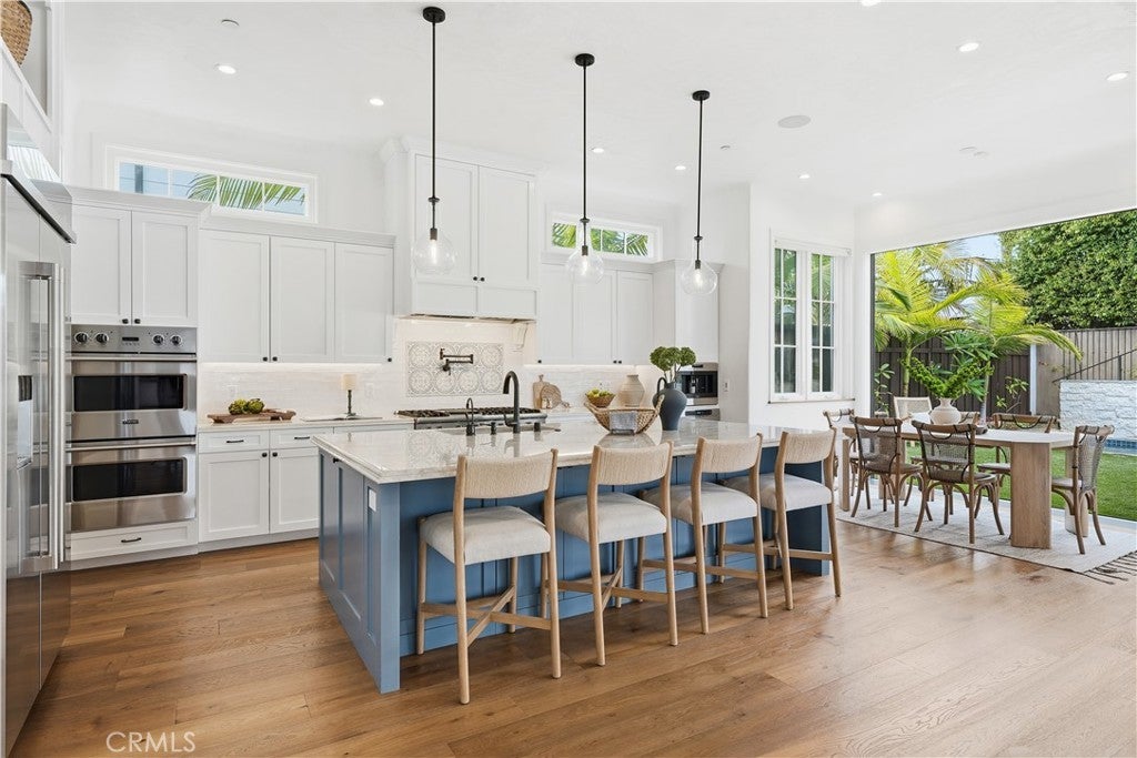 Rare East Manhattan Beach masterpiece where timeless elegance meets modern luxury. Built in 2021 by esteemed custom builder Patrick Kealy, on a coveted corner lot with a landscaped yard and white picket fence set the stage for timeless curb appeal. With 6 bedrooms, 6.5 bathrooms, a finished basement and approximately 5,738 SQFT (BTV) of living space on a 7,449 SQFT lot (BTV), this home offers scale without sacrificing warmth. Soaring ceilings and an open-concept floor plan flood the home with natural light and are enhanced by dramatic bi-folding doors that open seamlessly to a private backyard oasis—featuring a pool, spa, built-in Wolf BBQ and a custom Korean BBQ—creating the ultimate indoor-outdoor California lifestyle. The heart of the home is a chef’s kitchen featuring top-of-the-line amenities with exquisite finishes, a walk-in pantry, stainless steel Viking appliances including double ovens, a bonus warming drawer, and a Wolf built-in espresso maker. The lower level offers a full basement with a full bar equipped with ice maker, refrigerator, and dishwasher perfect for a media room, playroom or a gym, complete with a guest suite. The upper level finds the majority of the bedroom suites, each with its own en-suite bathroom vaulted ceilings, and custom closets. The primary suite is like a retreat with a romantic fireplace and spa like primary bath. Located in one of Manhattan Beach’s most desirable neighborhoods, East Manhattan Beach offers larger lots, larger homes, and close proximity to award-winning schools and parks. This residence is the Complete Family Retreat – a home that gives kids space to play, parents space to entertain, and everyone space to unwind. Only 15 minutes to LAX