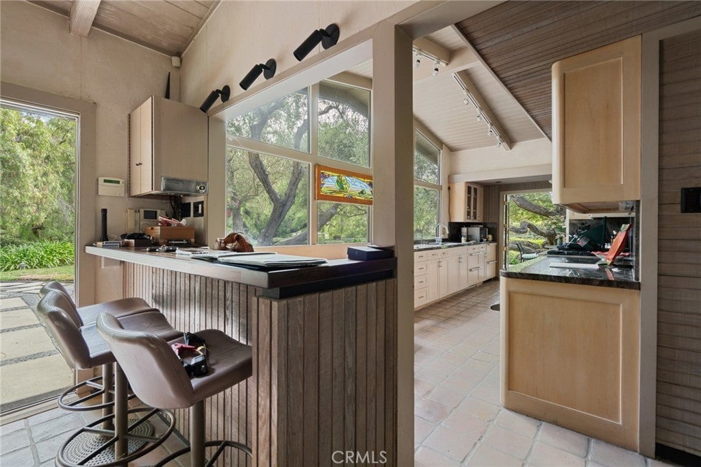 • Interior FeaturesBeamed Ceilings, Breakfast Bar, Built-in Features, Separate/Formal Dining Room, Granite Counters, High Ceilings, Recessed Lighting, Track Lighting, Wired for Data, Wired for Sound, All Bedrooms Down, Primary Suite, Galley Kitchen, Living Room Deck Attached, Wet Bar, Wood Product Walls