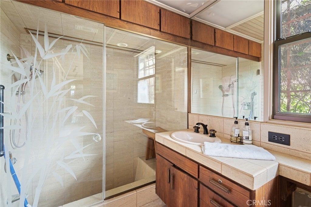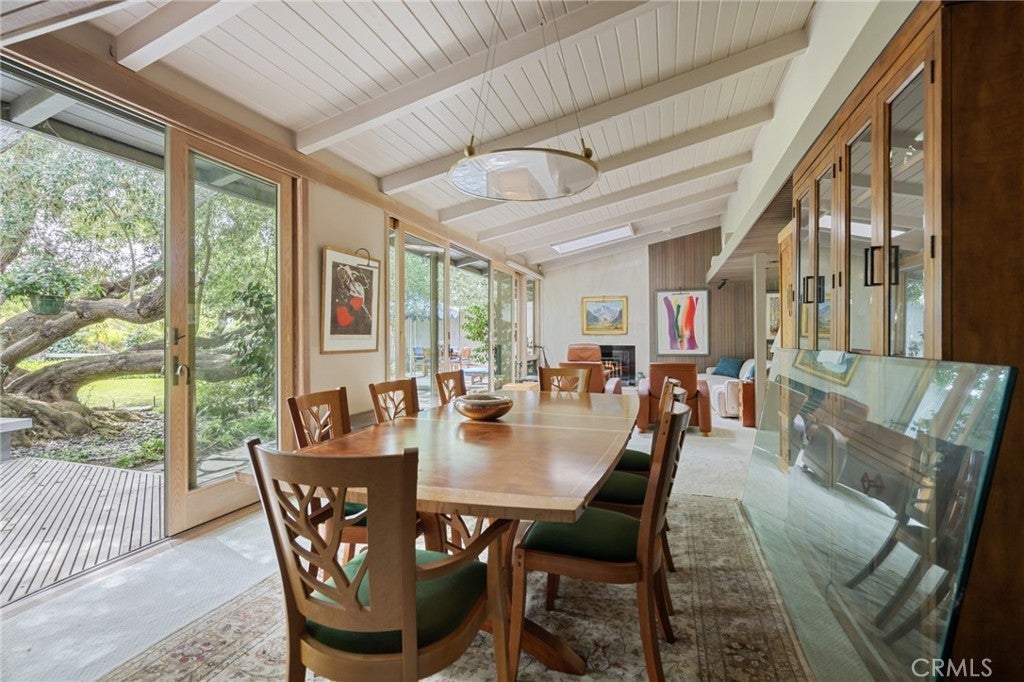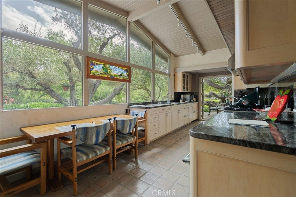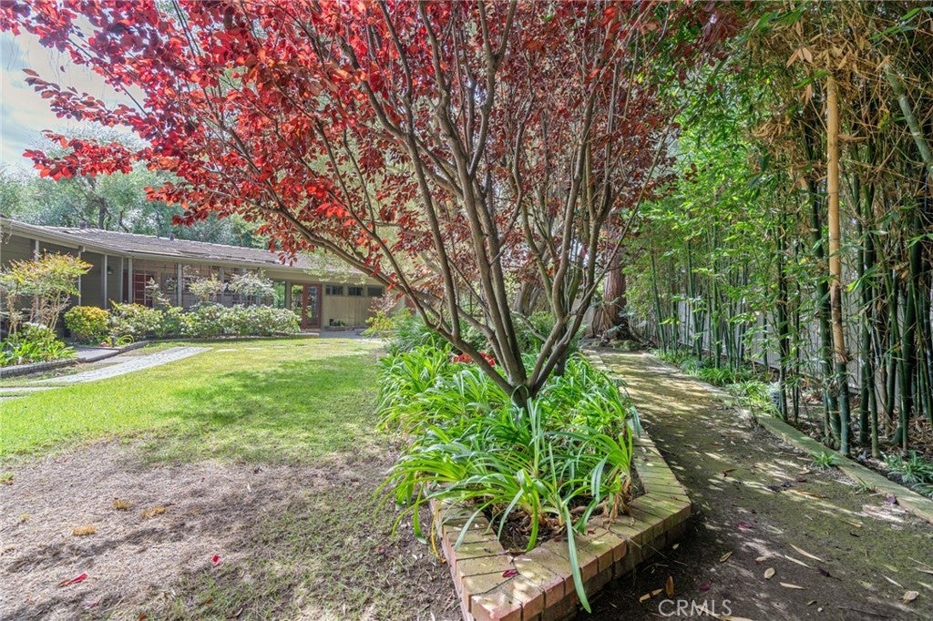 Nestled in lush gardens with mature trees and expansive grassy areas, this architectural masterpiece is a stunning fusion of Japanese design and mid-century modern aesthetics. Situated on a rare half-acre lot, the home is built on a double foundation with extra-thick cement. Inside, every detail reflects meticulous craftsmanship. Solid bleached vertical grain white oak doors feature custom Rosewood knobs, while the chef’s kitchen boasts top-tier Viking appliances, a multi-burner cooktop with grill, and exquisite Paradiso Granite counters with Braun steel soft-close drawers. Solid maple cabinetry adds warmth, complemented by 8” x 8” Spanish tile flooring in the kitchen and hallway. Designed for seamless indoor-outdoor living, the estate offers expansive decks crafted from premium wood, free of knots, creating a tranquil retreat in nature. The Japanese-inspired steam shower features etched Reed pattern glass doors, black walnut-framed cabinets, and teakwood doors, elevating the spa-like experience. Rich in history, this estate was once the heart of Vanderlip Estate gatherings in the 1930s, hosting Hollywood legends like Clark Gable. The grounds include one of the world’s largest olive trees, with a 60-foot spread, famously used in Vanderlip’s Christmas photos. Modern luxuries include German-engineered Grohe fixtures, a tankless water heater with a circulating pump, and an on-site propane tank. This extraordinary estate is a true paradise, where timeless architecture meets natural beauty. NOTE: this property is located in an area of Rancho Palos Verdes experiencing active land movement. This home has NOT been affected and shows no signs of movement inside or outside the home.