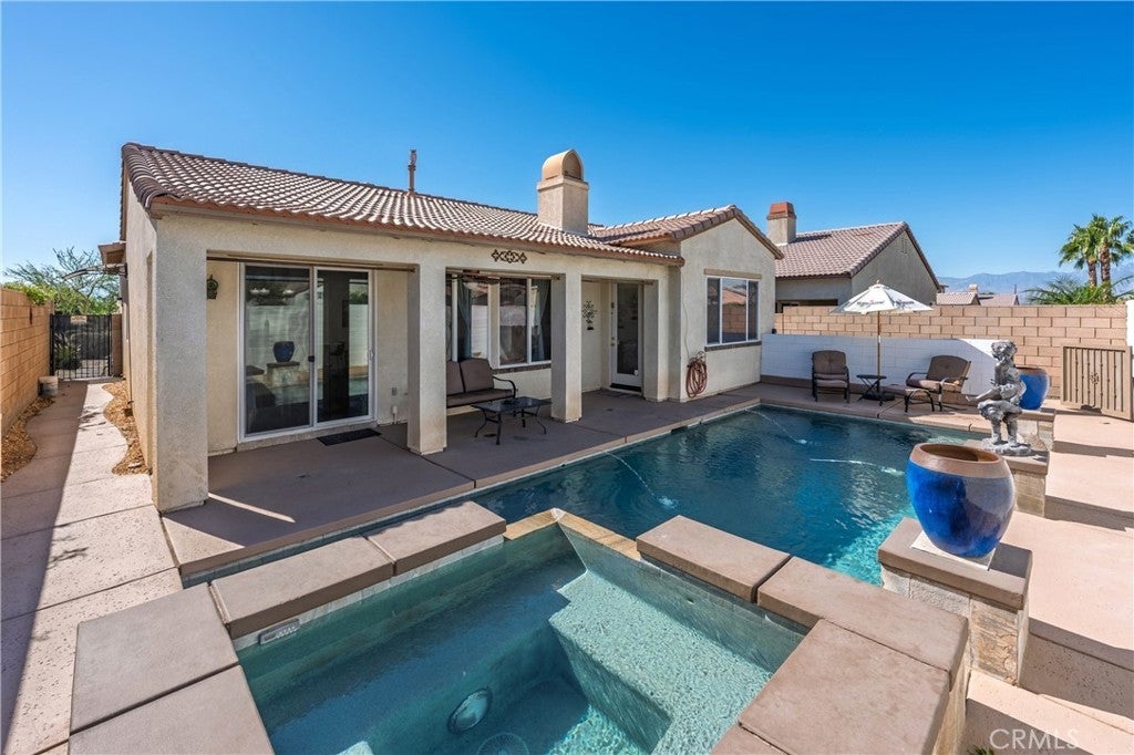 BACK ON THE MARKET! TURNKEY & APPROVED FOR SHORT TERM RENTAL! This beautifully remodeled 3 bedroom 2 bath home located within the Terra Lago Community has a private pool, jacuzzi and amazing mountain views! Its community offers amazing amenities such as a community clubhouse, a 3 acre lake, water sports, gym, a playground, BBQ area, a community pool/spa, 24 hour gate access, high speed internet, Direct TV cable and is adjacent to a golf course. The home features a spacious open-floor plan with a great room, gas fireplace, open kitchen, hardwood floors, high ceilings and a primary bedroom with en-suite bath. The kitchen has beautiful wood cabinetry, quartz countertops, tile backsplash, a center island with seating and built-in appliances. The spacious primary bedroom overlooks the pool area and has a large ensuite bathroom, soaking tub and walk-in shower. Additionally, the home has a salt water pool/jacuzzi, outdoor patio with pergola, EV charging station, automatic sprinkler and drip system and a spacious high ceiling 2 car garage. Enjoy the best Indio has to offer located just minutes to golfing, hiking trails, casinos, restaurants and Coachella!