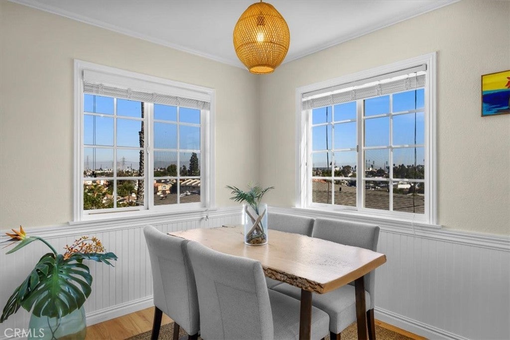 Welcome to a coastal gem that perfectly blends comfort, charm, and an unbeatable location. This inviting three-bedroom, one-bath home sits on an expansive lot designed for both relaxing and entertaining. Step inside to find a bright, open living area that flows seamlessly to a spacious deck and a backyard built for gatherings, play, and enjoying the California sunshine. On clear days, you can enjoy breathtaking views of the mountains, the downtown skyline, and even the Hollywood sign, all while being just a short stroll to the beaches of Hermosa and the Redondo Beach Pier. The home features gleaming hardwood floors, recessed lighting, Milgard dual-pane windows, and a beautifully updated bathroom. The efficient layout offers great storage throughout, including an oversized single-car garage with laundry and a generous driveway. Out back, enjoy a low-maintenance, water-wise yard with synthetic turf and raised garden boxes that are ideal for those who love outdoor living without the hassle. Whether you are hosting friends, relaxing in your private retreat, or envisioning future expansion, this property offers endless potential in one of the South Bay’s most sought-after neighborhoods.