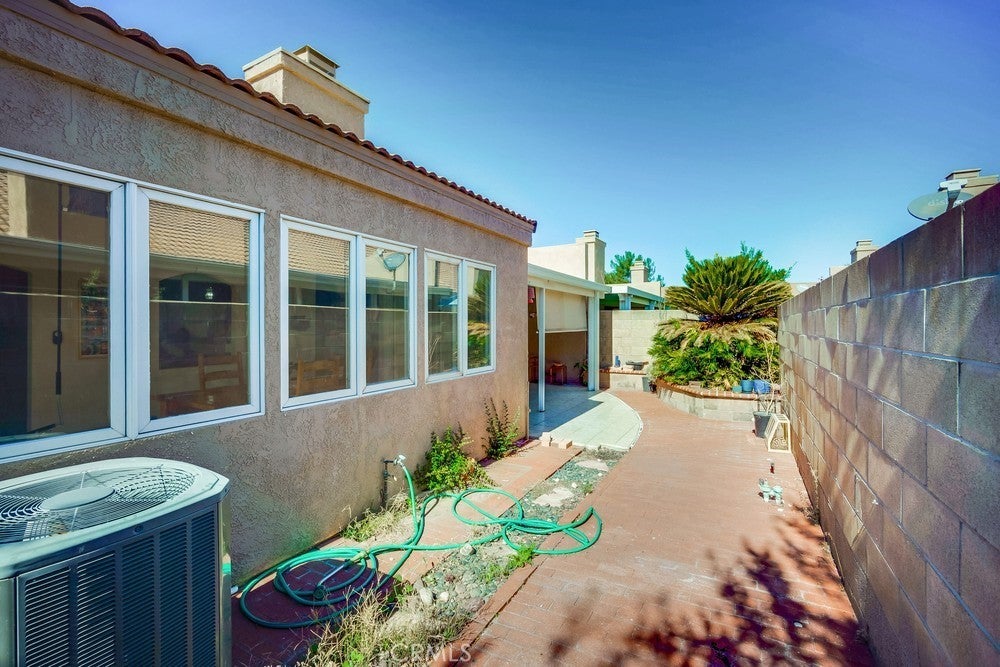 Welcome to 930 Countryside, a beautiful 1-level home located in Terra Linda Village. Open concept, cozy home has 2 bedrooms & 2 bathrooms featuring a den to use as a 3rd bedroom, office or private gym, 2-car garage with workshop, living room, eating area, dining room, bonus room & primary bedroom. Step into comfort & style w/the inviting living room featuring a beamed ceiling creating an open & airy ambiance. Gather around the charming fireplace - perfect for cozy evenings or enjoy entertainment as size offers ample seating for relaxing & social gatherings. Well-lit kitchen showcases a blend of classic & modern elements, featuring white cabinetry, countertops & stainless-steel gas stove, microwave, dishwasher & fridge. Kitchen designed purposefully w/functionality, aesthetics, storage & attached dining area boasting 5-seat breakfast bar. Experience style & comfort in the bright & airy formal dining room too. Featuring easy-care laminate floors & an abundance of natural light through large windows, the space is ideal for casual meals & intimate gatherings. The sliding glass door provides easy access to the backyard - a secluded outdoor living space lined with pavers. Bright & airy primary bedroom offers a tranquil retreat with a spacious feel, thanks to the high ceilings & sliding glass door that opens to the private outdoor patio. Primary bedroom features ensuite bathroom with tub/shower combo, dual sinks, two closets (one is a walk-in), built-in storage & ceiling fan. A mirrored closet door enhances the space & reflects natural light, while the carpet adds to a cozy atmosphere. Enjoy a peaceful stay in the guest bedroom, designed for relaxation, fully equipped with a ceiling fan & natural light. Step into your private outdoor retreat, perfect for relaxation & entertaining. Charming patio features modern retractable awning offering shade for sunny days. Space is beautifully designed with a tiled walkway leading to a cozy seating area & brick-lined planter w/lush greenery. Low-maintenance design ensures you can spend more time enjoying your home & less time on upkeep. This serene space is ideal for al fresco dining or unwinding after a long day. 2-car garage offers tons of storage & workshop! VA & FHA approved complex! Low HOA fees! HOA allows rentals!! Amenities inc. pet friendly, clubhouse, exterior & roof maintenance, front landscaping & trash service. Located near parks, shops, medical, dining, freeway, golf, lakes & forests. Your perfect home awaits!