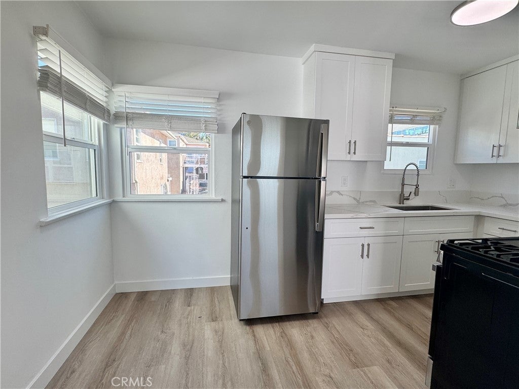 Totally remodeled and just two blocks from the beach and Pier Avenue, this beautiful Hermosa Beach apartment features a brand-new kitchen with modern appliances, wood laminate flooring, and fresh paint throughout. Enjoy stunning ocean views from both the living room and bedroom, along with a modern bathroom with walk-in shower, ceiling fans in both rooms, stylish window treatments, and a cozy dining area. The unit is located up one flight of stairs for elevated views and includes a private one-car garage. Experience the best of beachside living, just a short stroll to shops, restaurants, and the Hermosa Pier.