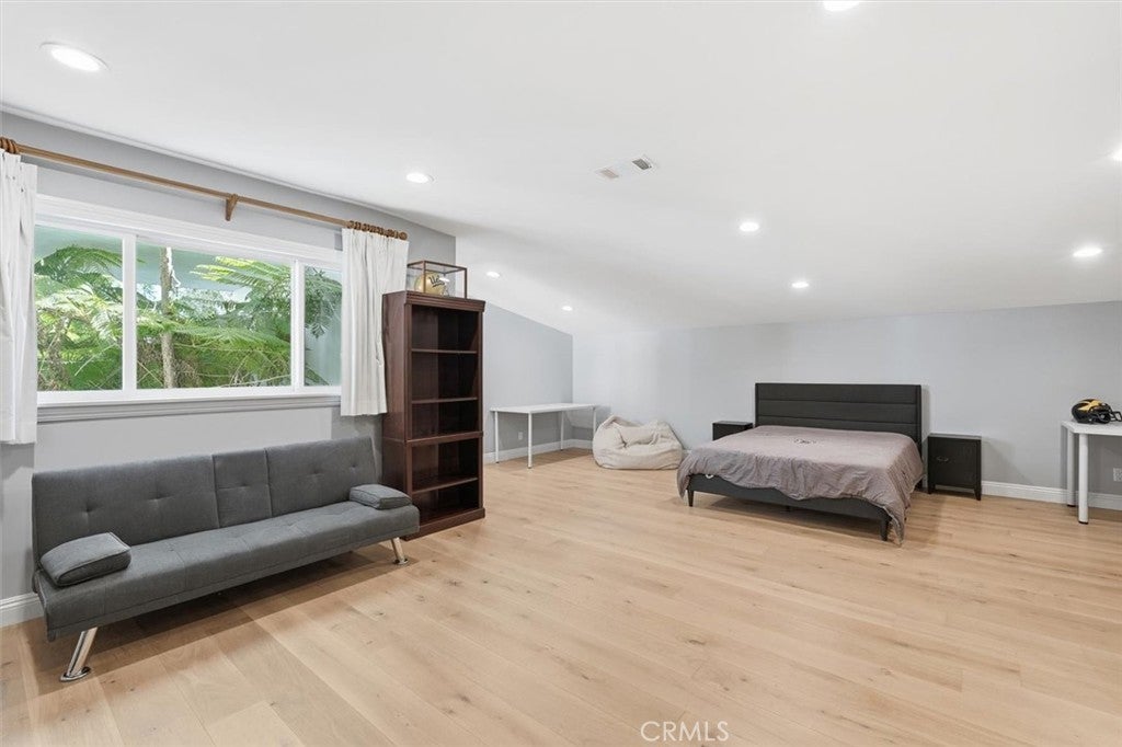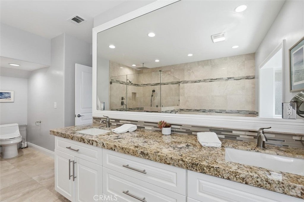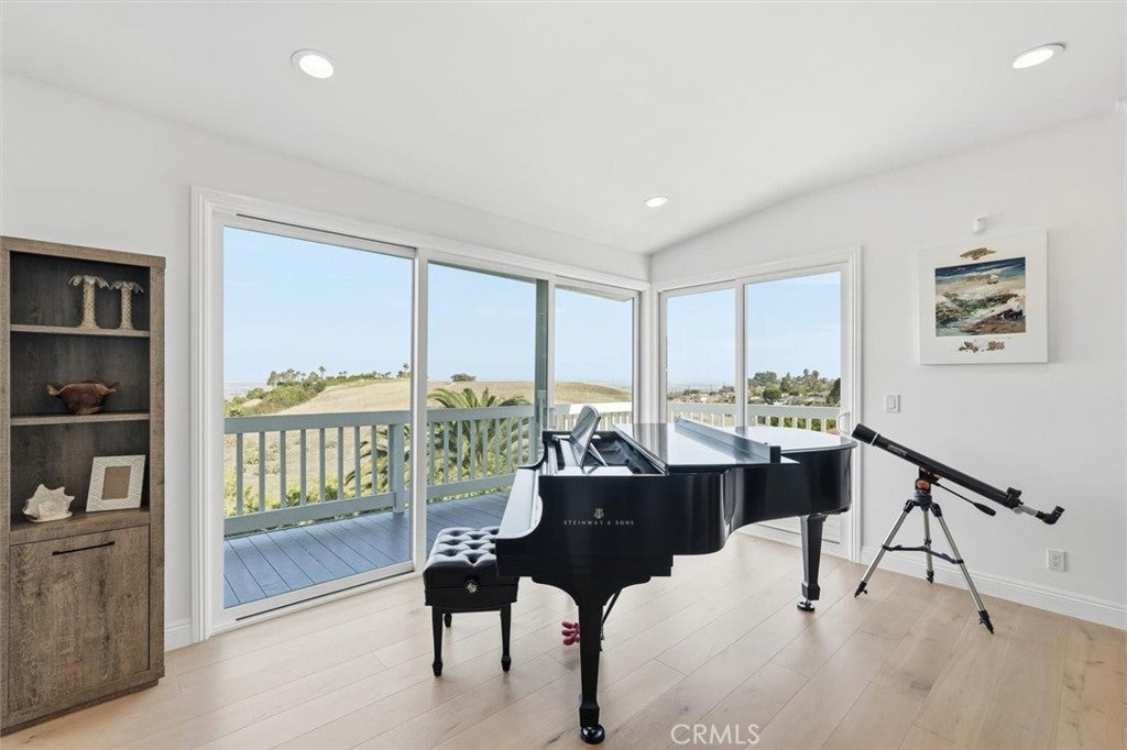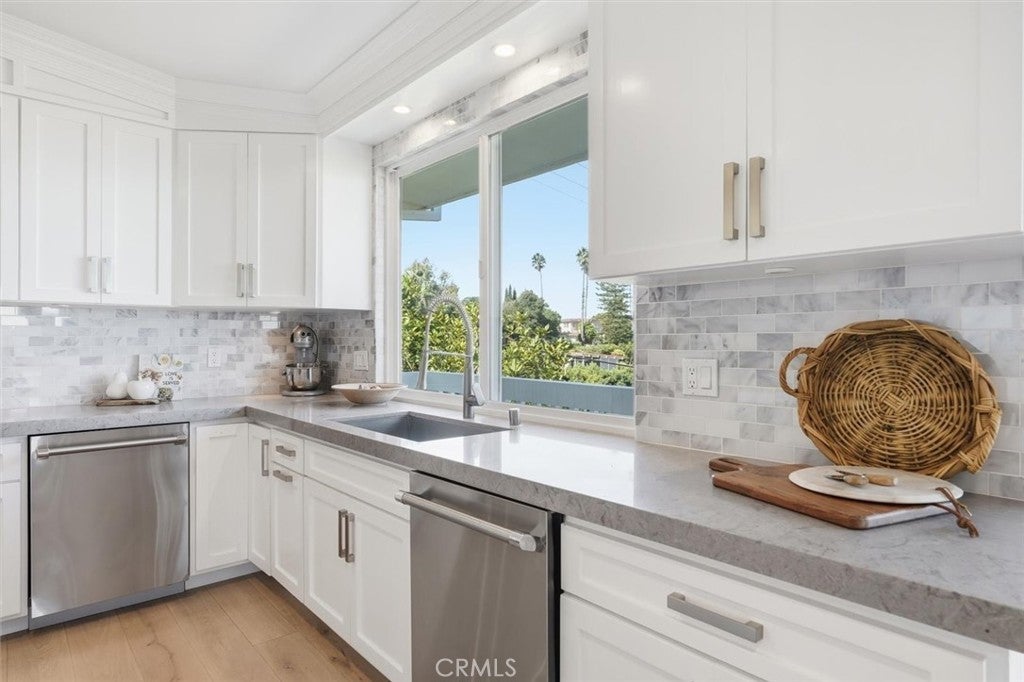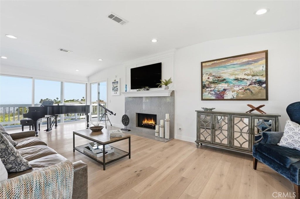 From the moment you walk through the front door, this home unfolds in layers—from a quiet entryway to a sweeping hillside and city-lights view that catches you completely by surprise. It’s the kind of setting that feels worlds away, yet remains close to everything. Surrounded by mature trees and parkland, the property enjoys rare privacy and an open, natural backdrop—an uncommon luxury for “L.A. living.” Natural light pours across wide-plank white oak floors, guiding you through an open, connected main level where the living, dining, and kitchen flow effortlessly toward a continuous view deck. Expansive windows frame the hills and shimmering skyline beyond the park, filling the home with a sense of calm and space that only the Palos Verdes hills can offer. The kitchen was designed for those who love to cook, host, and gather. Outfitted with premium Thermador appliances, dual dishwashers, under-cabinet wine refrigeration, and a walk-in pantry with extra pull-out storage, it blends beauty with function. Shaker cabinetry and natural stone counters tie it all together, leading to a living area anchored by a sleek modern fireplace—where evenings unfold with the distant glow of city lights as your backdrop. Downstairs, all bedrooms are thoughtfully grouped to create a peaceful retreat separate from the main living spaces—ideal for households that love to entertain. Two primary suites offer flexibility for guests or multi-generational living, while the main suite elevates the experience with dual mirrored closets, a walk-in, motorized blackout shades, and a spa-style bath with soaking tub and oversized shower. A large family/game room with second fireplace and wet bar opens to a private, low-maintenance yard. A dedicated office and laundry room—each framed by barn doors—add both charm and practicality. Smart-home features include dual-zone Nest climate control and a Ring doorbell system. The three-car garage with workshop provides direct access to the kitchen, plus ample additional parking. Beneath it all, a partially finished bonus area—currently used as a gym—offers even more potential. With its generous dimensions and separate access, it could easily evolve into an expanded living space, studio, or ADU. Balancing connection and seclusion, this home delivers the best of both worlds: the ease of everyday access, the prestige of Palos Verdes schools, and the peace of hillside living—complete with a front-row view of city lights behind the parkland.