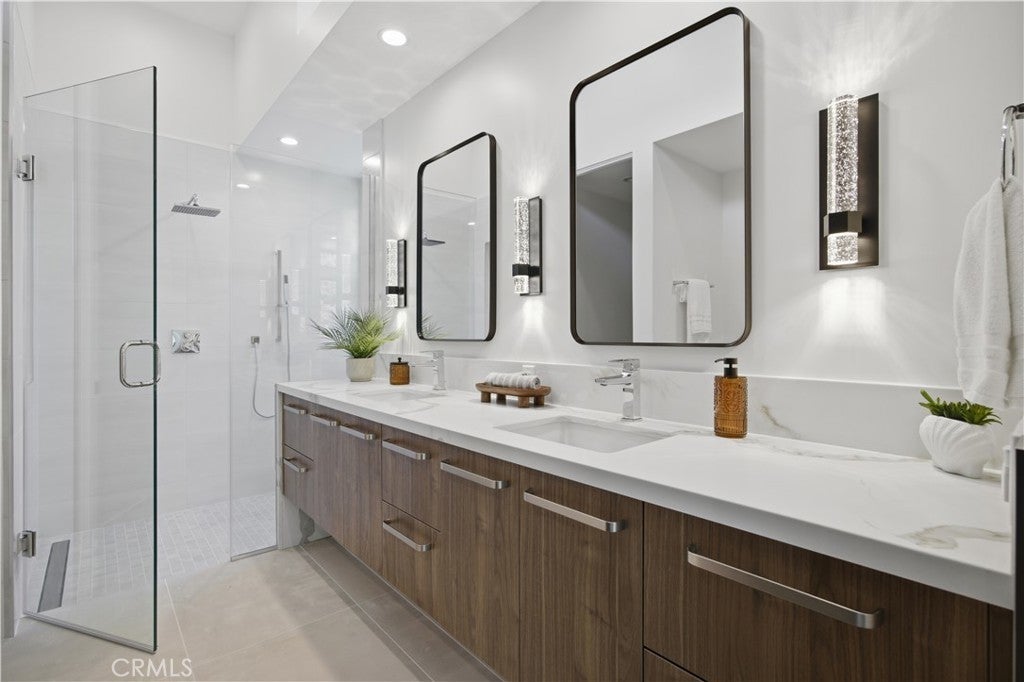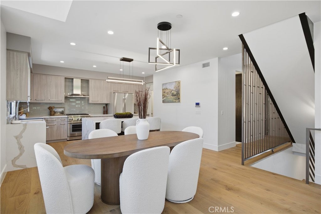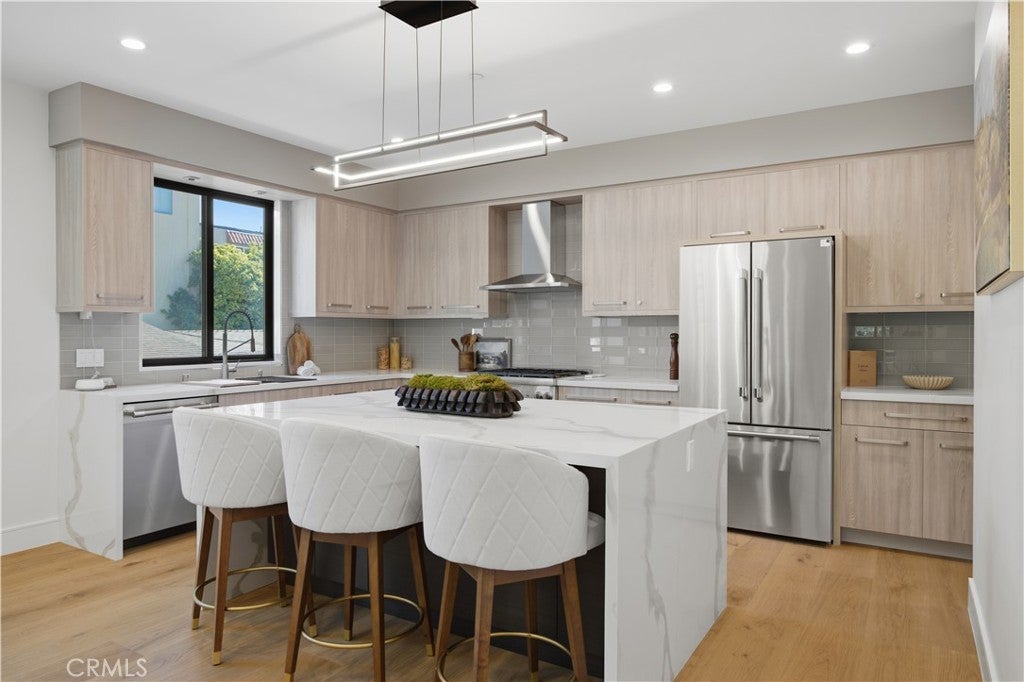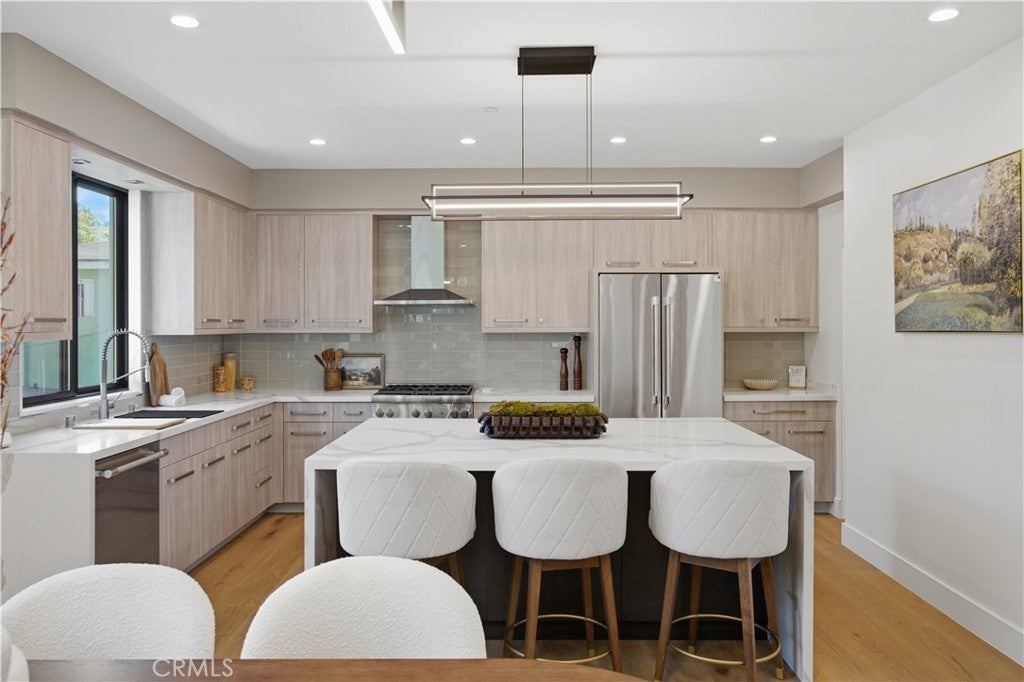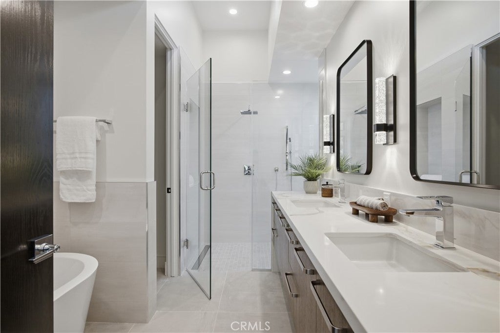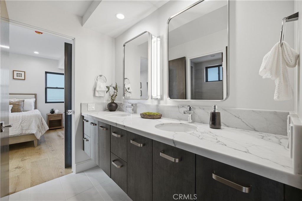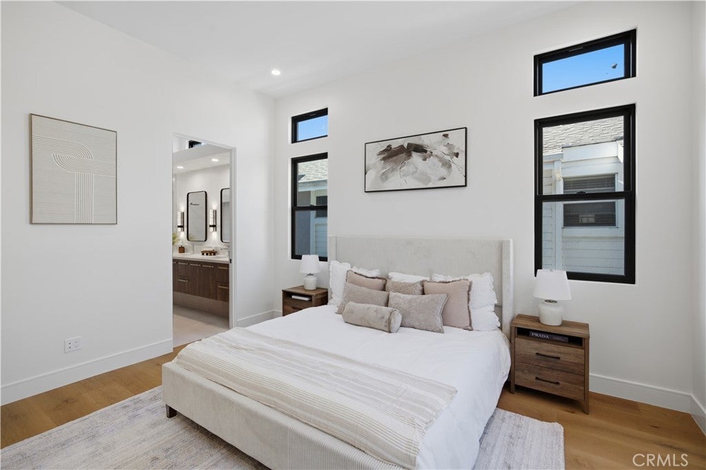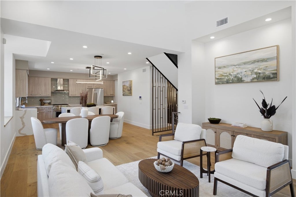 Brand-New Construction in Prime North Redondo Beach! - Tucked away in one of North Redondo’s most sought-after neighborhoods, this stunning rear-unit townhouse combines modern luxury with effortless coastal living. Designed to maximize natural light, the home features a bright, open layout and elegant finishes throughout. A highlight of the property is the spacious mezzanine level with its own balcony—perfect as a media lounge, home office, or play area, offering flexibility for any lifestyle. The inviting living area centers around a sleek gas fireplace and is enhanced by wide-plank white oak hardwood flooring, solid-core doors, and recessed LED lighting. The gourmet kitchen is a showpiece, featuring an oversized island with quartz countertops, a stylish tiled backsplash with hidden outlets, and high-end cabinetry with soft-close metal drawers. Top-of-the-line Thermador stainless steel appliances—including a gas range, French door refrigerator, dishwasher, and microwave drawer—complete this impressive space. Each bathroom is thoughtfully designed with custom mirrors, contemporary lighting, and Hansgrohe fixtures. The home also includes a dedicated laundry room with a sink and side-by-side hookups, providing everyday convenience. Comfort is guaranteed with central air conditioning, forced-air heating, and a tankless water heater for energy efficiency. Additional features include Andersen windows, solar panels, and a two-car garage with a wooden door. The smart home system offers peace of mind with motion sensors, exterior cameras, a video doorbell, and remote control for lighting, garage, and entry doors—all easily managed from your phone. With its sophisticated design, premium finishes, and modern technology, this home delivers the best of Redondo Beach living—stylish, secure, and ready to enjoy.