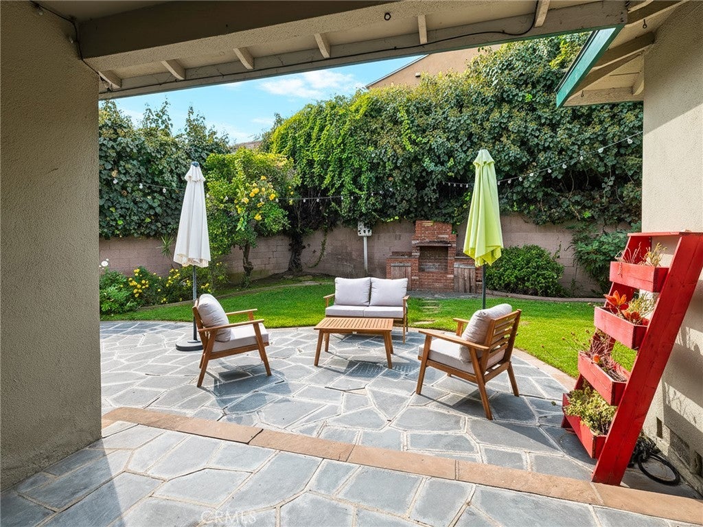 Great opportunity on a quiet cul-de-sac! This charming house offers 3 bedrooms, 2 bathrooms, and over 1600 square feet of living space! Off of the entry, the inviting living room, recessed lighting, and a large bay window that fills the space with natural light. The living room leads directly into the kitchen which features tile floors, granite counters, recessed lighting, a peninsula, a dishwasher, gas oven and stove, refrigerator, microwave, and a pleasant garden window above the stainless steel sink. A dedicated laundry area sits adjacent to the kitchen and serves as one of the exits to the backyard. The huge primary bedroom offers its own gas fireplace, an en-suite bathroom, and a french slider providing direct access to the backyard. Both guest bedrooms have multiple closets and the full bathroom that conveniently sits in between them has a separate tub and shower. The wrap-around backyard is perfect for both privacy and entertainment and presents a orange tree, patio, and a well-maintained garden which compliments the apple tree in the front yard. The home also features central AC, double-paned windows throughout almost all of the home, copper plumbing, and a two-car garage with extra storage space.