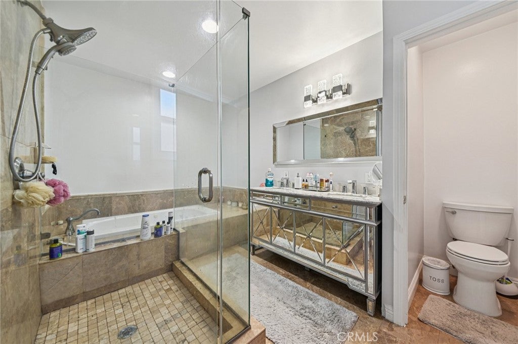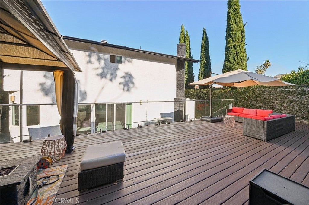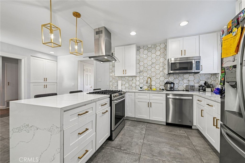 Proudly introducing this stunning 4-bedroom, 3-bath Rancho Palos Verdes single-family residence offering 2,726 sq. ft. of beautifully updated living space. Enter inside to a welcoming formal living room featuring modern lighting, a sleek fireplace, and luxury vinyl plank flooring that flows seamlessly throughout the home. The open-concept kitchen impresses with quartz countertops, stainless steel appliances, and a stylish tile backsplash, perfectly blending into the dining area and expansive family room — ideal for entertaining, a home office, or a cozy den. Two bedrooms are conveniently located on the lower level, including the spacious primary suite complete with a walk-in closet and an appealing en suite bathroom featuring a freestanding soaking tub and glass enclosed separate shower. Upstairs, you’ll find two additional bedrooms and a 3/4 bathroom, providing great separation of space. Enjoy outdoor living on the large PEX deck, perfect for relaxing or hosting gatherings, and take advantage of the additional storage offered by the TUFF shed. Located within the highly rated Palos Verdes School District and just moments from The Terraces Shopping Center — home to Trader Joe’s, Starlight Cinemas, and a variety of shops and restaurants — this home offers the perfect combination of comfort, style, and convenience.