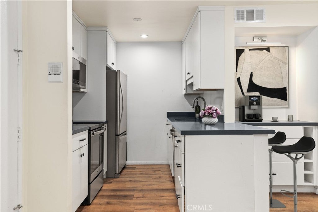 Proud to present this beautifully updated 2 bedroom, 2 bathroom, 1,116 sq ft condo in the highly sought-after Raintree community in Culver City. Thoughtfully renovated with over $80,000 in upgrades in recent years, the home features smooth ceilings, recessed lighting, and engineered wood flooring that elevate the modern appeal. The stylish kitchen is appointed with quartz countertops, a farmhouse sink, stainless steel refrigerator and dishwasher, and an electric stovetop—perfect for everyday cooking and entertaining. The open-concept living room includes a decorative fireplace and flows seamlessly to the extended balcony, surrounded by lush trees and natural light for a peaceful indoor-outdoor experience. Ideal for privacy, the two bedrooms are located on opposite ends of the unit, each with direct balcony access and its own en suite bathroom. The primary suite offers soft carpeting, two sliding-door closets, and a beautifully remodeled bathroom featuring penny tile, modern finishes, and a glass-enclosed shower. The secondary bedroom hosts a walk in closet and adjacent newly tiled bathroom with shower and deep tub. Additional highlights include central heat and air and two assigned parking spaces. HOA includes water, trash, sewer, gas, basic cable and internet. Resort-style living awaits at Raintree, where residents enjoy a wealth of amenities: a heated pool, hot tub, clubhouse, fitness center, scenic walking paths, a large tranquil lake, 24-hour gated security, and even a volleyball court. All of this in the heart of Culver City, just moments from Downtown Culver City, Sony Studios, Baldwin Hills Scenic Overlook, Westfield Mall, countless shops, restaurants, and short distance to two high-ranking elementary schools (Farragut & Linwood E. Howe), Culver City Middle school and Culver City high school.