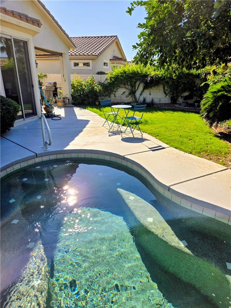 Your New Home: Sunlight, Space, and Seamless Flow! Imagine a life where every day feels like vacation. This isn't just a house; it's your Sun-Drenched Sanctuary, your peaceful oasis, tucked away in the vibrant, 5-Star Sun City Shadow Hills +55 active Community. The Vibe: Mediterranean Villa Meets Contemporary & Clutter-Free Step through the well-appointed front yard and into a bright, sun-washed foyer that says, "Welcome home, drop your worries." You'll immediately notice the clean, fresh aesthetic—new paint and updated flooring provide the perfect, modern backdrop for your desert life. The flow is effortless, leading you past a well-organized kitchen with upgraded appliances and into the expansive Great Room. Here, beyond the cozy fireplace, is a wall of glass doors that open to your private outdoor haven. Your Spool-Side Paradise (Twinkling Stars Included!) This is where the “magic” happens. Your alluring backyard is an intimate refuge centered around a custom SALTWATER spool (spa-pool combo) with a soothing waterfall. Pure Bliss: The scent of fresh orange blossoms drifts as the desert sky puts on a show overhead. Enjoy a warm, bubbly plunge under the stars or a refreshing cool-off! Ultimate Privacy: Lush bougainvillea and fruit trees set a tranquil mood for your private evening dips. Thoughtful Spaces & Privacy Galore! The large primary suite has a beautiful view of the spool and garden through the bay windows. The glass slider leads directly to your backyard retreat. The guest suite is ideally separated on the opposite side of the home with a chic, remodeled bath, ensuring maximum privacy for everyone. A flexible private office is perfect for work, hobbies, or extra sleeping area for guests. Live the Sun City Dream! This remarkable property is in the prestigious, guard-gated Sun City Shadow Hills 55+ Community, offering the ultimate amenity package: Two Championship Golf Courses, Pickleball, Tennis, Bocce Courts, Three Pools/Spas (one indoor!), two Clubhouses, and countless activities. All of this luxury comes with a surprisingly low HOA fee of $369/month, including Internet! Don't just buy a house; buy your ultimate desert escape.