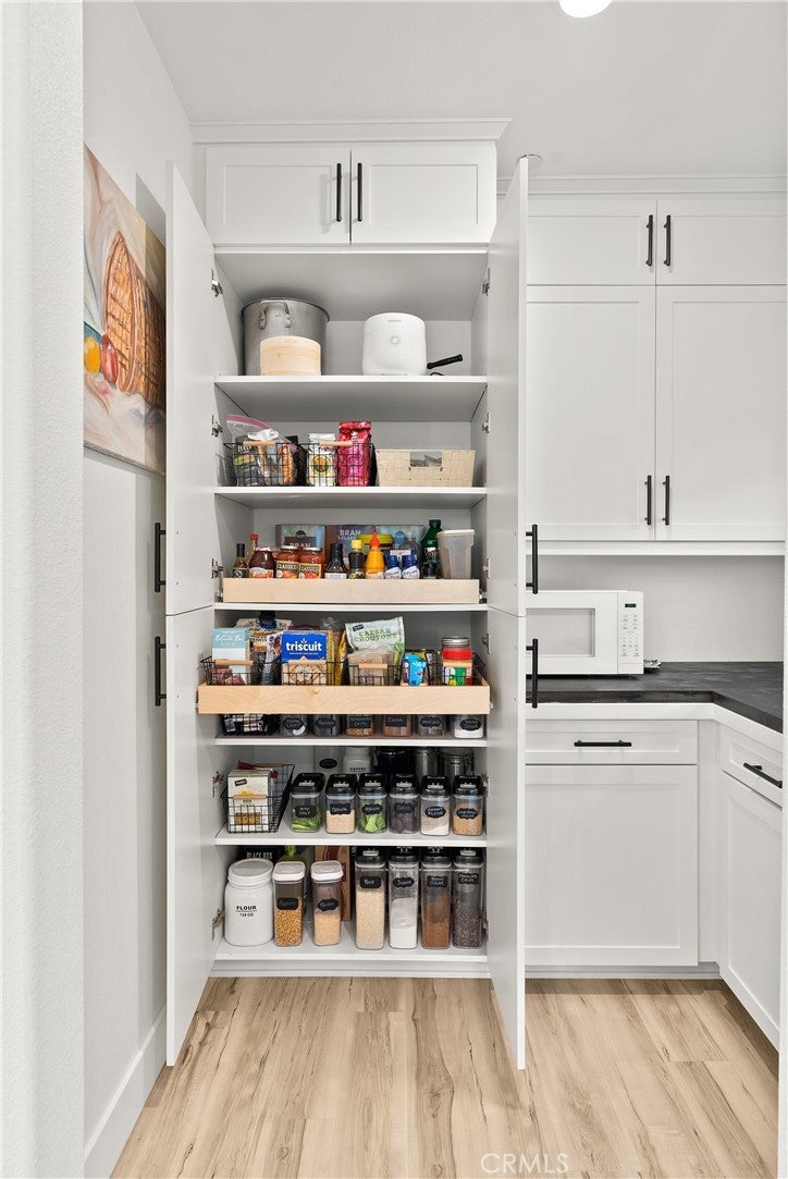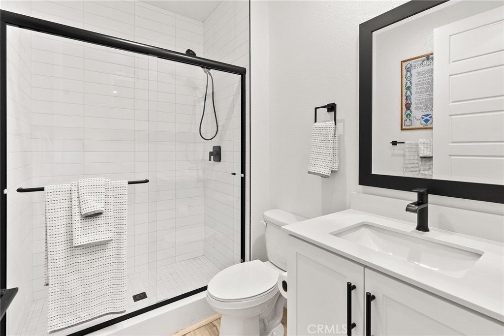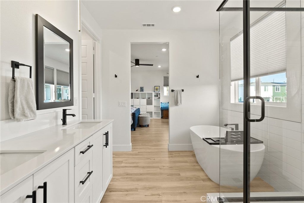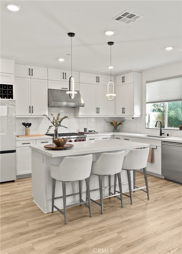 2023 BUILD | PREMIUM UPGRADES | RARE FULL BACKYARD Set within the gated Ponte Vista community adjacent to Rancho Palos Verdes, this immaculate two-story home showcases five bedrooms, three bathrooms, and 2,583 sq ft of modern living with extensive custom upgrades. One of only three Westport homes out of 60 featuring an expanded backyard, this premium 5,870 sq ft lot delivers true outdoor living for children, pets, gardening, and entertaining. Completed in 2023, it combines modern systems, current technology, and the peace of mind that comes with newer construction. CHEF'S KITCHEN & LUXURY FINISHES A Wolf 36" six-burner gas range, professional Wolf hood, and Cove luxury dishwasher anchor a high-performance kitchen, complemented by a French-door refrigerator. White Shaker cabinets extend floor-to-ceiling with quartz counters and full-height tile backsplash, while upgraded storage includes pull-out spice racks and deep drawers for cookware. The walk-through butler's pantry adds prep space and a wine-ready niche. Custom black-framed doors from The Sliding Door Company define the transitions between entry, dining, and living spaces, coordinating with matte-black hardware and fixtures found throughout. Wide-plank luxury vinyl flooring spans the entire home, including all five bedrooms and the staircase. PRIMARY SUITE & UPGRADED BATHROOMS The primary retreat features a freestanding soaking tub and separate fully tiled shower with glass enclosure and matte-black fixtures. Dual undermount sinks sit atop cultured-marble counters, with an upgraded built-in closet system for organized storage. Secondary bathrooms maintain this elevated standard with full tile surrounds and glass enclosures. Throughout the home, 9-ft ceilings, upgraded panel doors, and 5" baseboards create a refined architectural presence. RARE EXPANDED LOT & OWNED SOLAR Stained-and-sealed patio with covered area, ceiling fan, and gas stub. Mature citrus and peach trees. Fully-owned 12-panel (4.2 kW) solar system significantly reduces utility bills. Dual-zone AC with Ecobee smart thermostats. 3 Day Blinds throughout with room-darkening in bedrooms. Upgraded laundry room with butcher-block counter, GE washer and dryer. PONTE VISTA RESORT-STYLE AMENITIES Security patrol, heated pool, spa, fitness center, dog park, BBQ area, fire pit, walking trails, low HOA fees. Minutes to beaches, shopping, dining, freeways, and the new West Harbor waterfront (2026).