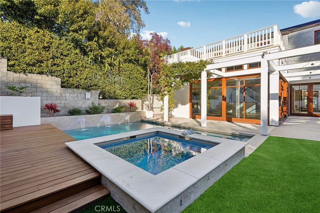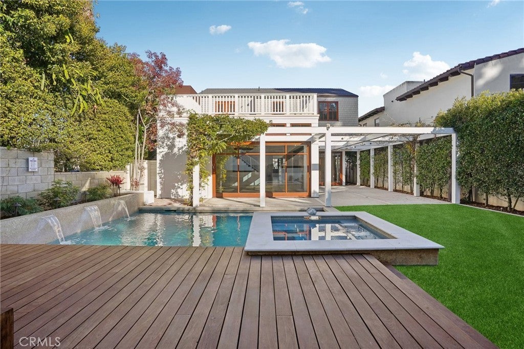 Set on one of Hermosa Beach’s most sought-after Hermosa Valley streets, 2119 Power Street offers a rare combination of scale, privacy, and timeless design — all on an expansive almost 11,000 square foot lot. Designed by Jon Starr, this home pairs thoughtful architecture with warm, coastal sophistication — creating an atmosphere designed for everyday ease and elevated living. A sun-filled two-story entry sets the tone, drawing your eye through the interior of the home to the large backyard and pool. The main level unfolds into an expansive, open living space anchored by a gourmet kitchen with a large center island, a spacious dining room with large custom doors opening to the yard, and a beautifully detailed family room surrounded by sliding doors, large windows, and clerestory windows that flood the space with natural light. The indoor–outdoor connection is exceptional. Through 9-foot sliding doors, the living areas open to a resort-like backyard featuring a pool with attached spa, generous patios, and a built-in firepit that becomes a natural gathering spot year-round. The yard extends upward into a thoughtful terraced design, with an elevated turfed second level ideal for meditating, reading, entertaining, or lounging, or even reimagined as a pickle ball court. The lot continues further with a private garden perfect for growing herbs, fruits, and vegetables — a retreat within a retreat. Upstairs, the primary suite offers a quiet sense of escape with dual walk-in closets and a spa-inspired bath. Four additional bedrooms complete the level, including one that opens to a spacious terrace overlooking the pool and lush yard. At the front of the home, a custom bar and entertaining room opens to a welcoming porch — a signature detail of the home and a favorite place to unwind above one of Hermosa’s most cherished streets. Recent updates include new interior and exterior paint, a new roof, refinished hardwood floors, and new carpeting — enhancements that refresh the home while honoring its original craftsmanship and coastal character. Power Street is a truly special enclave — peaceful, beautifully situated, and just a short stroll from the beach, Valley Park, schools, and the best of Hermosa living. Homes of this scale and quality rarely become available here. 2119 Power Street stands as a distinctive offering in one of Hermosa Beach’s most beloved neighborhoods.