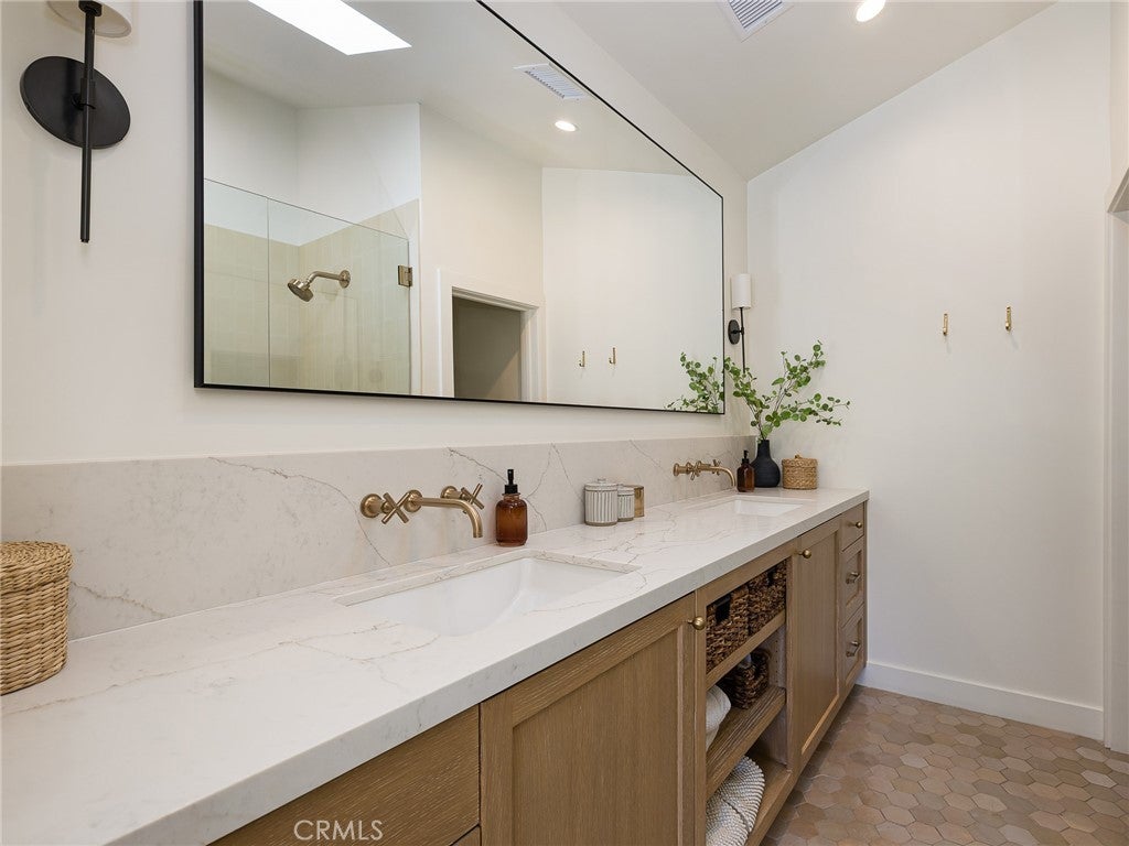 Stunning 2022-Remodeled Home! This turnkey house boasts 4 bedrooms, 3 bathrooms, and nearly 2,000 square feet of living space that is thoughtfully designed throughout! As you enter, you are greeted by a bright and inviting open-concept layout with vaulted ceilings, recessed lighting, and beautiful floors. The kitchen features custom cabinetry and counters, a large island, quartz countertops, two skylights, double ovens, a gas range, and a pot filler for added convenience. A coffee nook and wine fridge sits off the kitchen and in between the kitchen and the huge walk-in pantry and laundry room. Additionally, the east wing of the home has a full, updated bathroom and separate bedroom with built-in closet features. The chef-inspired kitchen also flows seamlessly into the living room, which boasts vaulted ceilings, a gas fireplace and a 9 foot tall sliding glass door to the backyard, seamlessly encouraging indoor-outdoor living. The private backyard features a gas fireplace that doubles as a wood-fired pizza oven, along with a low-maintenance turf lawn! The front yard has a one-car driveway and garage, which provides direct access to the home. The primary suite features vaulted ceilings, a walk-in closet with built-in features, storage access to the spacious attic, a skylight, and an en-suite bathroom that boasts a large shower with dual showerheads and a built-in seat and custom-built, dual vanities. Two additional large bedrooms have built-in features in the closet and one of them offers a Murphy bed for added flexibility. The third bathroom conveniently sits in between them. Additional highlights include: new PEX plumbing, double-paned windows, new electrical (220V electric capacity in the garage for EV owners), high-efficiency AC, a home speaker system, and a tankless water heater for energy efficiency throughout!