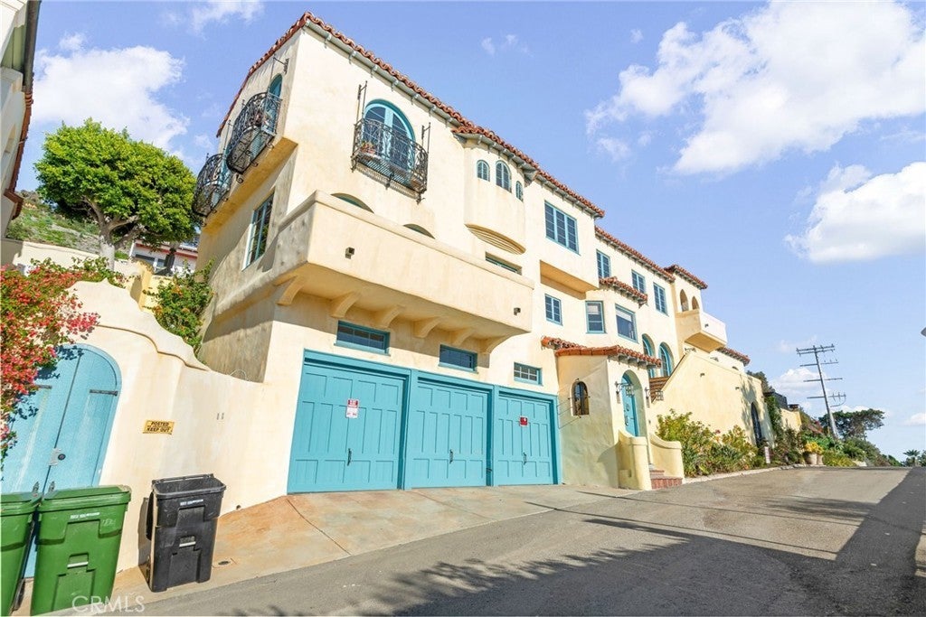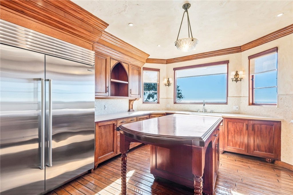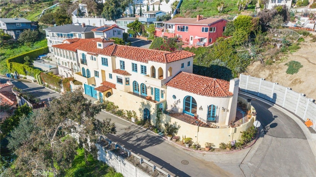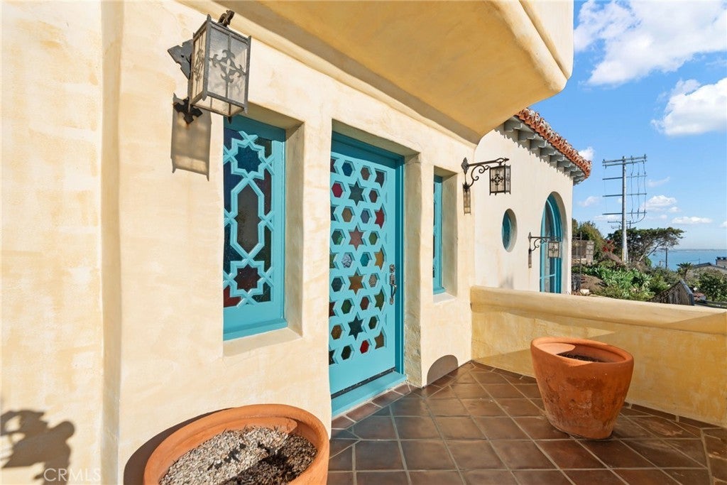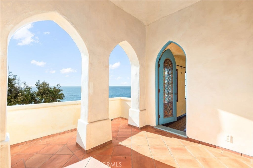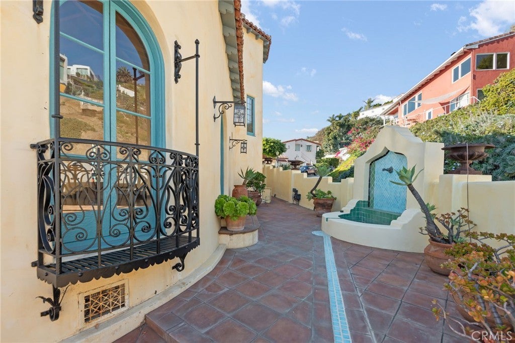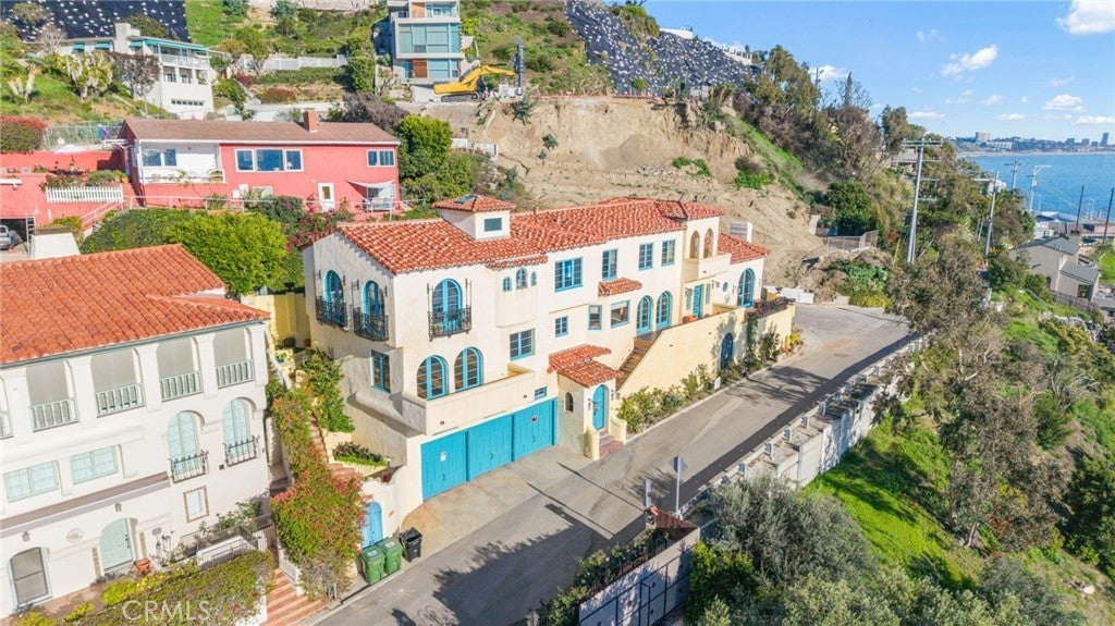 Perched on the hillside of Pacific Palisades overlooking the ocean, this 3,998 sqft residence is a stunning example of 1920s architecture. The home offers incredible ocean and coastline views, allowing you to enjoy a short trip to the beach or simply listen to the waves at night. The villa is defined by its truly unique architectural details, featuring intricate stained glass windows, classic arched doorways, and exposed wood beams that capture the character of the era. The distinct floor plan is functional across three levels. The main living level (2nd floor) boasts an amazing great room with high ceilings and a grand fireplace, a formal dining area, a family room, and a chef's kitchen. This level offers access to a plethora of viewing areas from the wrap-around patio and multiple balconies, providing an exquisite space for entertaining. The upper level (3rd floor) contains the primary suite with walk-in closets, an ensuite bathroom, and a private water closet, along with two additional bedrooms that share a Jack and Jill style bathroom. The lower level offers direct access to the 3-car garage and features a private guest suite with its own ensuite bathroom, perfect for guests or staff.