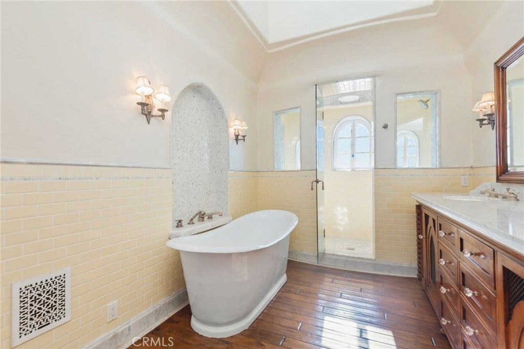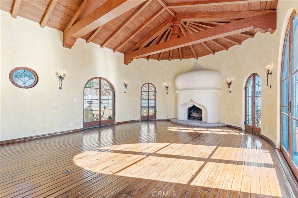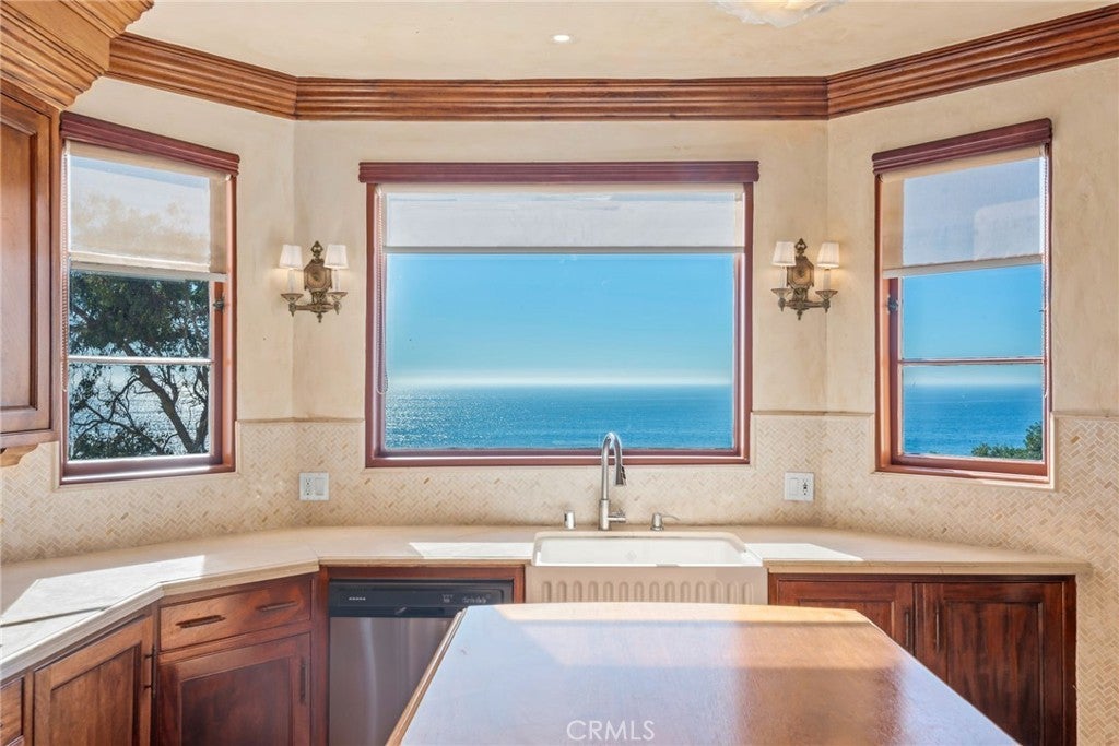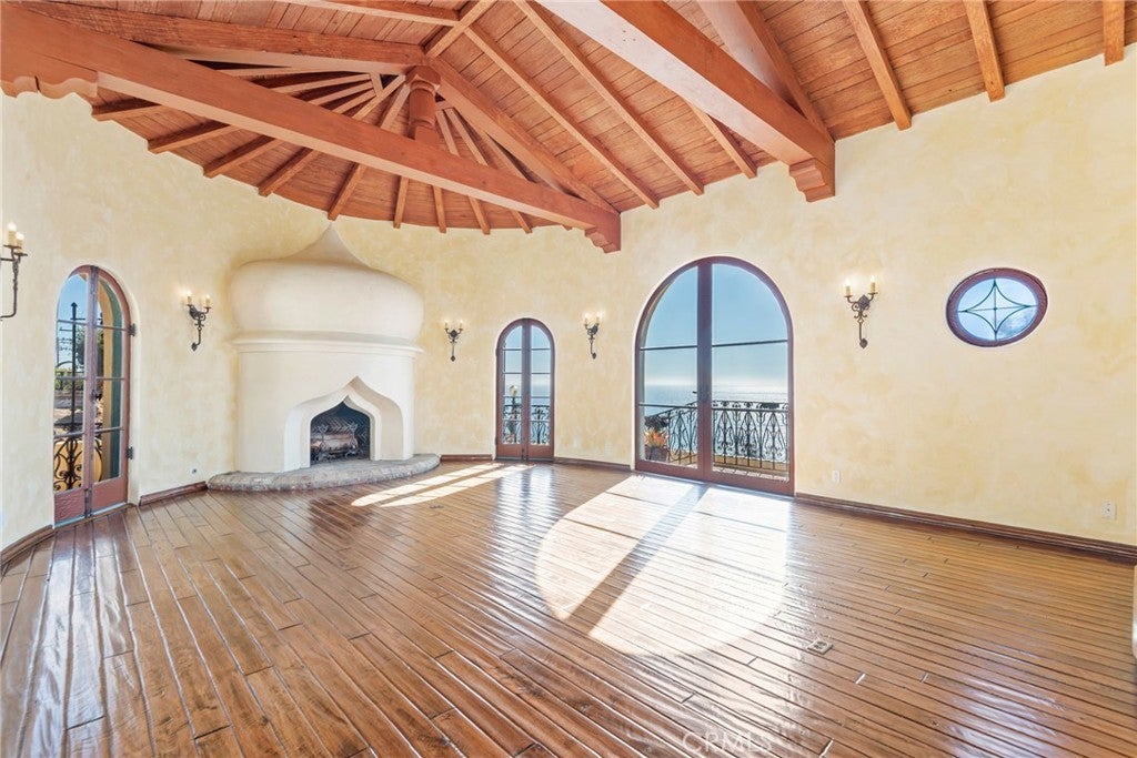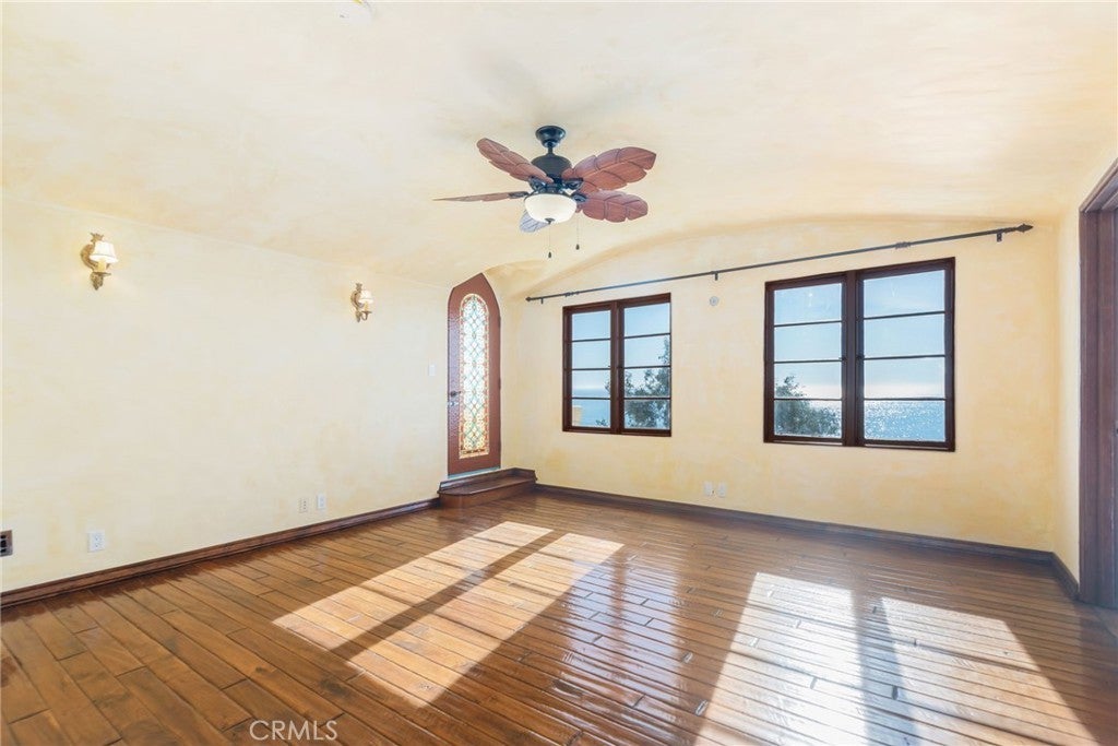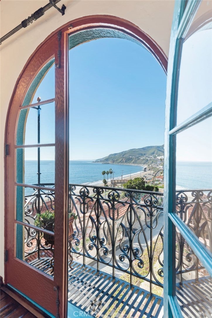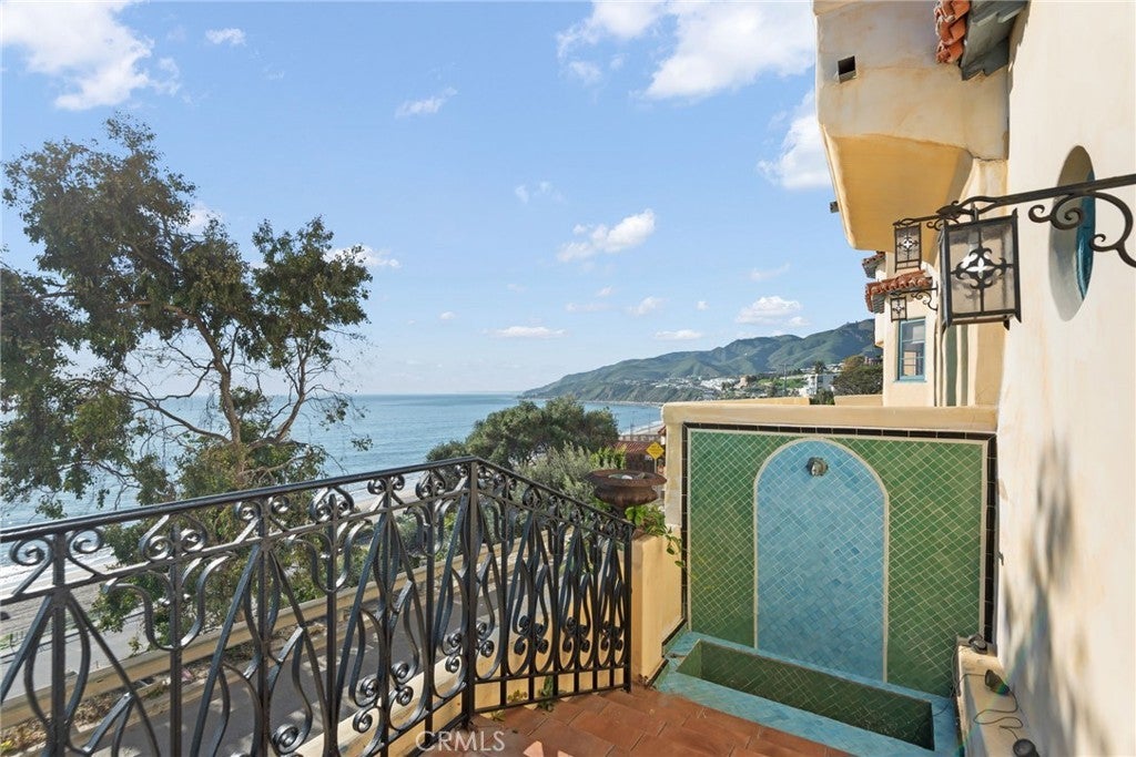 Perched on the hillside of Pacific Palisades overlooking the ocean, this 3,998 sqft residence is a stunning example of 1920s architecture. The home offers incredible ocean and coastline views, allowing you to enjoy a short trip to the beach or simply listen to the waves at night. The villa is defined by its truly unique architectural details, featuring intricate stained glass windows, classic arched doorways, and exposed wood beams that capture the character of the era. The distinct floor plan is functional across three levels. The main living level (2nd floor) boasts an amazing great room with high ceilings and a grand fireplace, a formal dining area, a family room, and a chef's kitchen. This level offers access to a plethora of viewing areas from the wrap-around patio and multiple balconies, providing an exquisite space for entertaining. The upper level (3rd floor) contains the primary suite with walk-in closets, an ensuite bathroom, and a private water closet, along with two additional bedrooms that share a Jack and Jill style bathroom. The lower level offers direct access to the 3-car garage and features a private guest suite with its own ensuite bathroom, perfect for guests or staff.
