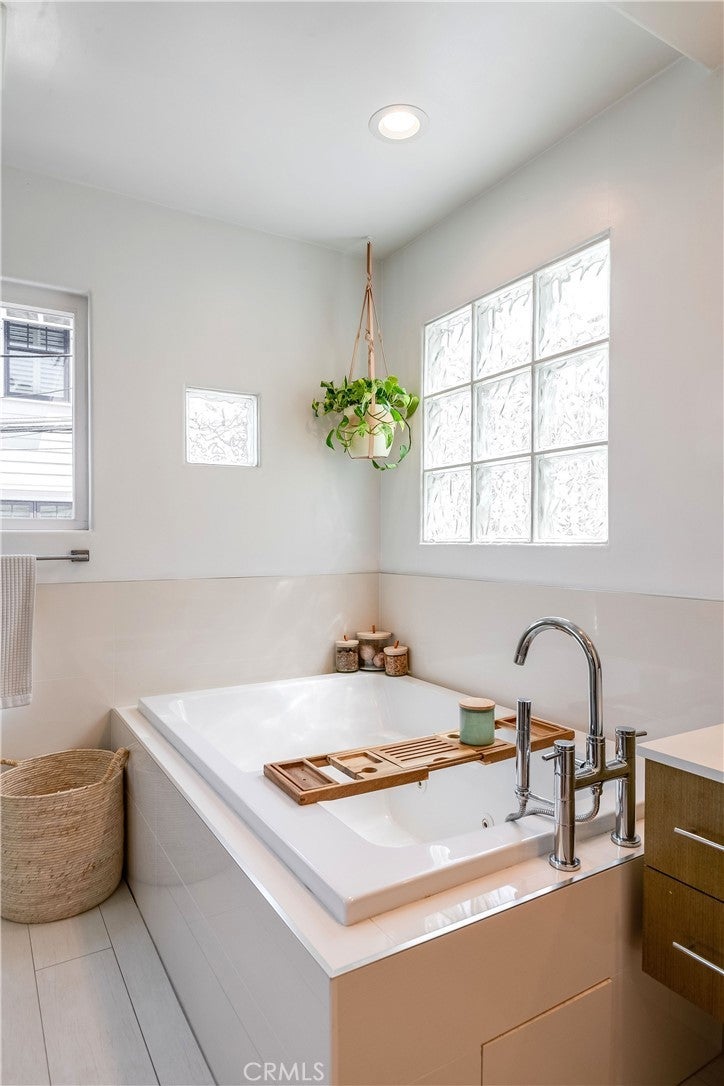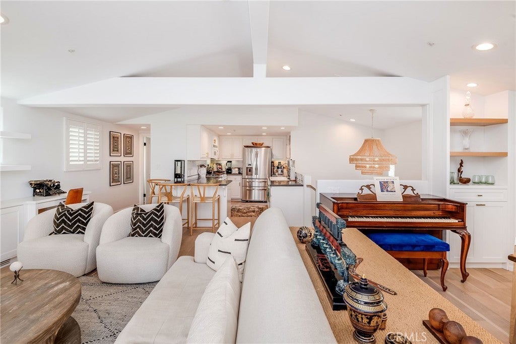 Light-filled and thoughtfully designed, 433 Marine Ave Unit B is an exceptional professionally decorated townhome just blocks from the beach, ideally situated on one of the most sought-after streets in the coveted Gaslight Sand Section of Manhattan Beach. Filled with abundant natural light, the home offers a bright, warm, and welcoming atmosphere. Upon entering, you’ll find white oak hardwood floors and three generously sized bedrooms, each with its own en-suite bathroom, including a spa-like primary bath with a jacuzzi tub and walk-in shower, along with an additional guest bathroom. The kitchen, featuring stainless steel appliances and a centralized open-concept design, sits at the heart of the home and is ideal for effortless everyday living and entertaining. Designed for indoor-outdoor living, the property offers three private decks, a dedicated beach entrance, a tropical outdoor shower, and an adjacent beach room perfect for practical and elevated coastal living. The converted garage adds a versatile bonus living space complete with a large flat-screen TV, bar, ping-pong table, and beverage refrigerator, creating an ideal extension of the home’s living area. Additionally, parking is available for two cars. The home also comes fully equipped for beach living, offering bikes and an extensive collection of beach gear including chairs, towels, a beach table, umbrella, boogie boards, and a soft-top surfboard. Blending modern convenience with relaxed coastal charm, 433 Marine Ave offers the ultimate Manhattan Beach lifestyle, just moments from the sand, parks, downtown, and North End shops and award-winning restaurants.