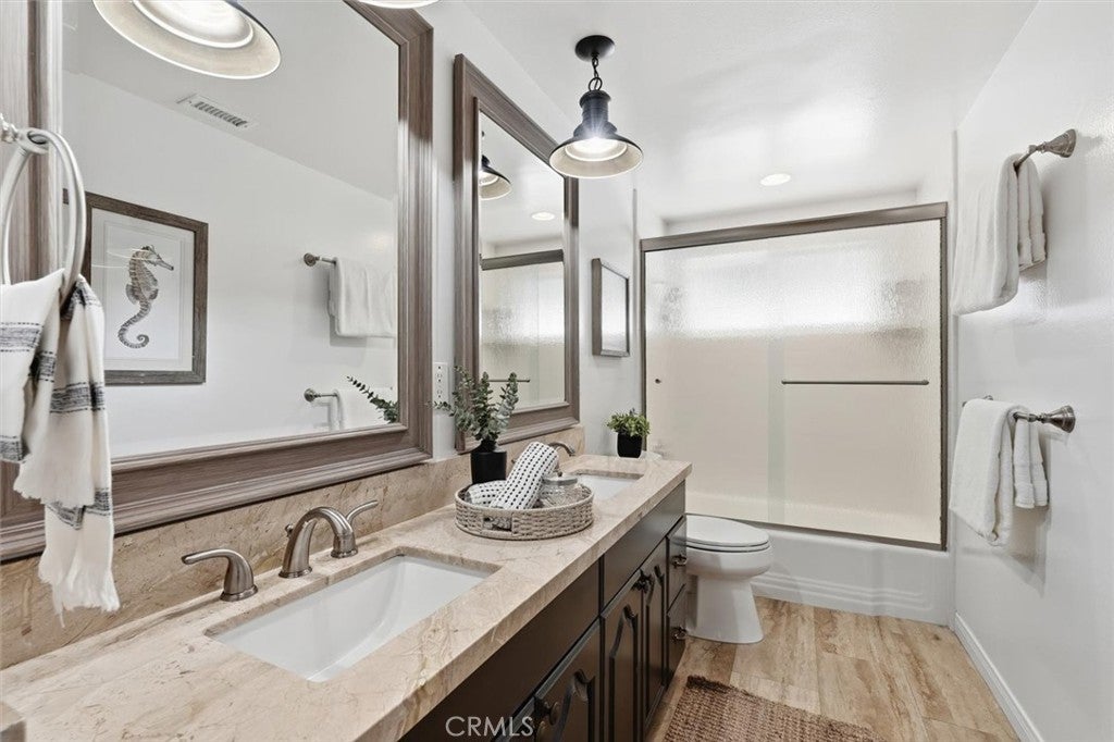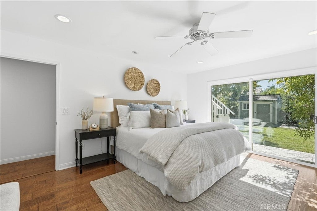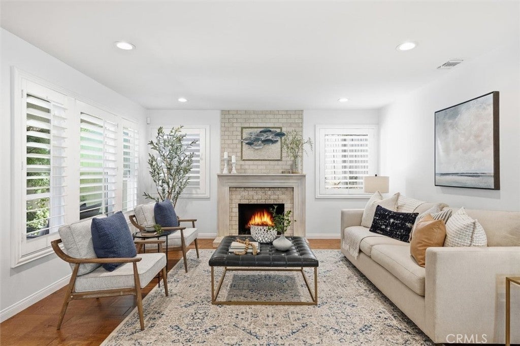 Needing a modern one-level 4-bedroom home? No stairs to navigate from the street throughout the entire house. Beautifully designed with wood floors and new carpet in 3 bedrooms and a wood-burning fireplace in the living room. The kitchen is open with newer KitchenAid appliances, granite counters, and updated cabinets. There is newer recessed lighting throughout, and dual-paned windows with plantation shutters in the living room. The primary suite is big, bright, and gorgeous with a walk-in closet and a beautiful bath. Also, there is a sliding glass door that opens to the backyard. One bedroom is being used as a family room with a slider, providing easy access to the beautiful and private backyard. Many upgrades include a 4-year steel roof that looks like a “shake roof”, a newer Furnace & AC system with new ducts, a newer electrical panel and wiring throughout the house, a complete newer water filtration system, tankless water heater, a huge attic space with ¾ inch wood flooring for additional storage that you can stand up in with a pulldown ladder. The private backyard is perfect for entertaining or playing catch. Also, there is a spacious rooftop deck with a view of PV. Price will include washer, dryer, and a new KitchenAid BBQ. Southern Cal Edison has provided a report for the EMF measurements effective March 3, 2026. This report is available to the public. Please read the private remarks.