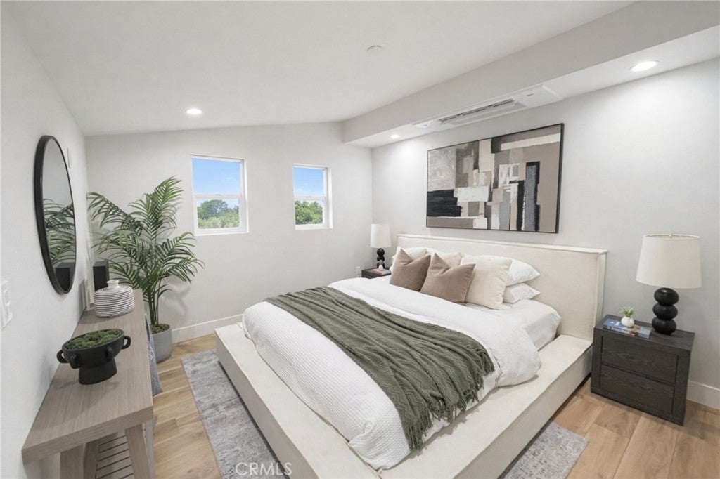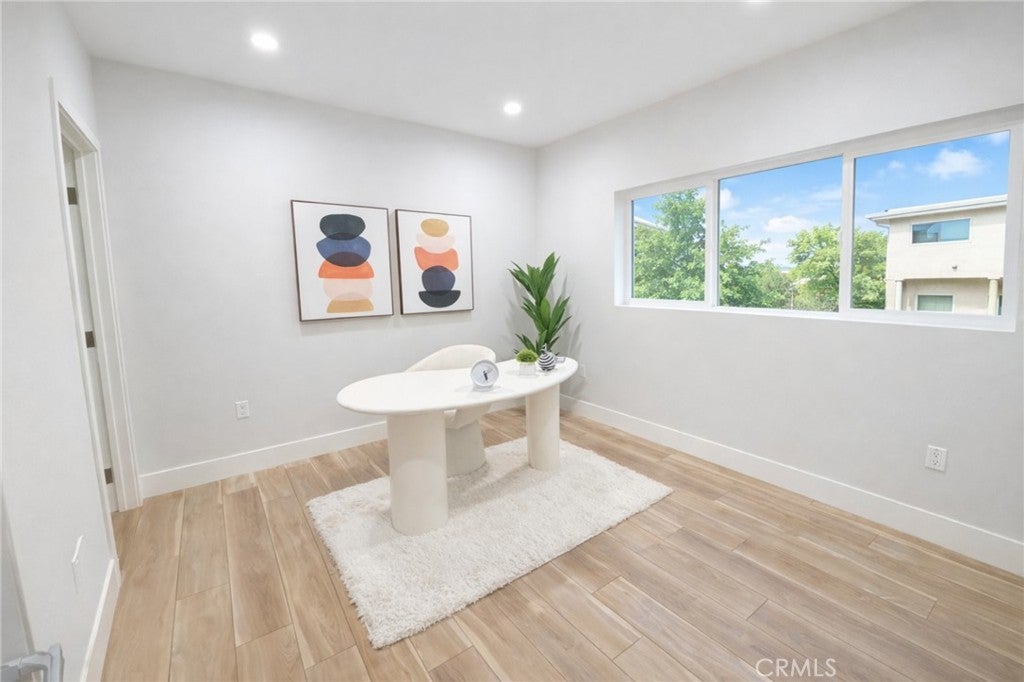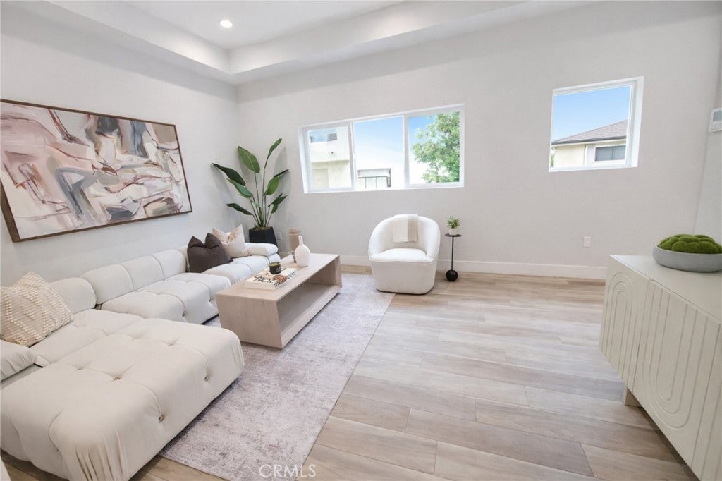 Ideally situated in a prime West Los Angeles location, this contemporary detached single-family residence offers a refined blend of modern design, comfort, and functionality. Thoughtfully designed with clean lines and upscale finishes, the home features an open and airy floor plan highlighted by high ceilings and abundant natural light throughout the living spaces. The main level showcases a well-appointed kitchen with stainless steel appliances and generous cabinetry, seamlessly opening to expansive living and dining areas ideal for everyday living and entertaining. Upper levels include spacious bedrooms offering flexibility for guest rooms, offices, or creative use, along with multiple designer-style bathrooms and a dedicated laundry area. The primary suite serves as a private retreat, featuring a walk-in closet, an elegant bathroom, and floor-to-ceiling sliding glass doors that open to a large open-air terrace. The indoor-outdoor connection creates a relaxed yet sophisticated atmosphere reminiscent of modern metropolitan living. Additional features include paid-off solar, multizone air conditioning, and a private two-car garage equipped with 220-volt outlets. The community offers shared driveway access, side walkway, and common area maintenance. Conveniently located near Westwood, Century City, UCLA, shopping, dining, parks, and major Westside destinations, this home presents an exceptional opportunity to own a contemporary residence in a highly sought-after neighborhood.