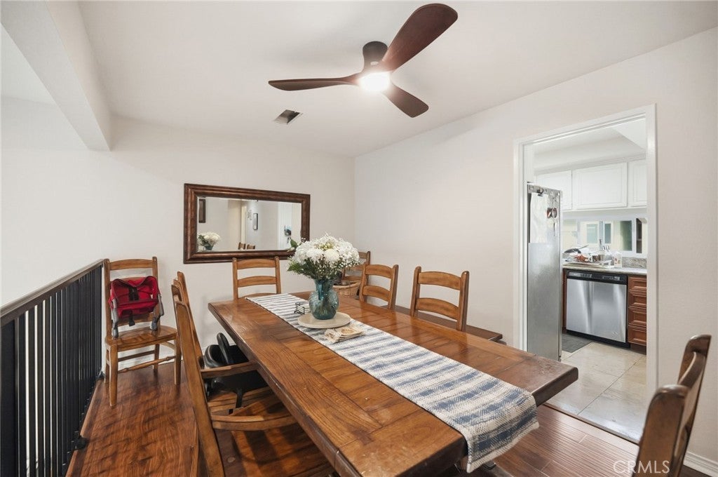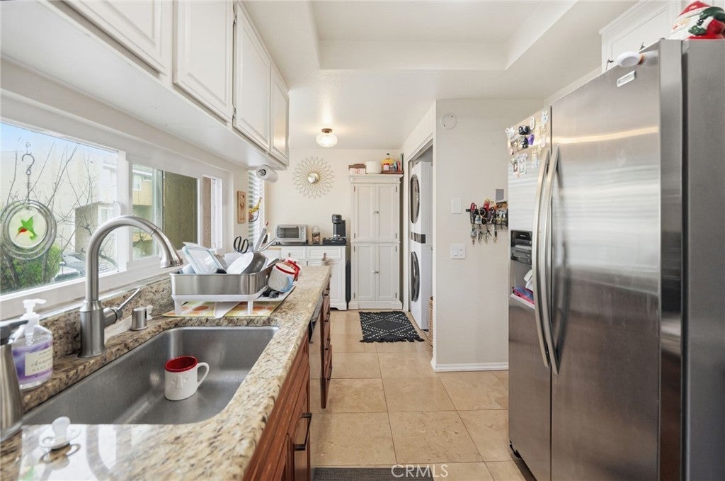 This charming home offers the perfect blend of coastal living and everyday convenience. Located just minutes from the beach and within easy walking distance to 5 points Plaza which includes your favorite local shops, restaurants, and Trader Joe’s, it delivers an ideal lifestyle setting. The cozy living room features a welcoming fireplace and opens to a private patio that overlooks a serene, enclosed greenbelt, with the community swimming pool only a few steps away. Abundant natural light fills the home, enhancing its warm and inviting atmosphere. An open dining area on the second level overlooks the living room below, creating an airy, connected living space. The galley-style kitchen is thoughtfully designed and includes a dedicated laundry area for added convenience. Upstairs, the spacious primary bedroom includes an ensuite bathroom, accompanied by two additional bedrooms and a full guest bathroom making it perfect for family, guests, or a home office setup. Residents can also enjoy resort-style association amenities, including a pool, sauna, and tennis courts, making this home an exceptional opportunity to enjoy relaxed coastal living with comfort and style.