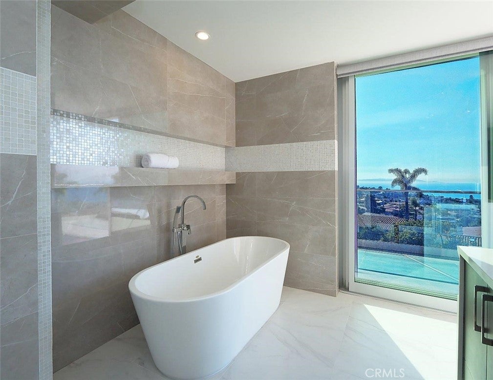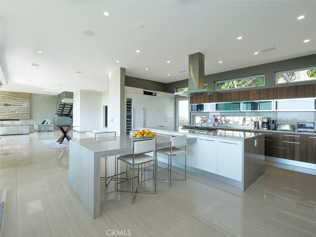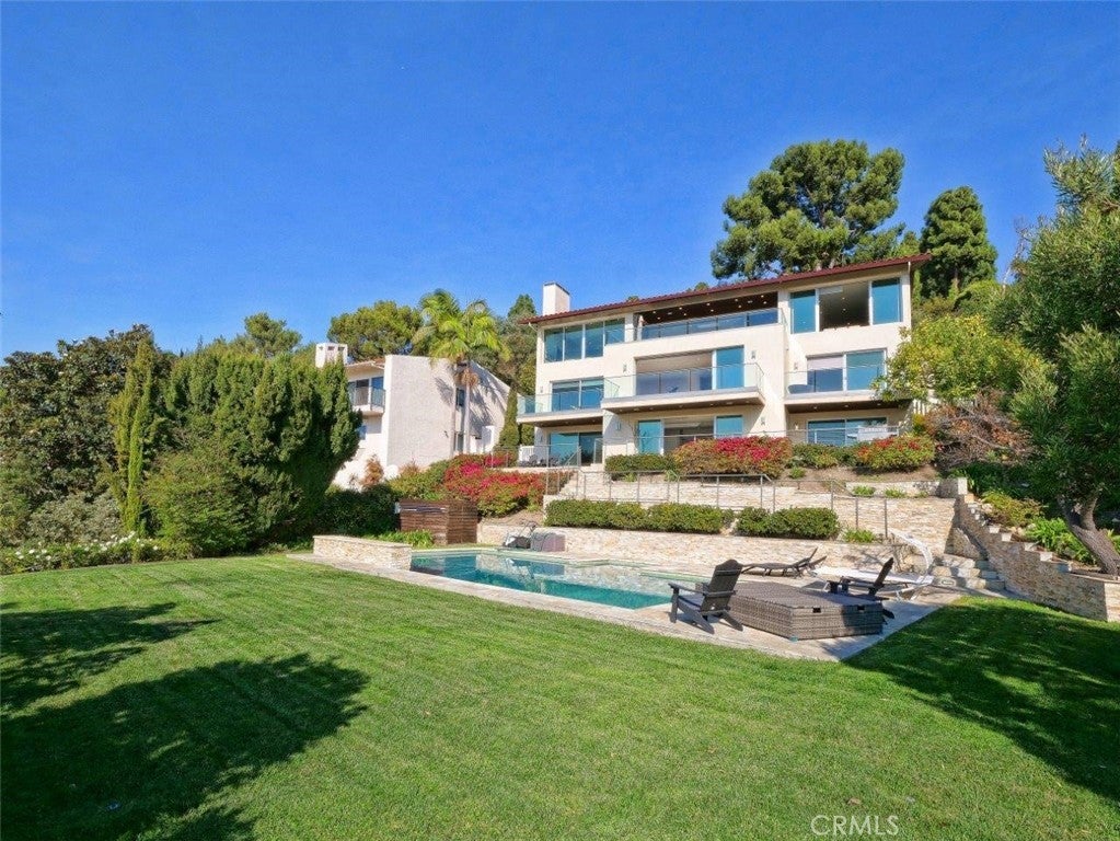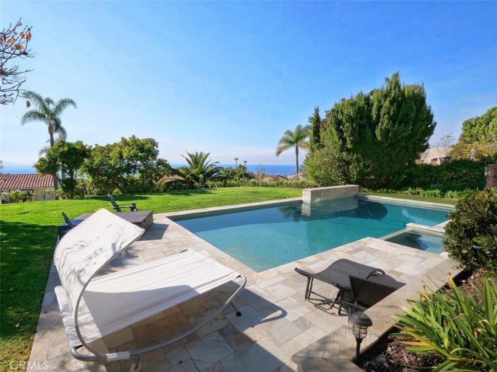 Welcome to a truly one of a kind newly renovated showstopper home in Palos Verdes Estates with panoramic ocean views. Upon entry you are greeted by an open concept floor plan with sprawling ceilings and a fully collapsable glass slider door that opens up to your own private balcony that can host all your guests. This designer home has 5 spacious bedrooms and 6 gorgeous bathrooms with top of the line faucets and designer doors. It includes an elevator that has access to every floor including the garage and a bonus room with a full kitchen in the bottom level. Enjoy time outside on the back patio and then soak up the sun in the pool or jacuzzi surrounded by fruit trees.