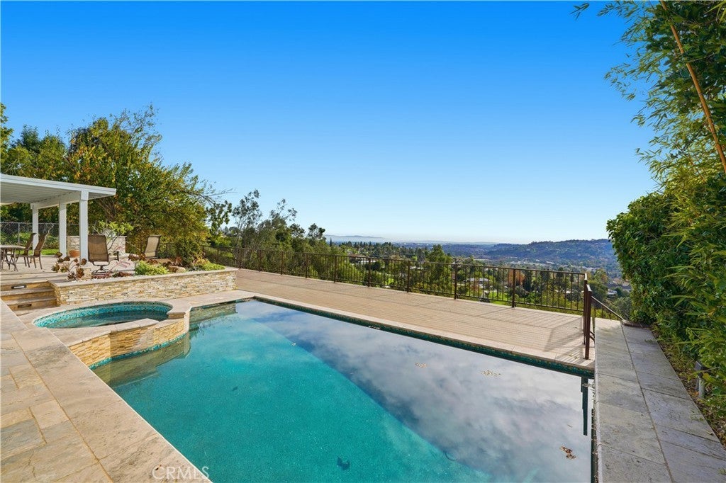Perched above it all in a coveted La Cañada Flintridge setting, this beautifully remodeled single-level residence offers sweeping, picture-perfect views of Downtown Los Angeles, the La Cañada Flintridge Country Club golf course, rolling hills, and city lights beyond. Expansive living spaces are filled with natural light and designed for effortless indoor-outdoor living, anchored by a striking dual-sided fireplace and walls of glass that frame the views. The remodeled kitchen features an oversized island and open layout, seamlessly connecting to the family and dining areas—ideal for everyday living and entertaining. Four generously sized bedrooms include a private primary suite with spa-like bath and refined finishes throughout. Outdoors, enjoy a private pool and spa, expansive patios, and multiple spaces to relax or entertain while taking in the serene surroundings and stunning vistas. A rare opportunity to lease a turnkey home that offers both comfort and long-term appeal in one of La Cañada’s most desirable locations.